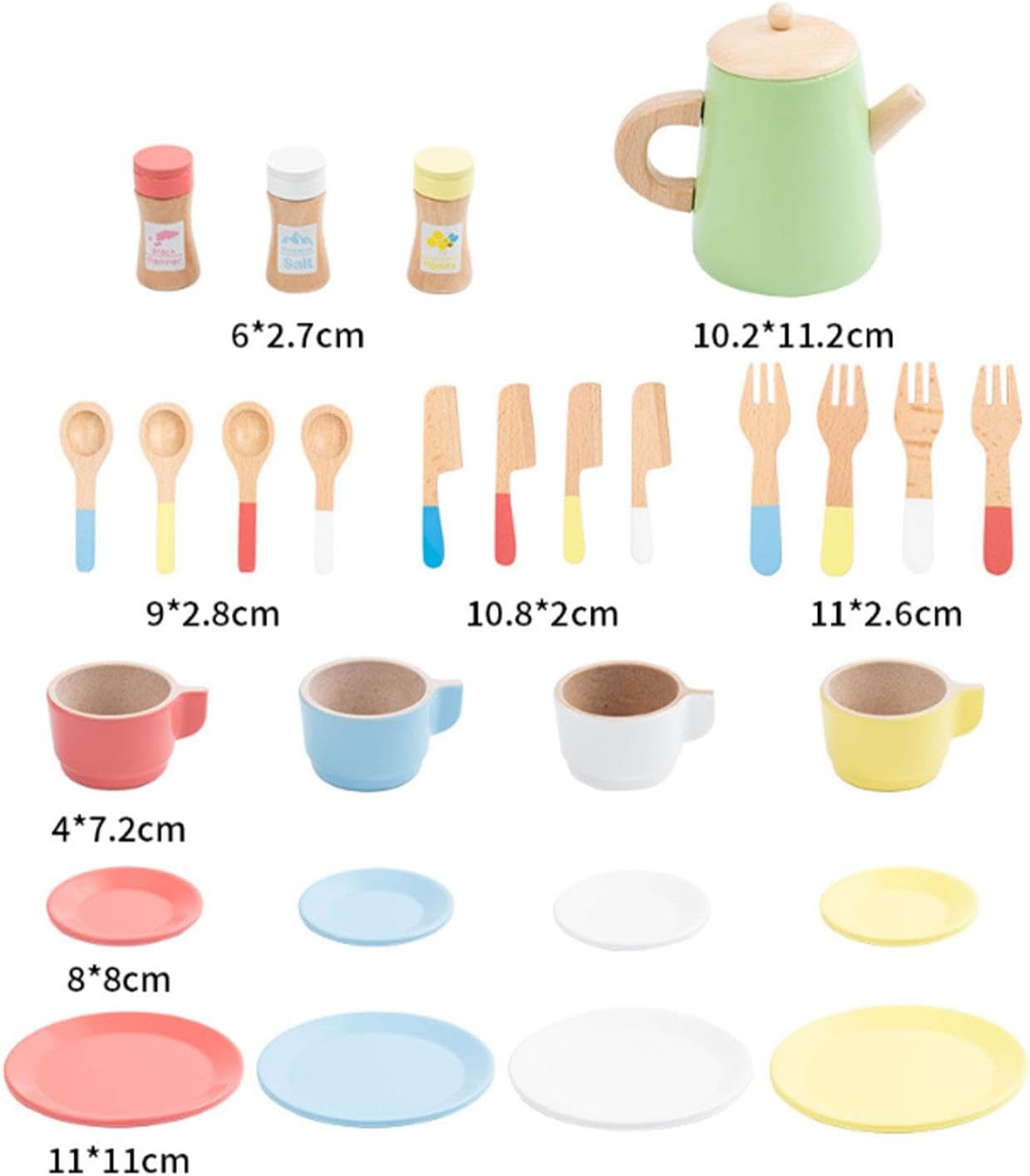 【Sviluppo delle abilità】: impegnarsi nel gioco di finzione con questo set da tè per bambini piccoli migliora le capacità motorie e la coordinazione occhio-mano dei bambini, favorendo la loro capacità di svolgere compiti in modo indipendente 【Legame familiare】: incoraggia l'interazione genitore-figlio condividendo momenti gioiosi di tè pomeridiano, rafforzando le connessioni emotive 【Set per giochi fantasiosi】: il set per il gioco del tè di finzione include tutto il necessario per un fantastico gioco del tè di finzione, il tutto realizzato con materiali di legno e resina di qualità per un uso prolungato 【Esperienza di gioco interattiva】: questo set di giocattoli in legno per il tè pomeridiano consente ai bambini di godersi simulazioni di vita quotidiana con amici, aiutandoli ad apprendere abilità e conoscenze essenziali per la vita attraverso un gioco fantasioso 【Design】: Caratterizzato da un colore delizioso e da una raffinata lavorazione artigianale, questo set da tè in legno cattura l'attenzione dei bambini, rendendo il gioco più divertente con la sua varietà di accessori da tè