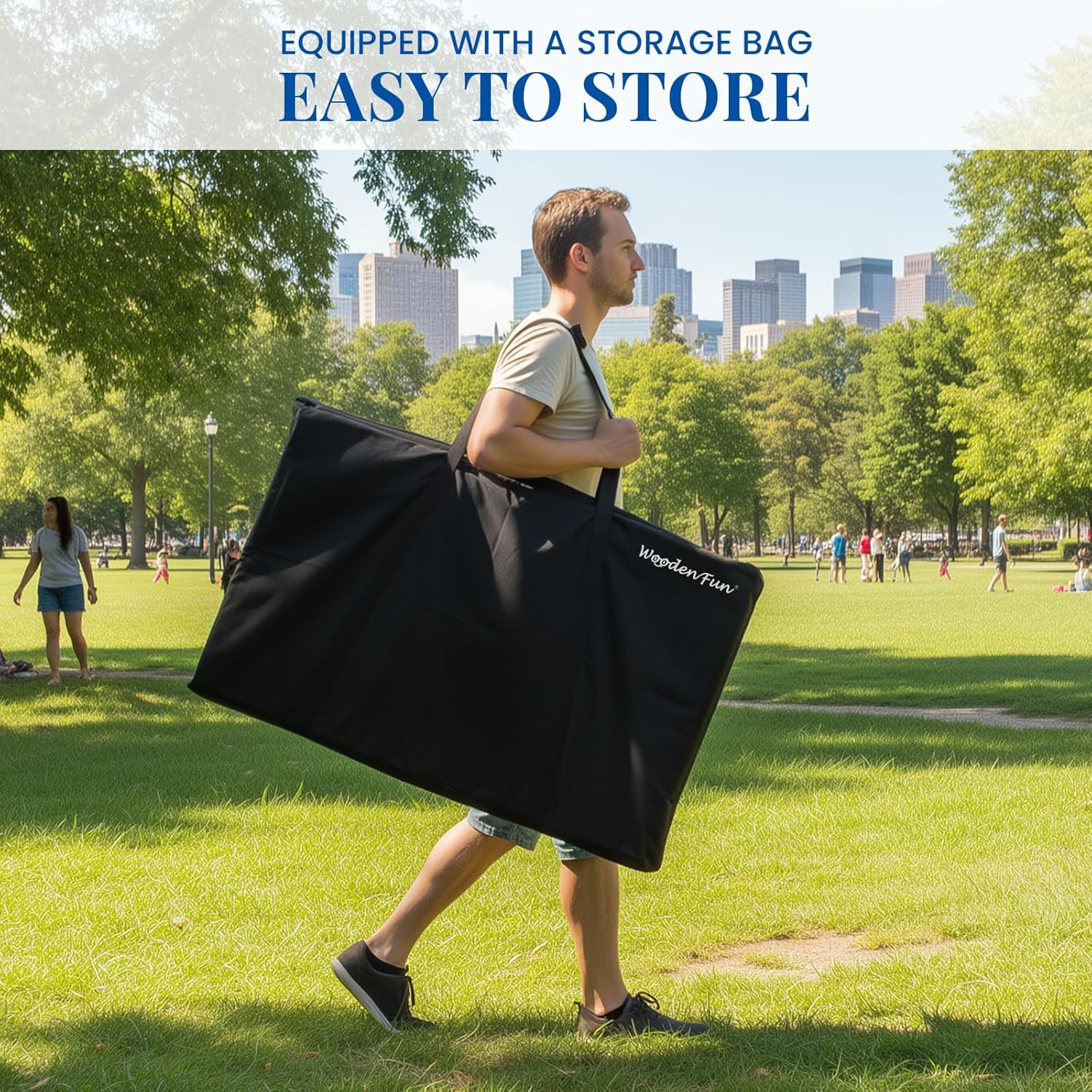 Set da gioco per cornhole, con contenitore integrato, comode maniglie per il trasporto e 8 pouf premium