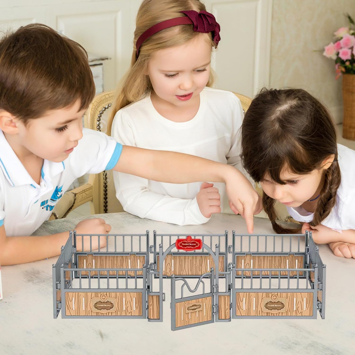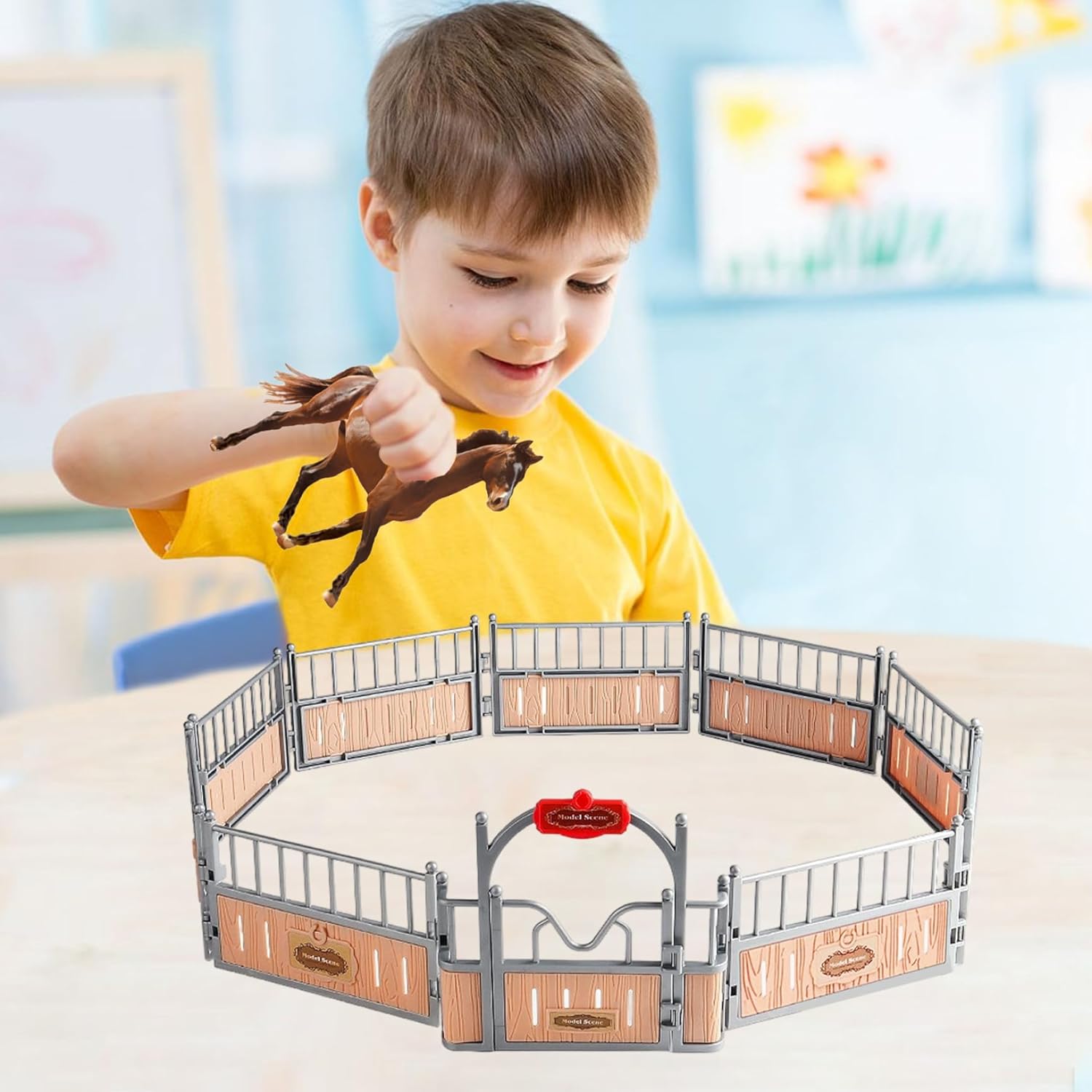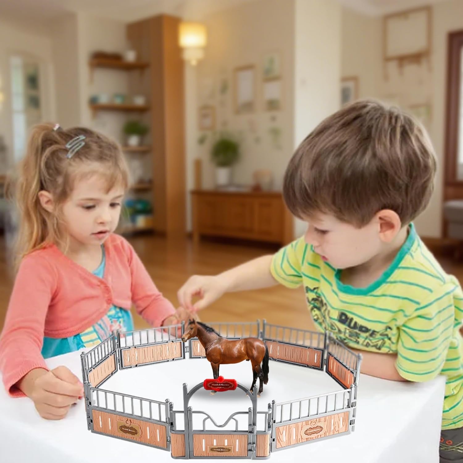 Design realistico della stalla: questo set da gioco per scuderie presenta un design dettagliato e apribile della stalla che migliora il gioco fantasioso e offre un'autentica esperienza di stalla per i bambini. Adatto a ragazzi e ragazze: il design neutro piace sia ai ragazzi che alle ragazze, rendendolo un giocattolo inclusivo che supporta il gioco cooperativo e individuale. Gioco di finzione interattivo: progettato per ispirare la creatività e il gioco di ruolo, questo set da gioco con cavalli incoraggia i bambini a sviluppare la narrazione e le capacità motorie divertendosi. Dimensioni ideali e portabilità: misura 18,1x12,2x5,7 pollici, questo giocattolo compatto per la stalla dei cavalli è facile da trasportare e riporre, perfetto per gli appuntamenti di gioco e i viaggi. Struttura in plastica stabile: realizzata in plastica sicura, la struttura robusta garantisce un tempo di gioco duraturo sia all'interno che all'esterno.