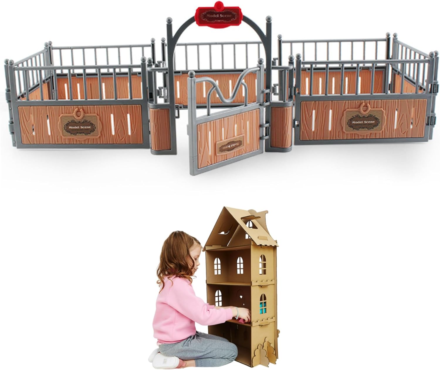 per gli amanti dei cavalli: questo recinto è ideale per i bambini, soprattutto per quelli che amano i cavalli. Che si tratti di un compleanno, di una vacanza o di un'occasione speciale, è un regalo premuroso che incoraggia l'apprendimento attraverso il gioco e garantisce ore di divertimento. Migliora la concentrazione e l'attenzione: impegnandosi con questo set da gioco realistico, i bambini possono migliorare la loro capacità di attenzione mentre costruiscono e si prendono cura della loro stalla. Il design dettagliato favorisce la concentrazione e favorisce il gioco attivo e coinvolgente. Scena realistica di corse di cavalli: questa recinzione in plastica da 17,3 x 7,9 x 5,9 pollici è progettata per ricreare una scena realistica di corse di cavalli, aggiungendo eccitazione e autenticità al tempo di gioco del tuo bambino. Perfetto per migliorare il suo gioco fantasioso e creare un mini ambiente stabile. Stimola la creatività e l'immaginazione: la recinzione in plastica offre infinite possibilità di gioco fantasioso. I bambini possono creare le proprie storie di corse di cavalli, giocare di ruolo e progettare varie scuderie e piste da corsa, sviluppando la loro creatività e capacità di raccontare storie. COSTRUZIONE DI QUALITÀ: Realizzata in plastica di alta qualità, questa recinzione è costruita per durare. È forte, robusto e sicuro per i bambini, il che lo rende ideale per il gioco a lungo termine senza preoccuparsi dell'usura.