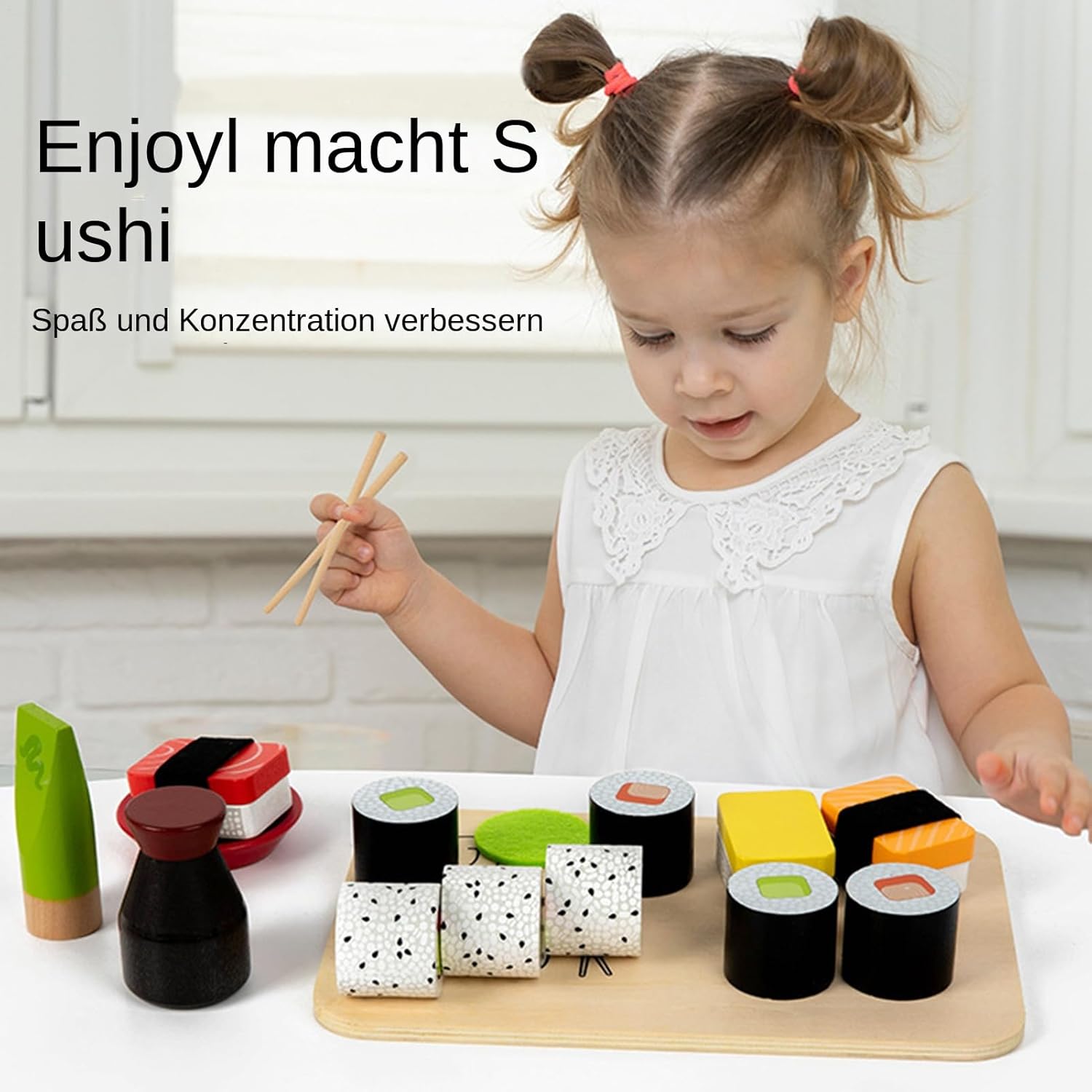 Design sicuro per i bambini: realizzato in eccellente legno naturale con bordi arrotondati e superficie lucida per evitare graffi sulla pelle. La vernice a base d'acqua garantisce sicurezza e conformità agli standard globali dei giocattoli Promuove la consapevolezza culturale: questo set da gioco per sushi consente ai bambini di scoprire la cultura alimentare giapponese. Presenta sushi realistico di salmone, tonno e altro in colori adatti agli alimenti e incoraggia la creatività e l'espressione attraverso il gioco fantasioso Incoraggia la collaborazione e il legame: dotato di accessori multifunzionali, tra cui stoviglie simulate come bottiglie di salsa di soia e bacchette, questo set riproduce perfettamente la scena del consumo di sushi, incoraggia il lavoro di squadra dei bambini e migliora l'interazione genitore-figlio Migliora le capacità motorie: partecipando all'assemblaggio del sushi e ai giochi di abbinamento dei colori allena le capacità motorie dei bambini e la coordinazione occhio-mano, promuovendo lo sviluppo cognitivo precoce attraverso il riconoscimento della forma e apprendimento dei colori Selezione regalo: confezionato in una scatola colorata di alta qualità con una squisita confezione regalo, questo set da gioco per sushi è dotato di uno scomparto di smistamento integrato che garantisce una facile organizzazione, rendendolo perfetto come regalo di compleanno o di Natale