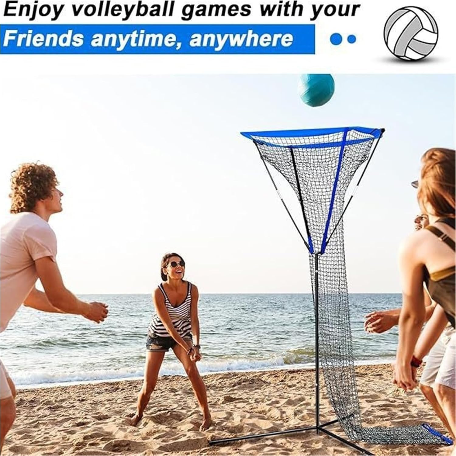 Set da pallavolo, Rete da pallavolo for Interni/Esterni, Rete da pallavolo Facile da Montare, Attrezzatura Sportiva for Feste in Spiaggia/Mare(Blue)