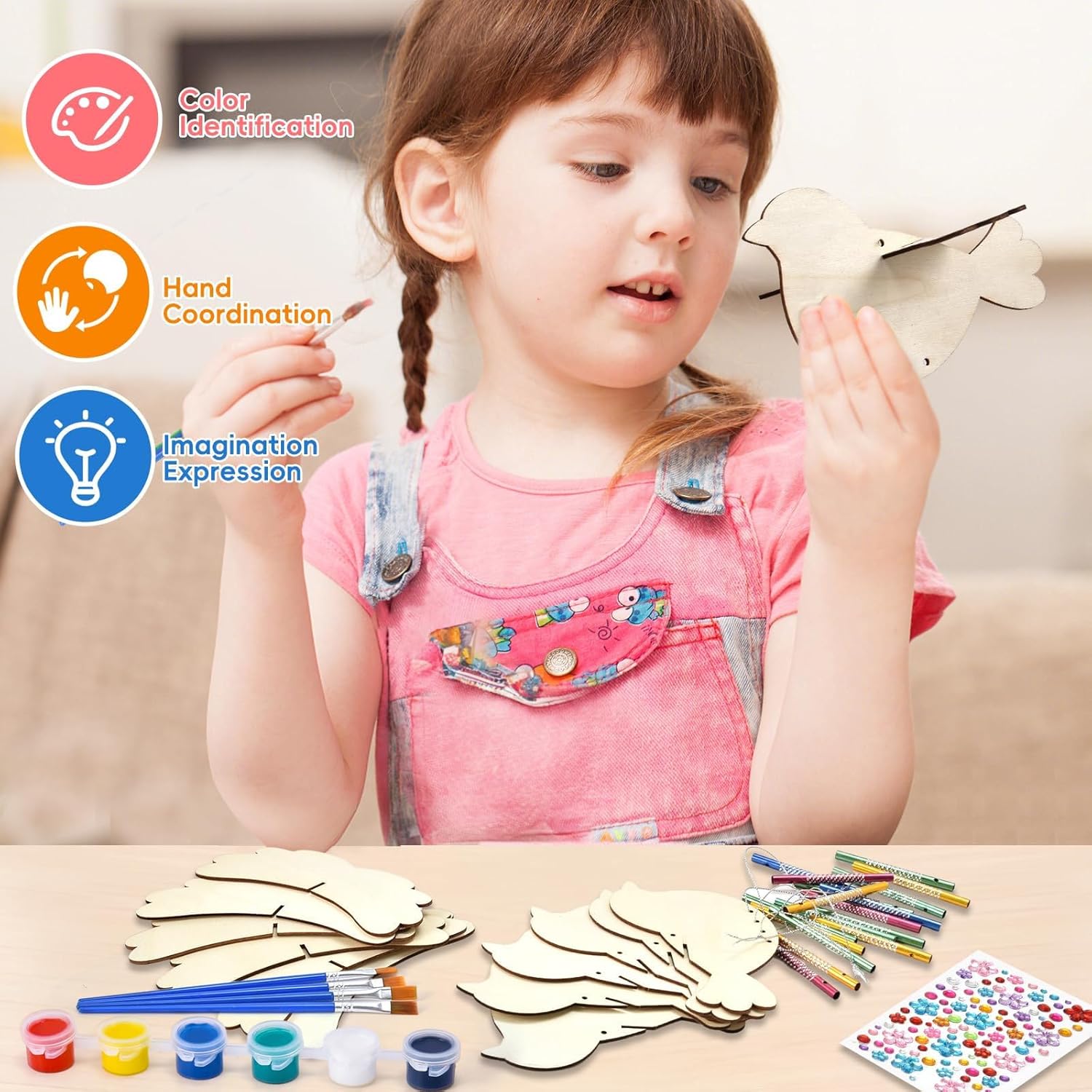 Divertimento creativo ha dimostrato: dare il potere di mostrare le loro attività creative interiori. Guarda come prosperano con progetti fantasiosi e stimolanti come la progettazione e la creazione dei propri pendii di Bird Wind Chime e offrono l'opportunità di esplorare la loro creatività ed espandere la loro mente. Kit completo di accessori: liberate la creatività del vostro bambino con il nostro kit Wind Chime, un kit completo che soddisfa tutte le esigenze di artigianato, compresi i modelli di uccelli in legno e gli strumenti per la pittura, per ottenere un'esperienza divertente. Creative Get Engagement: il nostro kit Wind Chime per bambini è un'attività divertente ed educativa. Con il suo design semplice e adatto ai bambini, i bambini possono facilmente colorare, assemblare e decorare sviluppando le loro abilità pratiche e concentrazioni. Sbarazzati della creatività di tuo figlio e dai loro il dono dell'apprendimento giocando. Miglioramento dell'ambiente: aumenta il tuo scacciapensieri per uccelli, un processo adorabile che culmina in una vivace decorazione domestica. Perfetto per fermarsi dopo finestre o porte, aggiungendo un tocco di umore e colore a qualsiasi stanza. Multiuso e versatile: collega i bambini in un'attività divertente e creativa con il nostro kit Wind Chime. Una misura perfetta per attività artistiche, feste di compleanno, progetti in classe e molto altro ancora. Con scorte versatili e semplici istruzioni, questo rende anche un'opzione regalo perfetta e unica.