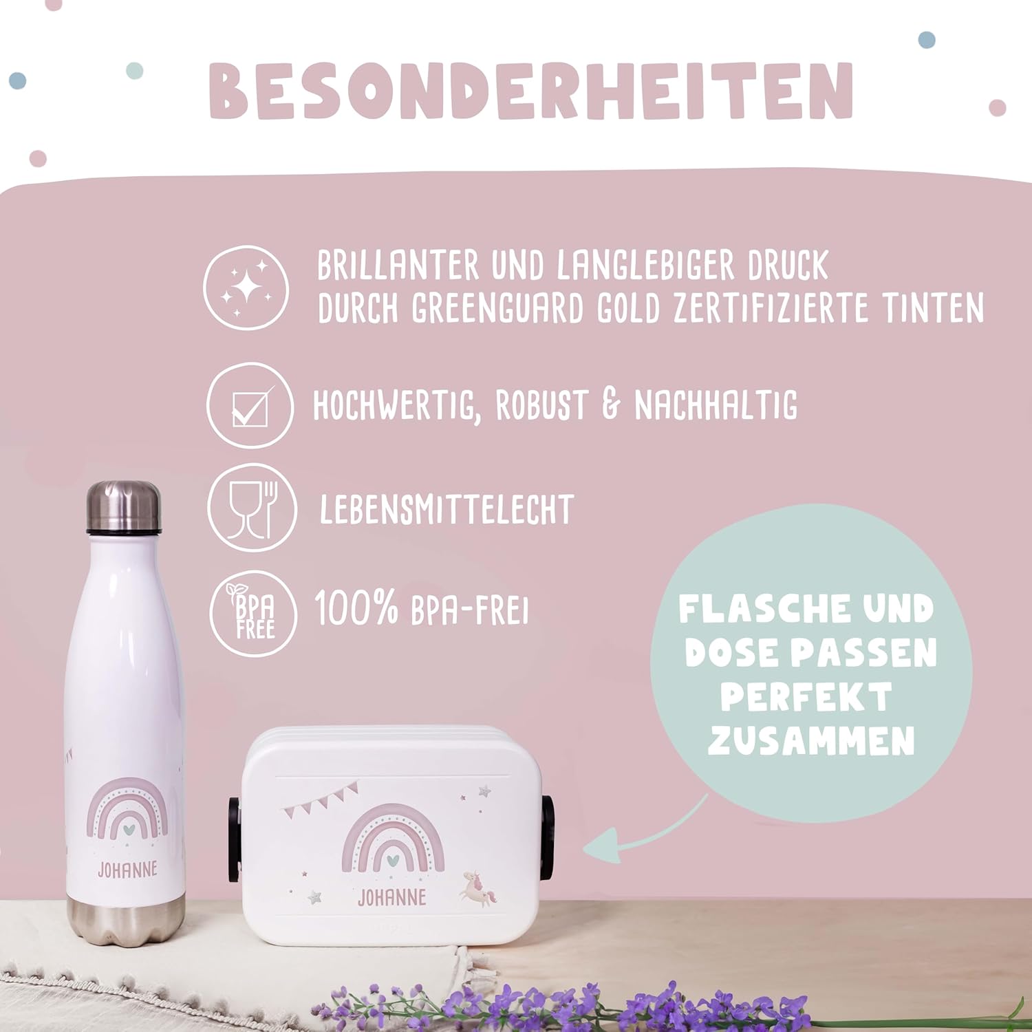 | Enthaltene Komponenten | Flasche, Mepal Brotdose |