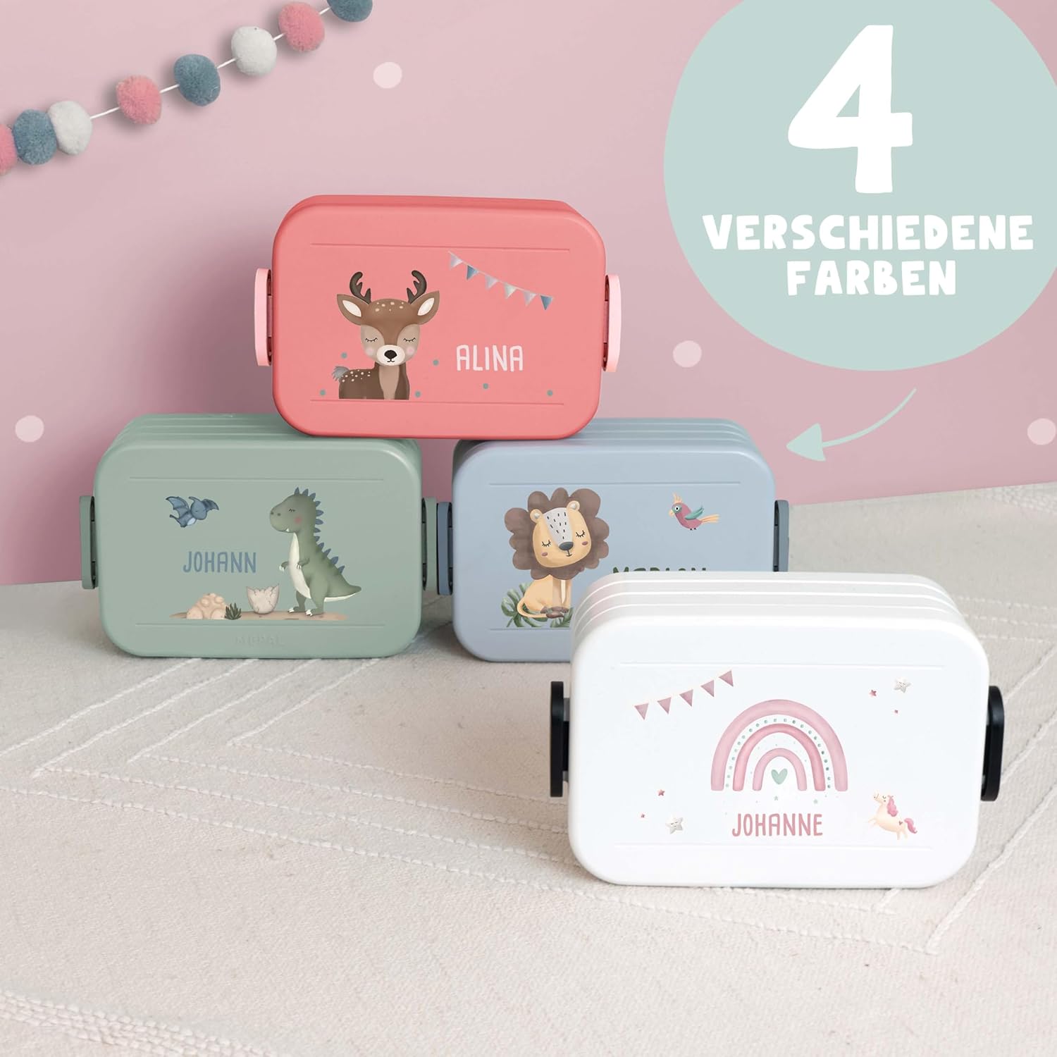 🖌️Personalizzato: possibilità di personalizzare con nome, perfetto per i bambini. In modo che da scuola vengano portati il cestino del pranzo e la bottiglia d'acqua giusti. 🍽️Lavabile in lavastoviglie: facile da pulire: tutte le parti del contenitore per il pranzo sono lavabili in lavastoviglie. La borraccia può essere facilmente risciacquata con acqua. ♻️Senza BPA e a prova di perdite: realizzato con materiali sicuri e di alta qualità, ideali per l'uso quotidiano. La costruzione sicura previene la fuoriuscita di liquidi e mantiene il cibo fresco. 🎨 Selezione colore: la scatola per il pane Mepal è disponibile in quattro colori: verde, rosa, blu e bianco. La borraccia è sempre bianca. ❤️Motivi dipinti a mano: disegni unici e disegnati con amore che deliziano ogni bambino. Ottima idea regalo per l'inizio della scuola o dell'asilo nido 📐Portapranzo Mepal con capacità di 900 ml (18,5x12x6,5 cm) / borraccia con capacità di 500 ml (26,5x7 cm) ✅ Inserto o divisore Bento: a scelta con divisore rimovibile o scatole Bento per dividere il portapranzo