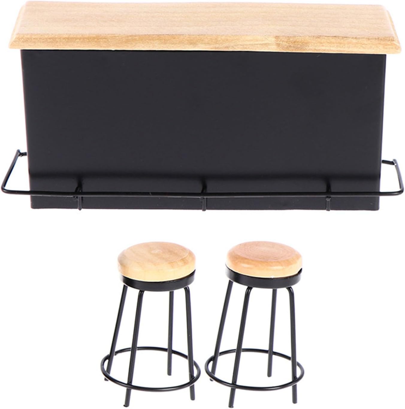 Questo delicato bancone da pub è ideale per collezionisti e adulti appassionati di miniature e migliora la scena della casa delle bambole o funge da mago decorativo in mostre creative. Con la sua grande attenzione ai dettagli e la costruzione robusta, questi mobili in miniatura sono un regalo sufficiente per gli hobbisti che cercano accessori premium per la casa delle bambole. Realizzato con robusta struttura in metallo e piano in legno lucido, questo set da bancone da pub in miniatura in 3 pezzi combina perfettamente i mobili della casa delle bambole in scala 1/12 con il suo display di design integrato insieme a bottiglie in miniatura, barattoli o toppers per torta per creare un'incantevole scena da pub per case delle bambole per creare esposizioni di mercato in miniatura o ambientazioni di progetti di modellini artigianali. Il set include un tavolo da pub dettagliato e due sedie da pub, meticolosamente realizzati in metallo e legno per un aspetto realistico della scena del pub della casa delle bambole