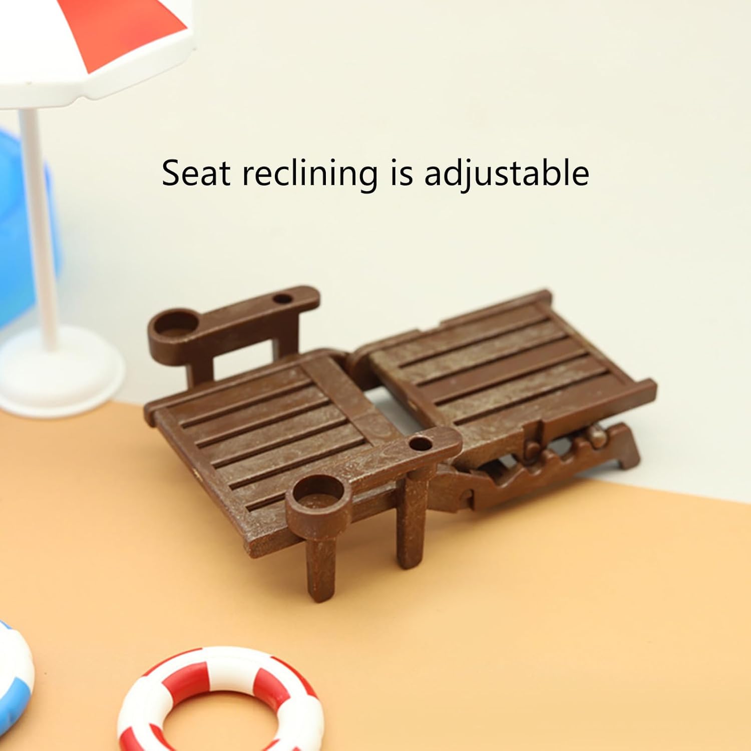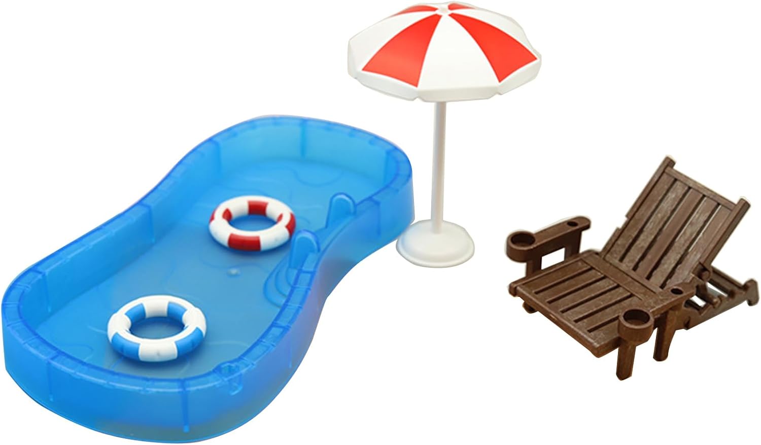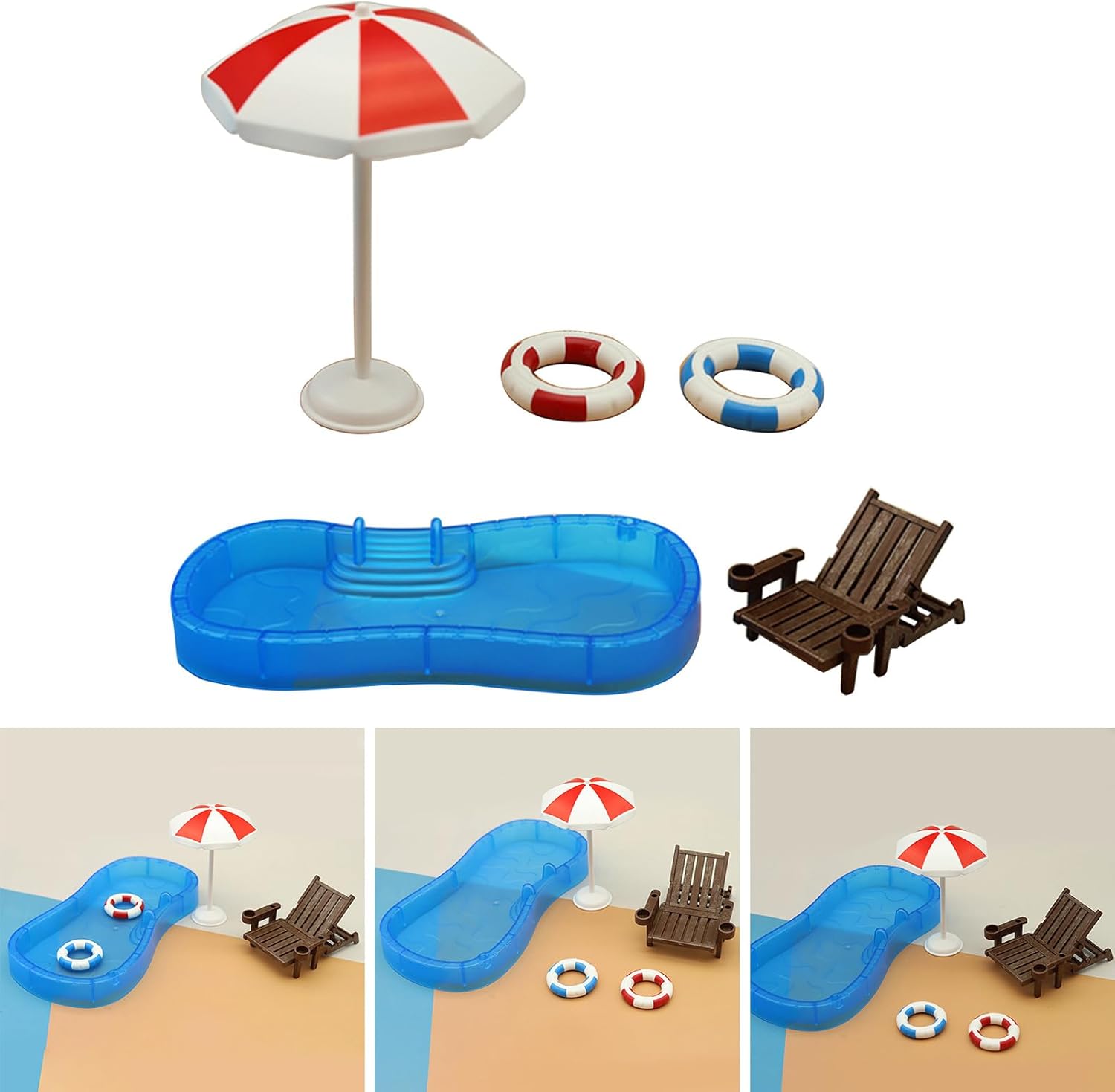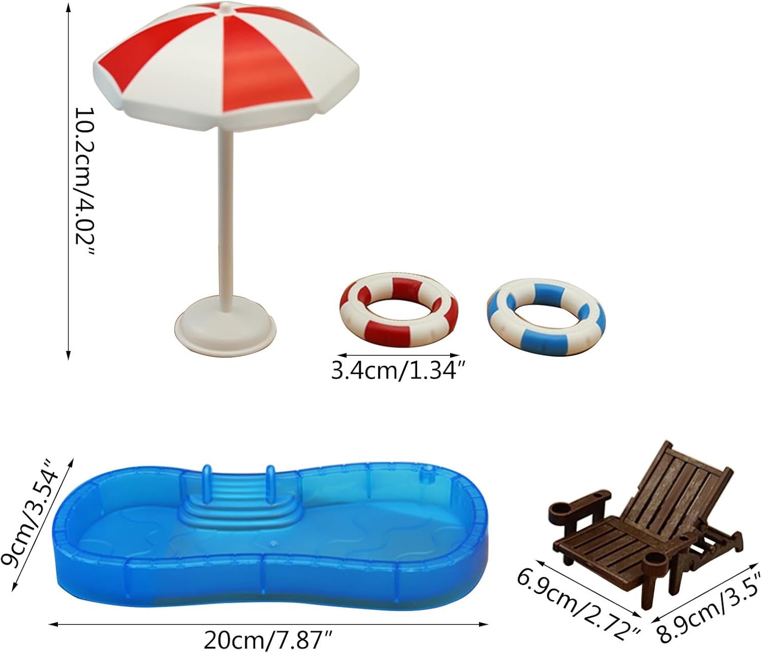Crea una scena da spiaggia divertente e rilassante nella tua casa con questo set modello di sedia da spiaggia per piscina, perfetto per un set da gioco fantasioso realizzato con materiali plastici di alta qualità e include un ombrellone, una sedia a sdraio e due anelli per il nuoto per aggiungere un tocco colorato alle tue scene in miniatura. Indipendentemente dall'uso per creare un display o decorare il tuo giardino in miniatura o acquari. Le possibilità sono infinite. Questo set è progettato sia per bambini che per collezionisti e può essere utilizzato con case delle bambole in scala 1:12 e altri modelli in miniatura