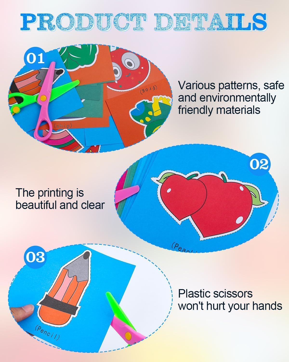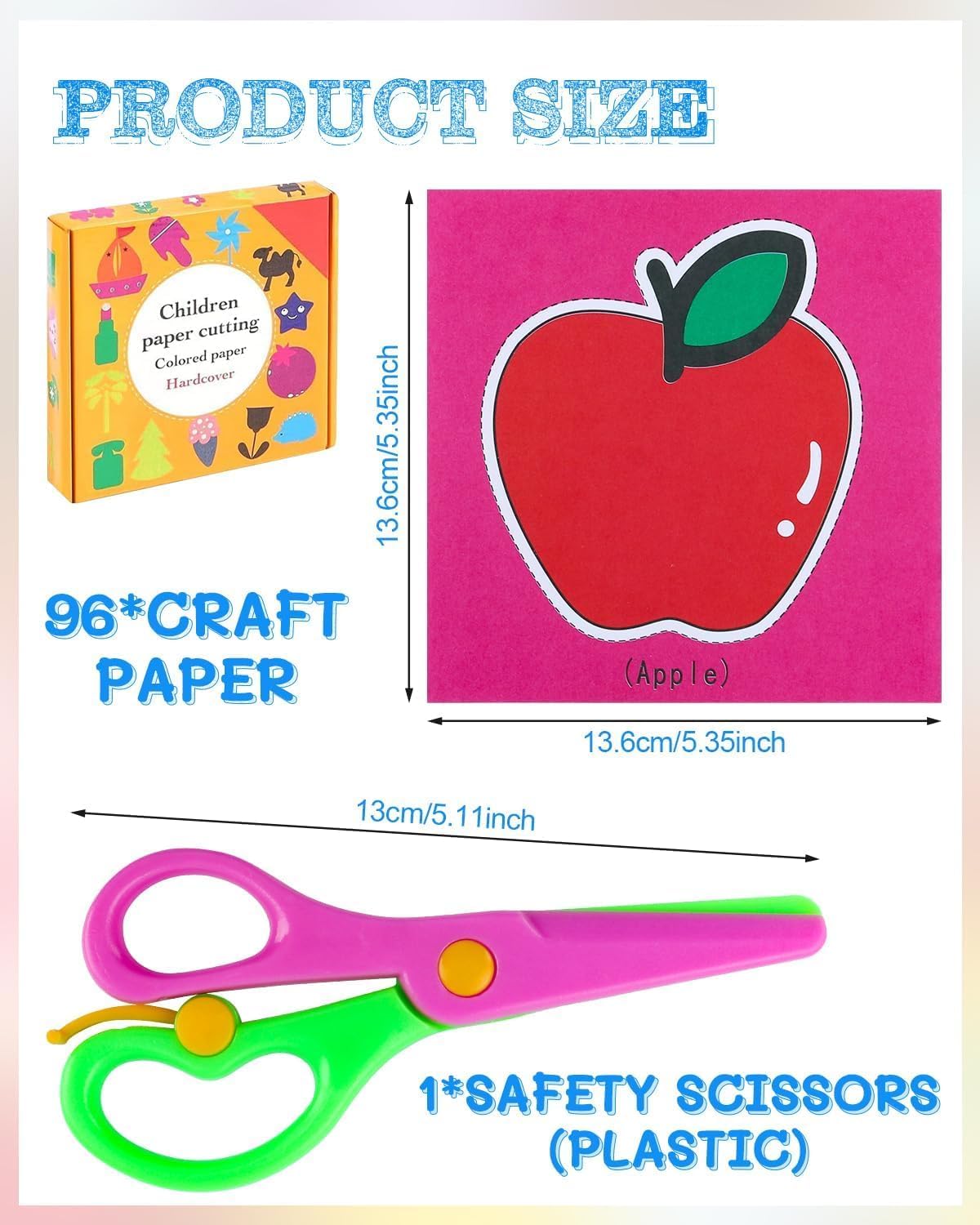 Set per tagliare la carta: riceverete 1 paio di forbici di sicurezza per bambini con 96 pezzi di carta con diversi motivi. Giocattolo da taglio di carta per bambini 96 diversi fogli di carta con colori e motivi ricchi possono promuovere l'illuminazione cognitiva dei bambini. Con questo divertente set di carta per bambini, le attività creative dei vostri bambini diventeranno troppo colorate. Materiale sicuro: carta colorata, atossica, non danneggia la pelle del bambino. 80 g di carta più spessa, buona flessibilità, non si strappa facilmente. Leggero e portatile, puoi facilmente riporre le forbici per bambini in viaggio. Forbici in plastica ABS, sicure e durevoli. Consigliato per bambini dai 3 anni. Il giocattolo educativo perfetto offre molto divertimento per i vostri bambini. Il rischio di lesioni è quasi assente. Le forbici di sicurezza per bambini tagliano solo carta e materiali simili alla carta, senza capelli, senza pelle, tessuto e altri materiali. Tagli di carta a colori – 96 tagli di carta contengono diversi temi per aiutare i bambini a migliorare la loro percezione. I bambini possono ritagliare forme diverse utilizzando i modelli prestampati e quindi promuovere il loro pensiero creativo e le loro abilità artigianali. Interessante set di taglio della carta: con questo set di forbici i genitori possono giocare e imparare con i loro bambini. Il nostro kit di decoupage è ricco di frutta, immagini di animali, puoi insegnare ai bambini a capire alcune forme di base e parole inglesi, come imparare animali, frutta, veicoli, cibo e altro ancora. Questo divertente set di carta è stato progettato per i bambini. Può aiutare i tuoi figli a migliorare la coordinazione occhio-mano, promuovere le loro capacità motorie, abilità cognitive e pazienza. Set regalo perfetto: le forbici da allenamento sono in plastica. Non portare vicino a fuoco o elettricità. Lascia che i tuoi bambini li utilizzino sotto la supervisione di un adulto. Unisciti al progetto fai da te e fai da te con le forbici artistiche per bambini e divertiti a stare con la tua famiglia. Consigliato per bambini dai 3 anni. Il giocattolo educativo perfetto offre molto divertimento per i vostri bambini.