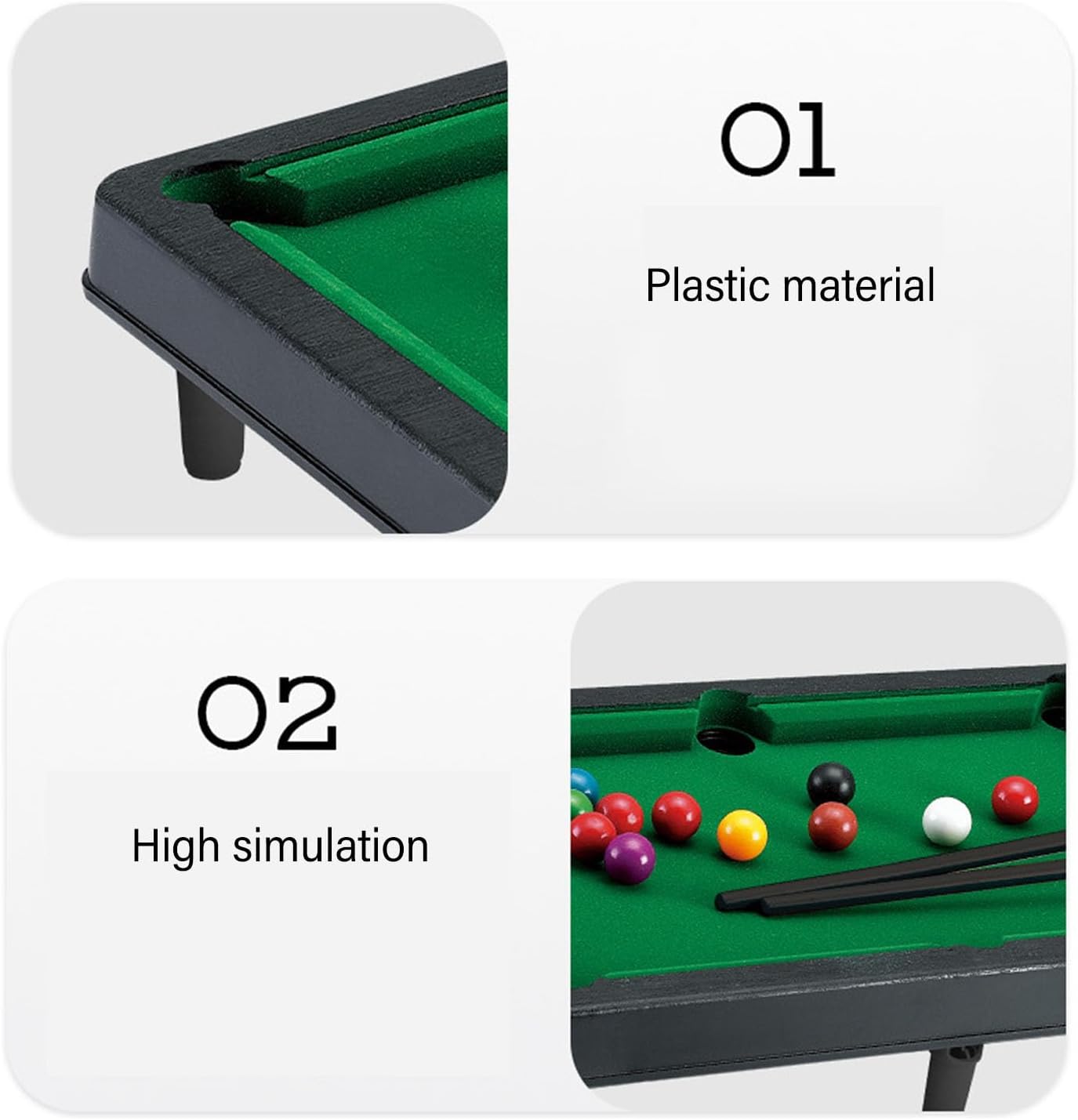 Illuminazione educativa: il giocattolo da tavolo da biliardo può coltivare l'osservazione e la capacità di pensiero dei bambini, esercitare la coordinazione occhio-mano e promuovere lo sviluppo del cervello. Costruzione robusta: realizzato in materiale plastico, il tavolo da biliardo di piccole dimensioni è costruito per resistere al gioco regolare e offrire intrattenimento di lunga durata ai tuoi bambini. Compatto e portatile: il tavolo da biliardo è progettato per essere leggero e facile da trasportare, rendendolo per piccoli spazi o da portare con sé durante viaggi o riunioni di famiglia. Intrattenimento senza fine: il set da gioco da biliardo da tavolo ti consente di goderti ore di divertimento e risate, che ti consentono anche di insegnare a tuo figlio le basi del biliardo. Doppio giocatore: gioca con un amico o un familiare e goditi partite competitive sul tavolo da biliardo per doppio giocatore, incoraggia le interazioni sociali e la competizione amichevole.
