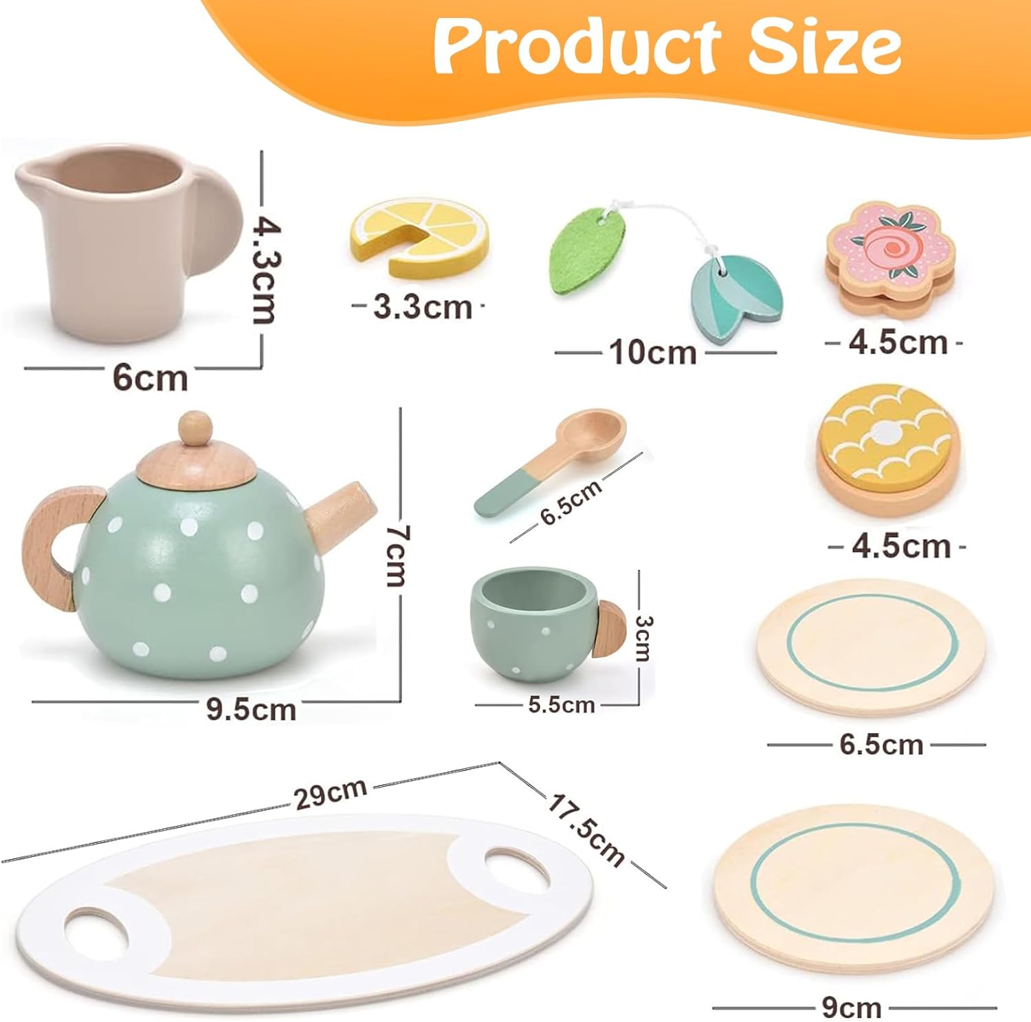 Set da Tè Giocattoli in Legno: Cucina giocattolo per bambini includono teiera, tazza da tè, tazza da latte, sottobicchiere, cucchiaio, vassoio, giocattoli da mangiare come bustine di tè, biscotti e fette di limone Materiali di Qualità: Questi accessori cucina bambini sono realizzati in legno atossico con vernice a base d'acqua sicura per i bambini. I bordi del set da tè e degli accessori per cupcake sono lisci e non feriscono la pelle dei bambini dai 3 anni in su Design Classico: Il set da tè per bambini si basa sul concetto di design tradizionale. Il set da tè realistico consente ai bambini di fingere di partecipare a un tè, di imparare il galateo del bere il tè e di utilizzare il set da tè, incoraggiando al contempo l'immaginazione, la comunicazione e la socializzazione Divertente ed Educativo: Il gioco di ruolo con gli amici migliora le abilità sociali attraverso la comunicazione verbale e fisica, incoraggiando lo sviluppo della motricità fine, della coordinazione occhio-mano, della creatività e dell'immaginazione Regalo Perfetto: Gli set gioco cucina in legno per bambin sono regali ben fatti, pensati e significativi. Perfetti da regalare ai bambini per compleanni, vacanze o qualsiasi altra occasione speciale