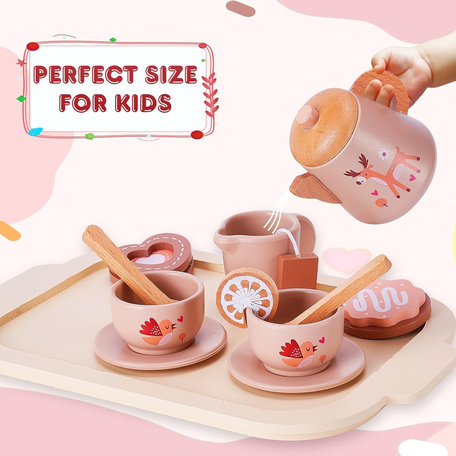 👯♀️ 【Cosa ottieni?】 Il set da tè per bambini è composto da bollitore x1, tazza d'acqua x1, coperchio x1, bustine di tè x1, tazze da tè x2, piatto piano x2, cucchiaio x2, fette di limone x1, torta x2 , vassoio x1, scatola x1, 2 diversi dessert con biscotti, torte, ecc. Con il set tea party per bambini, i tuoi bambini potranno godersi l'ora del tea party divertendosi senza schermo ✅ 【Materiale】 Il servizio da tè per bambini è realizzato in legno di alta qualità, realizzato in legno, i bordi lisci del servizio da tè proteggono le piccole mani dei bambini. La struttura robusta è più durevole e resistente alle cadute rispetto ai giocattoli di plastica. Set da tè per bambini Porta divertimento senza fine ai bambini garantendo la sicurezza 🍰【È ora di un tea party da piccola principessa】La tua piccola bambina si sta preparando per un felice momento del tè con amici e familiari, dessert, bevande e conversazione! Stendi la tovaglia, riempi la torre dei dessert e il vassoio con un delizioso dessert, versa il tè o il caffè nella tazza e inizia l'ora del tè! simula la scena del tea party più realistica 🧠 【Divertiti imparando】 set da tè per bambini Adatto a bambini dai 3 anni in su, che consente ai bambini di apprendere nuove conoscenze in modo giocoso, promuove le abilità pratiche indipendenti dei bambini, migliora la coordinazione occhio-mano e incoraggia attivamente i bambini, Un modo meraviglioso per introdurre in modo divertente i concetti di condivisione, ospitalità e buone maniere a tavola 🧸🎀 【Miglior regalo】 Questo set da tè per bambini è un fantastico giocattolo per bambine di 2, 3, 4 e 5 anni, che è un ottimo momento per i genitori di fare delle pause o giocare con i bambini. Può essere utilizzato anche come decorazione domestica quando non si gioca. Questo lo rende un regalo perfetto per il rientro a scuola, i compleanni, Natale, Pasqua e Capodanno