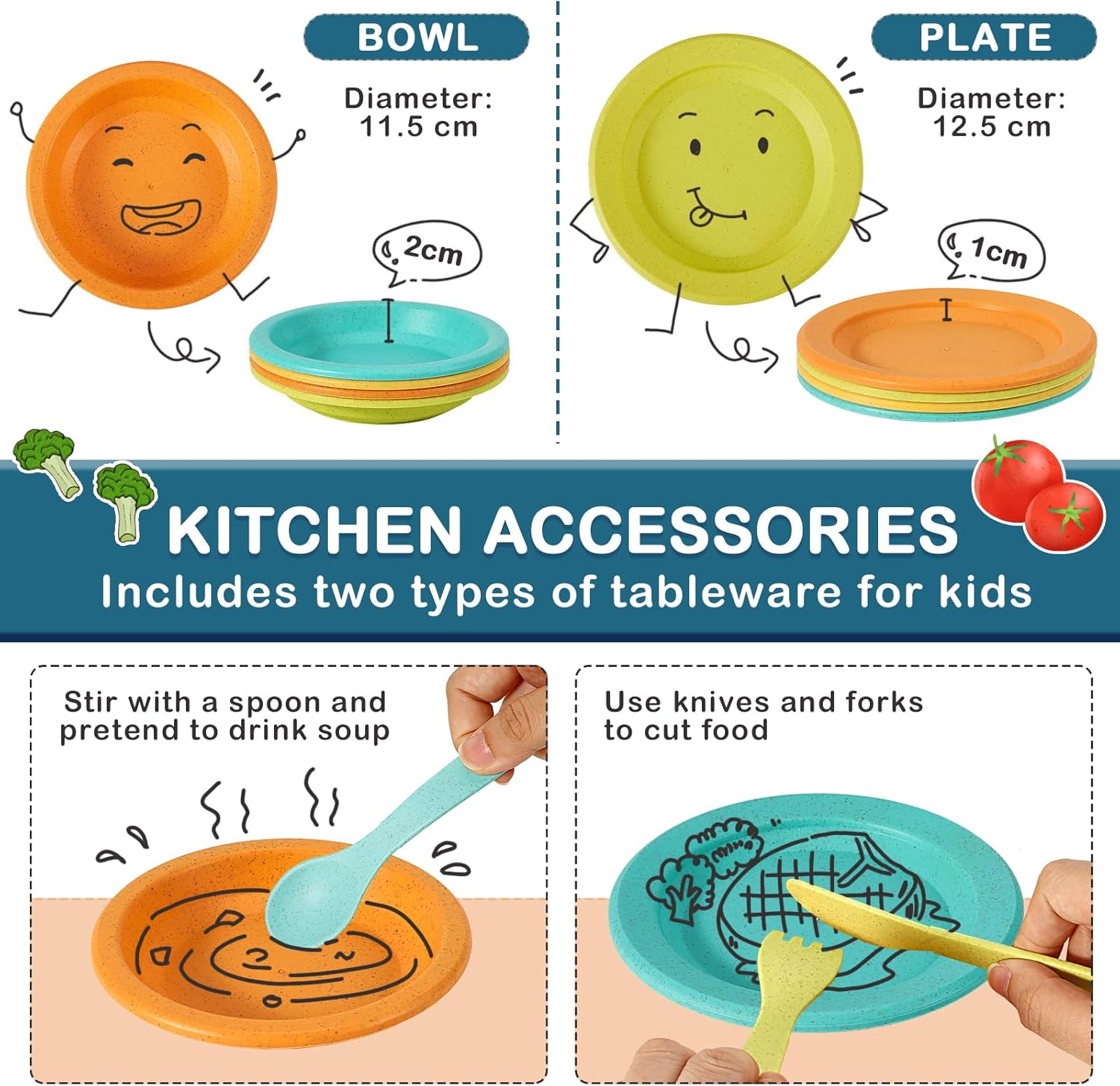 Set Giocattoli da Cucina: Questo set di utensili da cucina comprende una teiera, un porta tè, tazze da tè, tazze da latte e tazzine e cucchiai, piattini da tè, piatti, ciotole, cucchiai da minestra, coltelli e forchette, con tanti accessori e molteplici modi di giocare. Set da Tè per Bambini: I giocattoli con set da tè per bambini sono ideali per i giochi di ruolo e i bambini possono invitare amici e familiari a organizzare un tea party, incoraggiando così la comunicazione e migliorando le abilità sociali. Set Cucina Bambini: Grazie a giochi realistici, i bambini possono imparare le buone maniere a tavola e a usare le posate bevendo la zuppa da ciotole e cucchiai o facendo finta di tagliare il cibo con coltelli e forchette. Giochi di Cucina Multiplayer: Questo divertente e colorato set da cucina è adatto ai bambini per giocare da soli o per un massimo di 4 persone. Più tempo di gioco per i vostri bambini! Regalo per Bambini: Questo set di giocattoli da cucina è adatto per feste, picnic, cucina, ristorante e molti altri scenari, ideale per i giocattoli da cucina e i giocattoli da ristorante, adatto per compleanno, festa, regali per bambini!