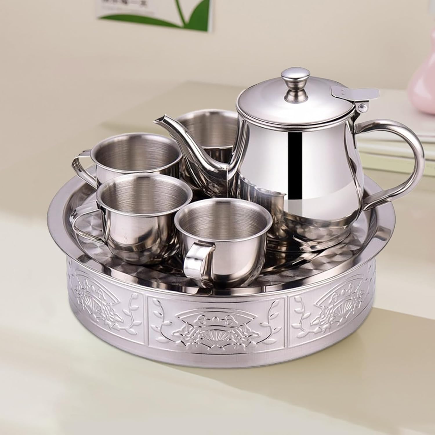 Struttura affidabile in acciaio inossidabile: progettato con acciaio inossidabile 304, questo set da tè combina resistenza alla ruggine, resistenza duratura e sicurezza affidabile, rendendolo adatto per famiglie impegnate che cercano utensili da cucina affidabili Migliore chiarezza del tè: dotato di un filtro a maglia fine che intrappola efficacemente particelle di tè e macchie, offrendo una bevanda liscia e migliorando il piacere del tè senza sforzo Design portatile e affidabile: presenta un design portatile adatto per ambienti interni ed esterni, fornendo mobilità senza sforzo insieme a un particolare vassoio per organizzare la teiera e le tazze in modo sicuro durante i viaggi o le riunioni Divertente strumento di apprendimento: progettato per i bambini con un set da tè ergonomico a misura di bambino che incoraggia l'interazione sociale sostenendo lo sviluppo di abilità motorie indispensabili in modo divertente Esperienza educativa del tè: questo set da tè in acciaio inossidabile stimola la creatività incoraggiando il gioco fantasioso, rendendolo uno strumento educativo e giocoso adatto che coltiva la consapevolezza dell'etichetta nei bambini durante gli allenamenti interattivi dell'ora del tè