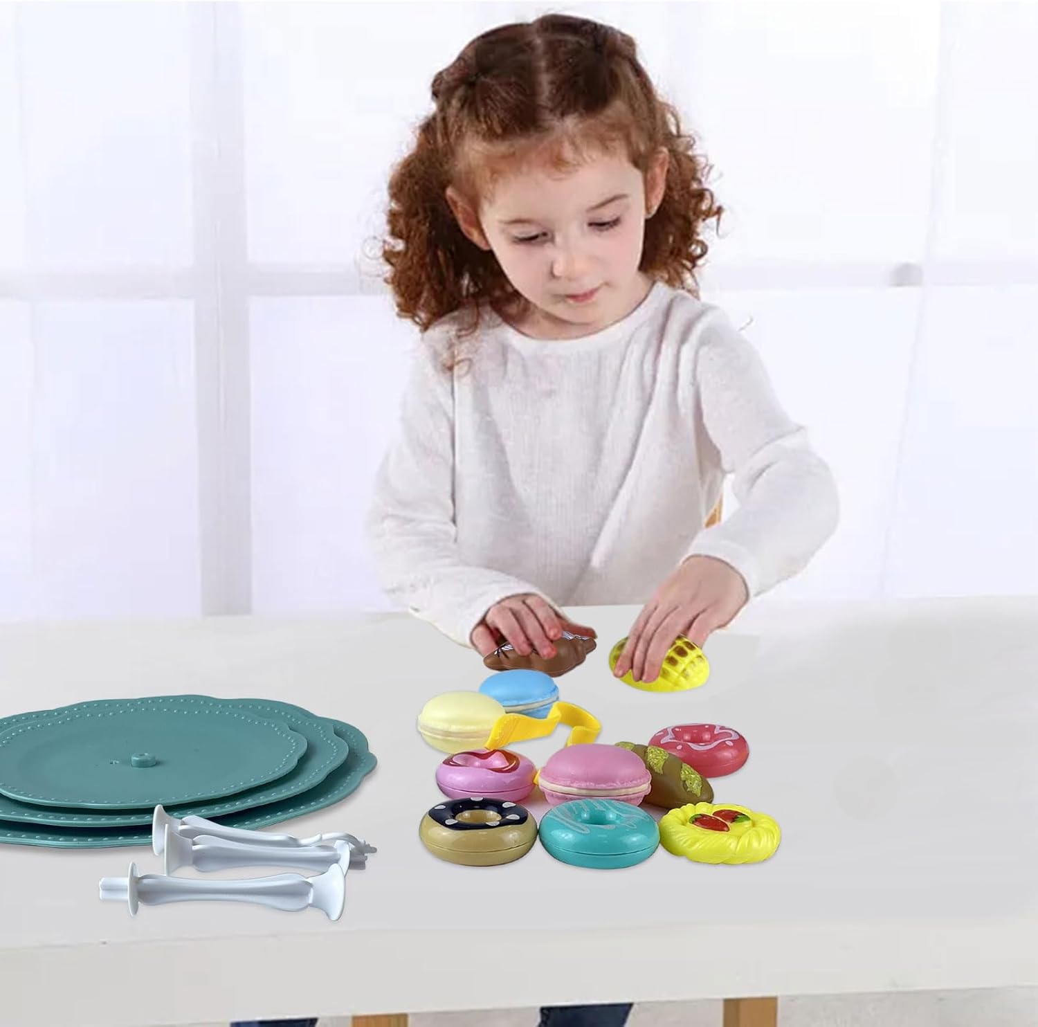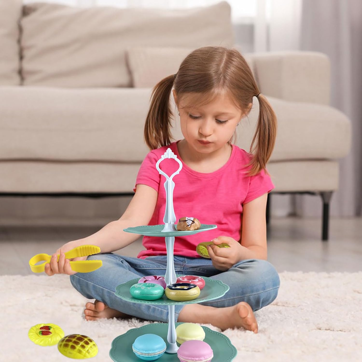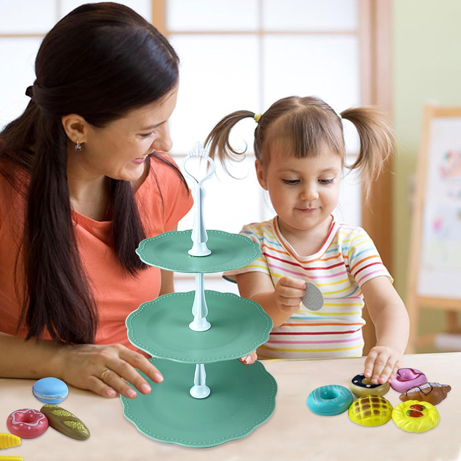 【accessori cucina giocattolo】Riceverai un giocattolo modello di torta in plastica, un set da tè, 18 accessori tra cui: 4 ciambelle, 3 torte, 3 pagnotte, 1 biscotto, 1 piatto da dessert a 3 livelli, 1 pinza, 3 supporti da dessert . Lascia che i bambini sperimentino il divertimento di un pasticciere nei giochi di ruolo e stimolino creatività e immaginazione illimitate 【frutta dessert giocattolo per bambini】Set di dolci per il tè pomeridiano, elementi educativi come il riconoscimento dei colori e lo sviluppo di abilità pratiche consentono ai bambini di apprendere il senso comune della vita attraverso i giochi, promuovere lo sviluppo della coordinazione occhio-mano e del pensiero logico e gettare buone basi per l'apprendimento futuro 【set cucina giocattolo 】Set da dessert per accessori da cucina, tutte le parti sono facili da smontare e pulire, mantenendo i giocattoli igienici e privi di germi. La scatola portaoggetti allegata facilita l'organizzazione e l'organizzazione, aiutando i bambini a sviluppare abitudini ordinate fin dalla tenera età. Il materiale robusto e durevole può resistere al gioco ripetuto dei bambini e accompagnerà a lungo la crescita del tuo bambino 【mini food gioco】Il giocattolo alimentare è un prodotto che i genitori possono accompagnare i propri figli per godersi l'ora del tè insieme e rafforzare il legame genitore-figlio. Bellissimo gioco giocattolo per bambine di 3 4 5 anni. Non è solo un giocattolo, ma anche un ponte che collega le emozioni familiari. È molto adatto come regalo per bambini per compleanni, Natale, Ringraziamento, Pasqua, ecc. 【set da tè giocattoli】Questo set da tè da dessert da cucina è realizzato in materiale plastico/plastico di alta qualità, resistente e con angoli arrotondati per evitare graffi e fornire la protezione più delicata per il tuo bambino