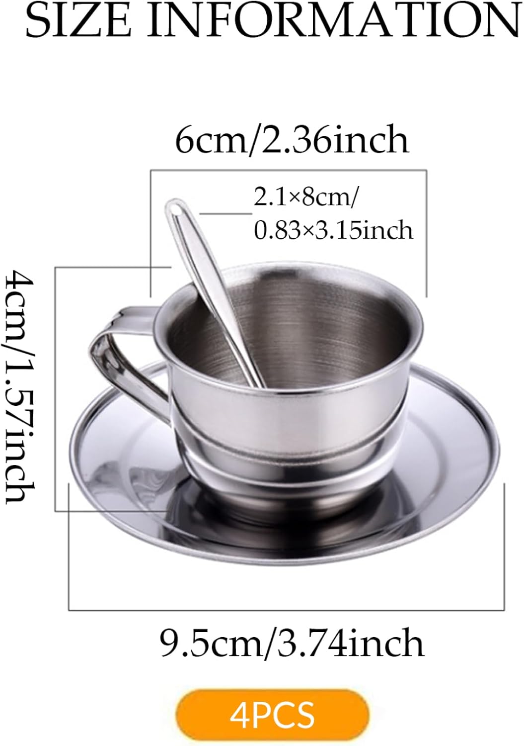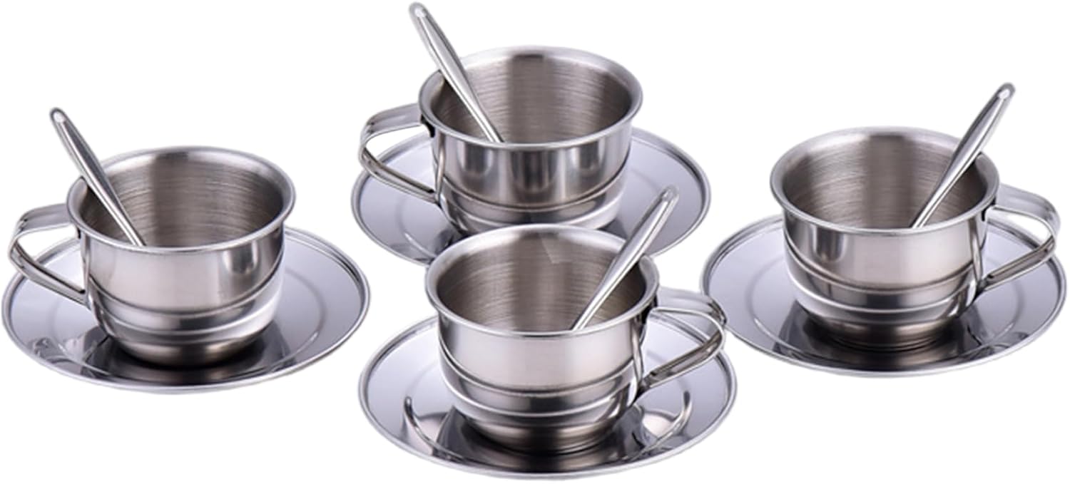 Set da tè per bambini in acciaio inossidabile resistente al calore con 4 tazze da 70 ml 4 piattini e cucchiai per ragazze e ragazzi
