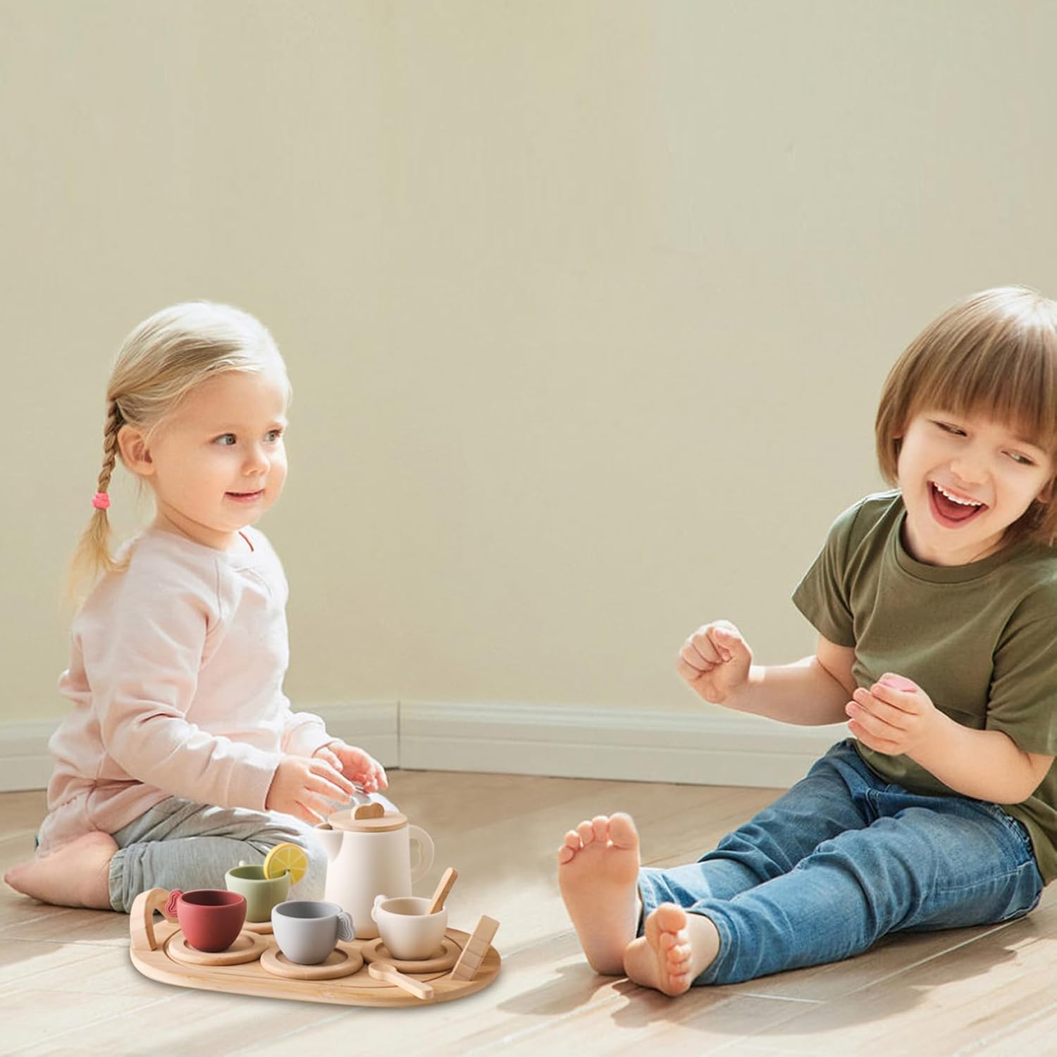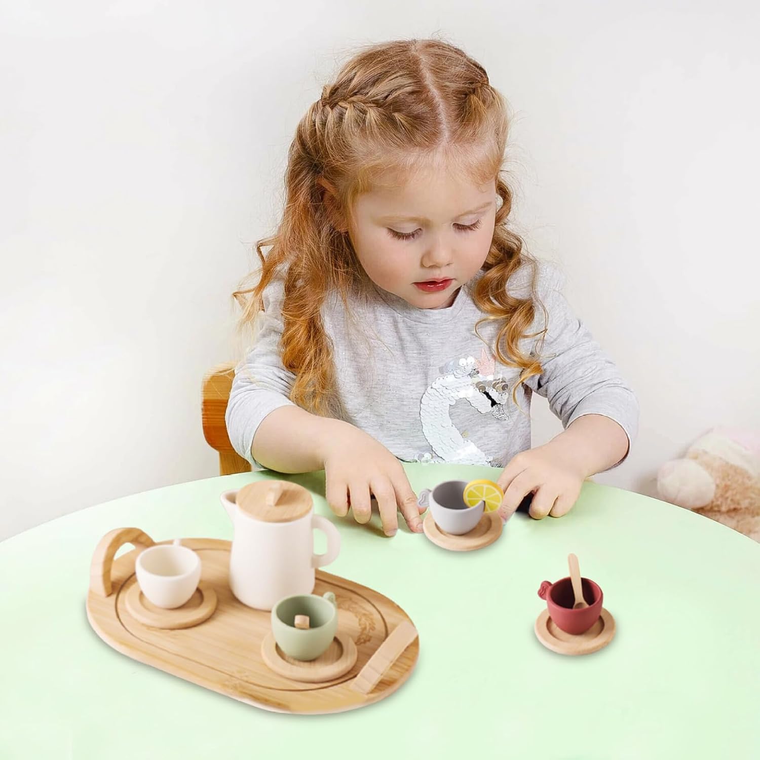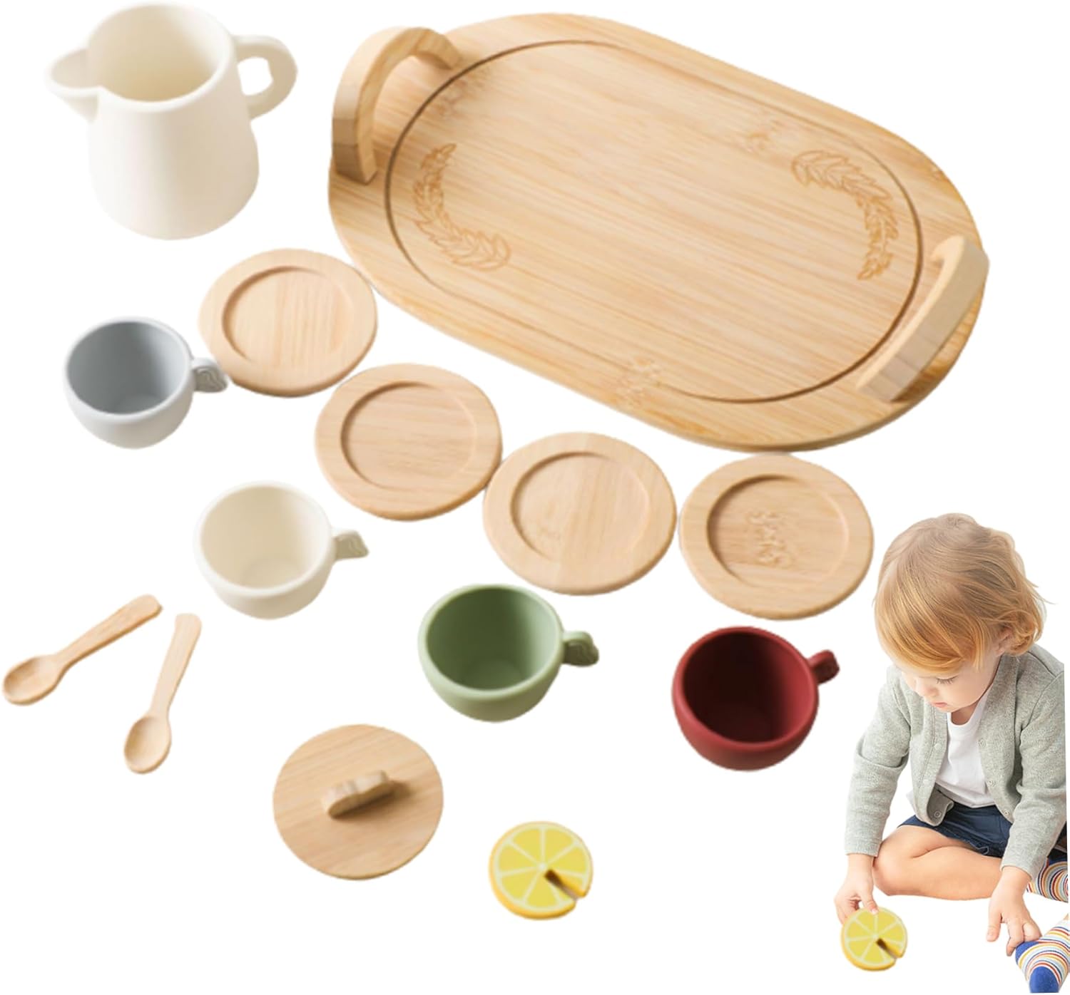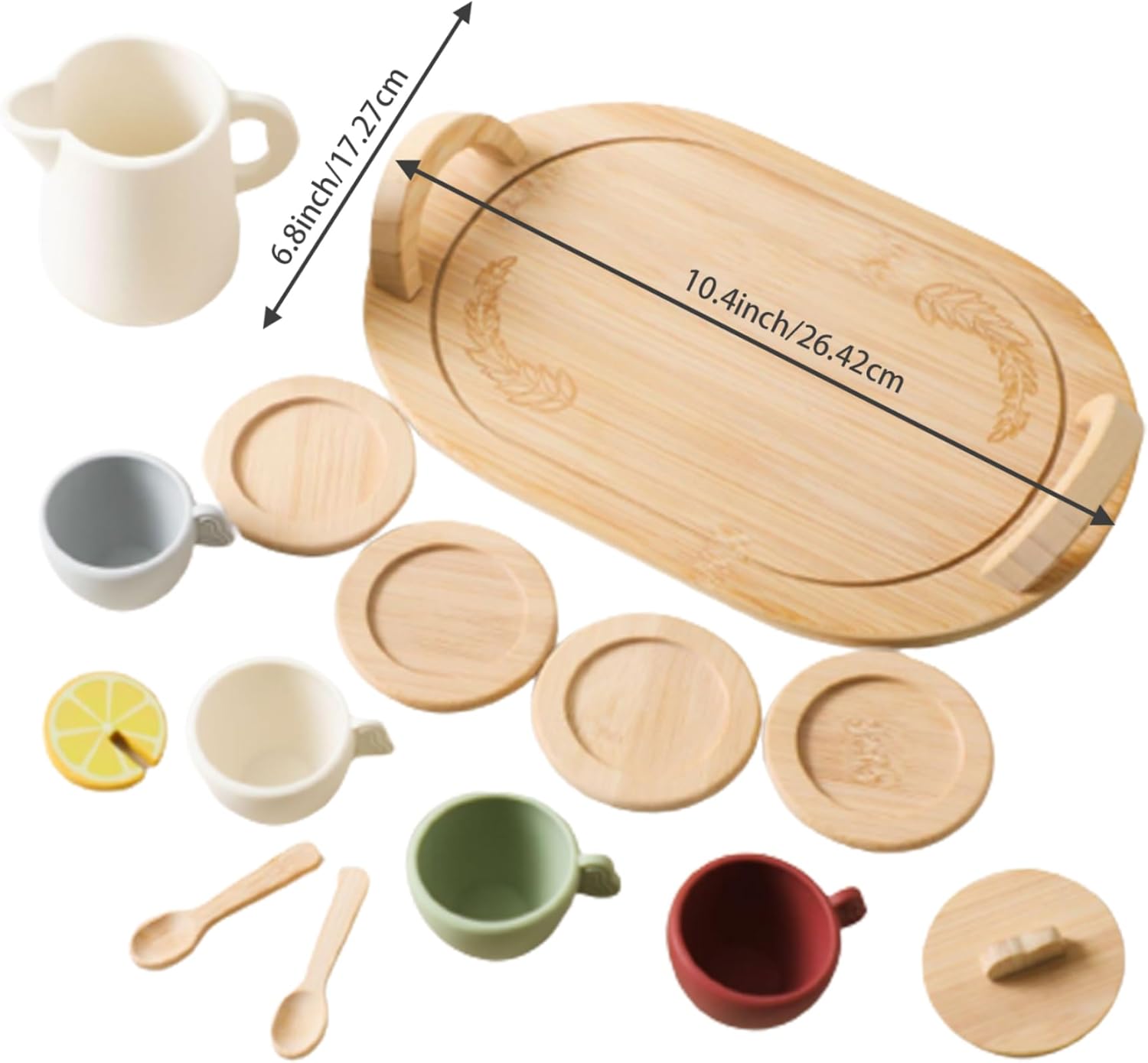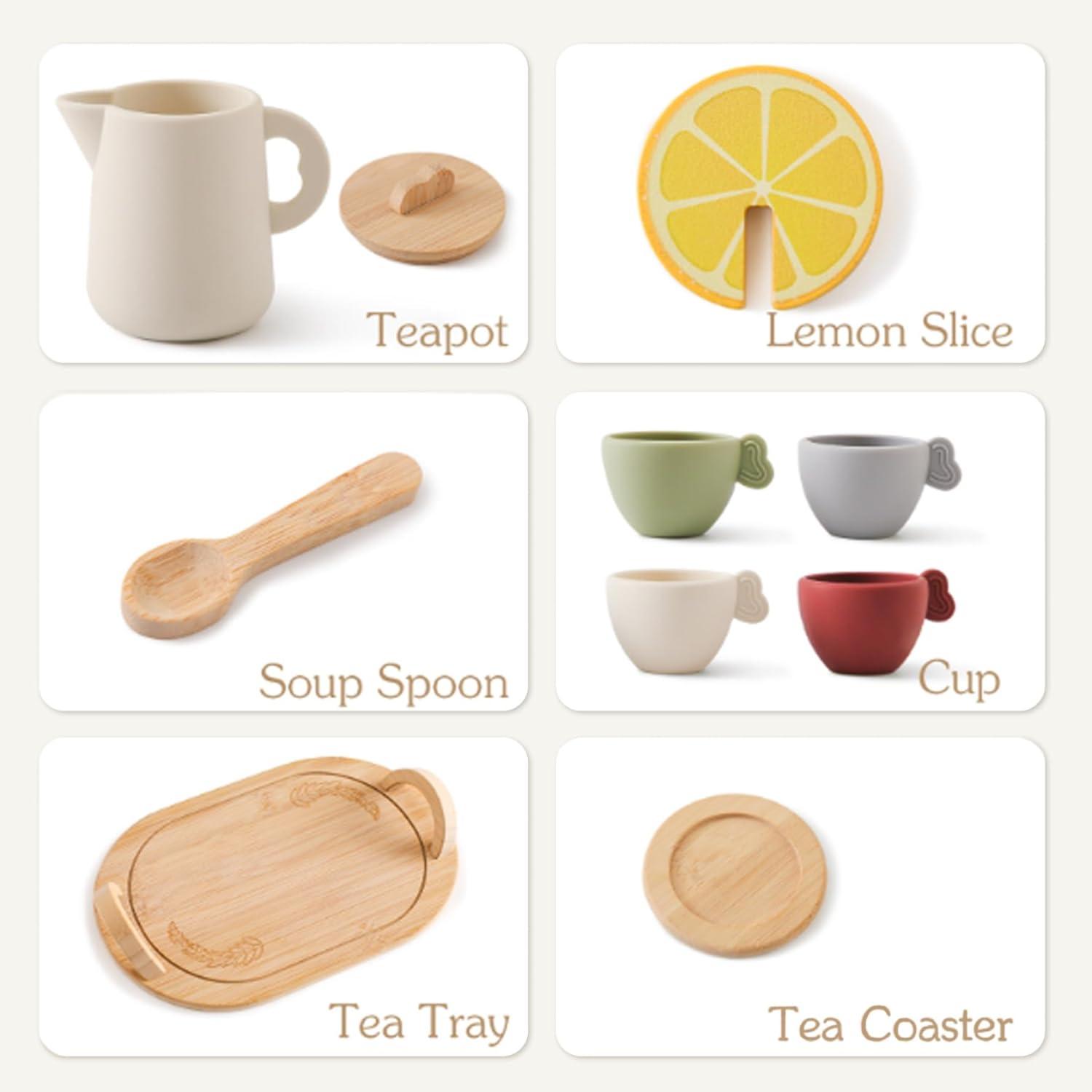 Gioco educativo e fantasioso: questo set da tè per bambini incoraggia i bambini a conoscere la cultura del tè, amplia le loro conoscenze e migliora la loro destrezza manuale durante il gioco. Promuove l'immaginazione e la creatività durante il gioco. Set da tè ricco e giocoso: questo set da tè per giochi di ruolo per bambini comprende 1 bollitore, 1 coperchio del bollitore, 4 tazze, 4 sottobicchieri, 1 vassoio, 1 cucchiaio e 1 fetta di limone, offrendo un'esperienza varia e coinvolgente. Adatto a ragazzi e ragazze dai 3 ai 6 anni, alta giocabilità e intrattenimento. IDEALE PER BAMBINI: questo set da tè per bambini è ideale per compleanni, Natale, Festa dei bambini e altre festività. Promuove il legame genitore-figlio e crea preziosi momenti familiari. Sicuro e materiali: realizzato in legno e silicone per uso alimentare, questo set da tè per bambini è privo di BPA e a prova di perdite, offrendo un'esperienza di gioco sicura e senza preoccupazioni. A differenza degli altri servizi da tè presenti sul mercato, è adatto anche per la dentizione, garantendo sicurezza ai genitori e divertimento ai bambini. Gioco sociale e interattivo: il set da tè per bambini aiuta i tuoi bambini a imparare a interagire con altri bambini e promuove l'interazione sociale, rendendo il gioco con amici della stessa età un'esperienza più piacevole e divertente.