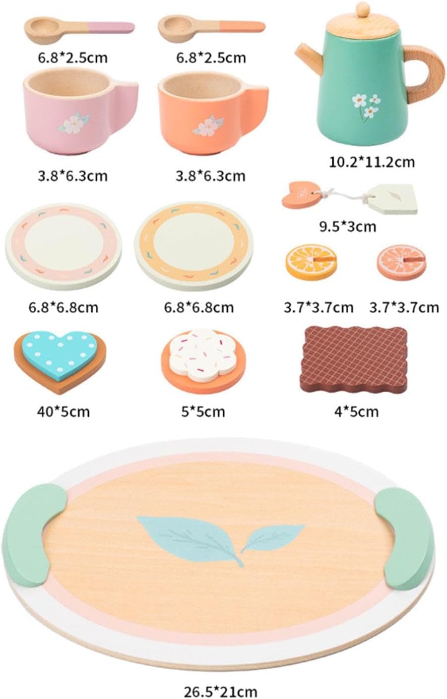 【Sviluppo delle abilità】: impegnarsi nel gioco di finzione con questo set da tè per bambini piccoli migliora le capacità motorie e la coordinazione occhio-mano dei bambini, favorendo la loro capacità di svolgere compiti in modo indipendente 【Design】: Caratterizzato da un colore delizioso e da una raffinata lavorazione artigianale, questo set da tè in legno cattura l'attenzione dei bambini, rendendo il gioco più divertente con la sua varietà di accessori da tè 【Esperienza di gioco interattiva】: questo set di giocattoli in legno per il tè pomeridiano consente ai bambini di godersi simulazioni di vita quotidiana con amici, aiutandoli ad apprendere abilità e conoscenze essenziali per la vita attraverso un gioco fantasioso 【Set per giochi fantasiosi】: il set per il gioco del tè di finzione include tutto il necessario per un fantastico gioco del tè di finzione, il tutto realizzato con materiali di legno e resina di qualità per un uso prolungato 【Legame familiare】: incoraggia l'interazione genitore-figlio condividendo momenti gioiosi di tè pomeridiano, rafforzando le connessioni emotive