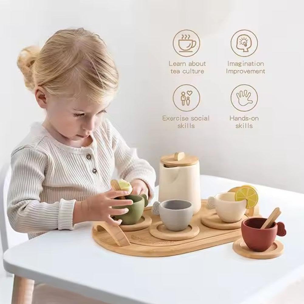 Facile da pulire: tazze e teiere realizzate in silicone per uso alimentare, BPA e facili da pulire. Vassoio da tè, sottobicchieri, cucchiai per mescolare e fette di limone in legno naturale, liscio e adatto ai bambini e non è solo giocattolo per bambini, ma può anche essere utilizzato come decorazione per la casa quando non si gioca. Nota: il set da tè in silicone può essere messo in lavastoviglie e il set da tè in legno non può essere messo in. Design estetico: il set da tè è disponibile in 4 diversi colori, combinando colori popolari e naturali selezionati da colori tenui Morandi, rendendo l'intero set da tè più unico. I set da tè aiutano ad attirare l'attenzione dei bambini e ad immergerli nel gioco. Non solo un giocattolo per bambini, ma anche una decorazione perfetta. Perfetto in ogni occasione: viene fornito in una scatola regalo, ideale per compleanni, Natale o pietre miliari del bambino. sia per ragazzi che per ragazze, il set promuove il gioco inclusivo, inoltre, i pezzi in silicone sono resistenti alla masticazione per i fratelli più piccoli. Migliora l'interazione genitore-figlio: aggiungi del latte o dello zucchero al tè, prepara il tè e condividi con amici e familiari, i genitori incoraggiano i loro bambini a giocare con i loro amici o giocare a fingere con loro, e bambine e ragazzi si godranno un tea party pomeridiano con questo simpatico set da tè giocattolo in legno. promuove anche le abilità sociali, le abilità emotive e motorie dei bambini; e migliora l'immaginazione e la creatività nella conversazione. & Playtime Essentials: realizzato in silicone alimentare per tazze e teiere, abbinato a vassoi e cucchiai in legno naturale liscio. I pezzi in silicone per lavastoviglie resistono a giochi di finzione infiniti, mentre le parti in legno resistono alla scheggiatura