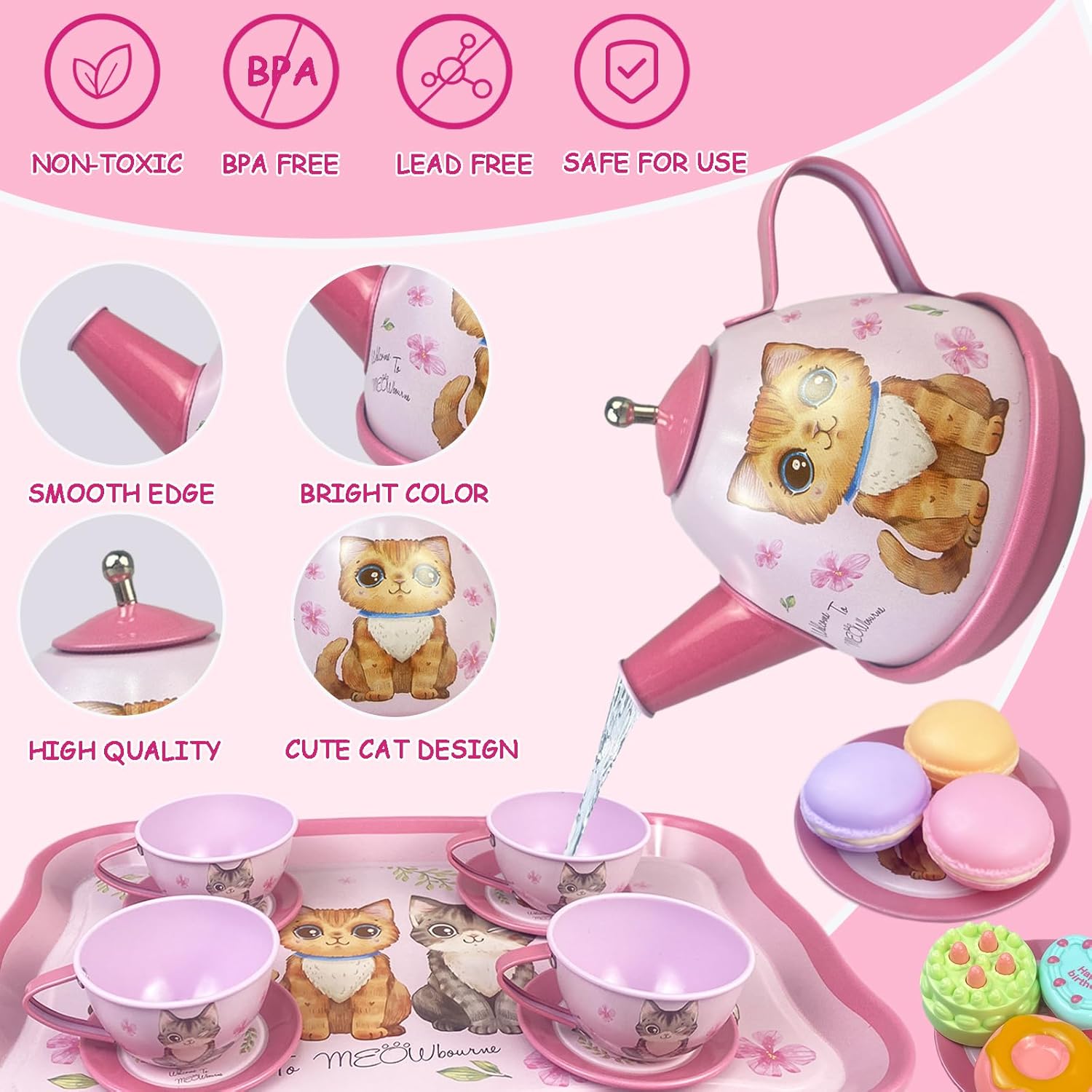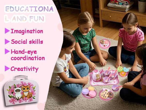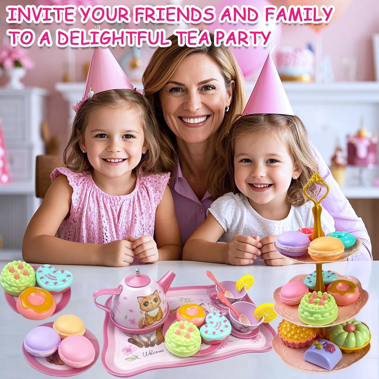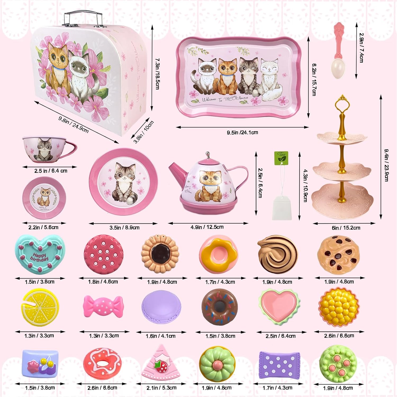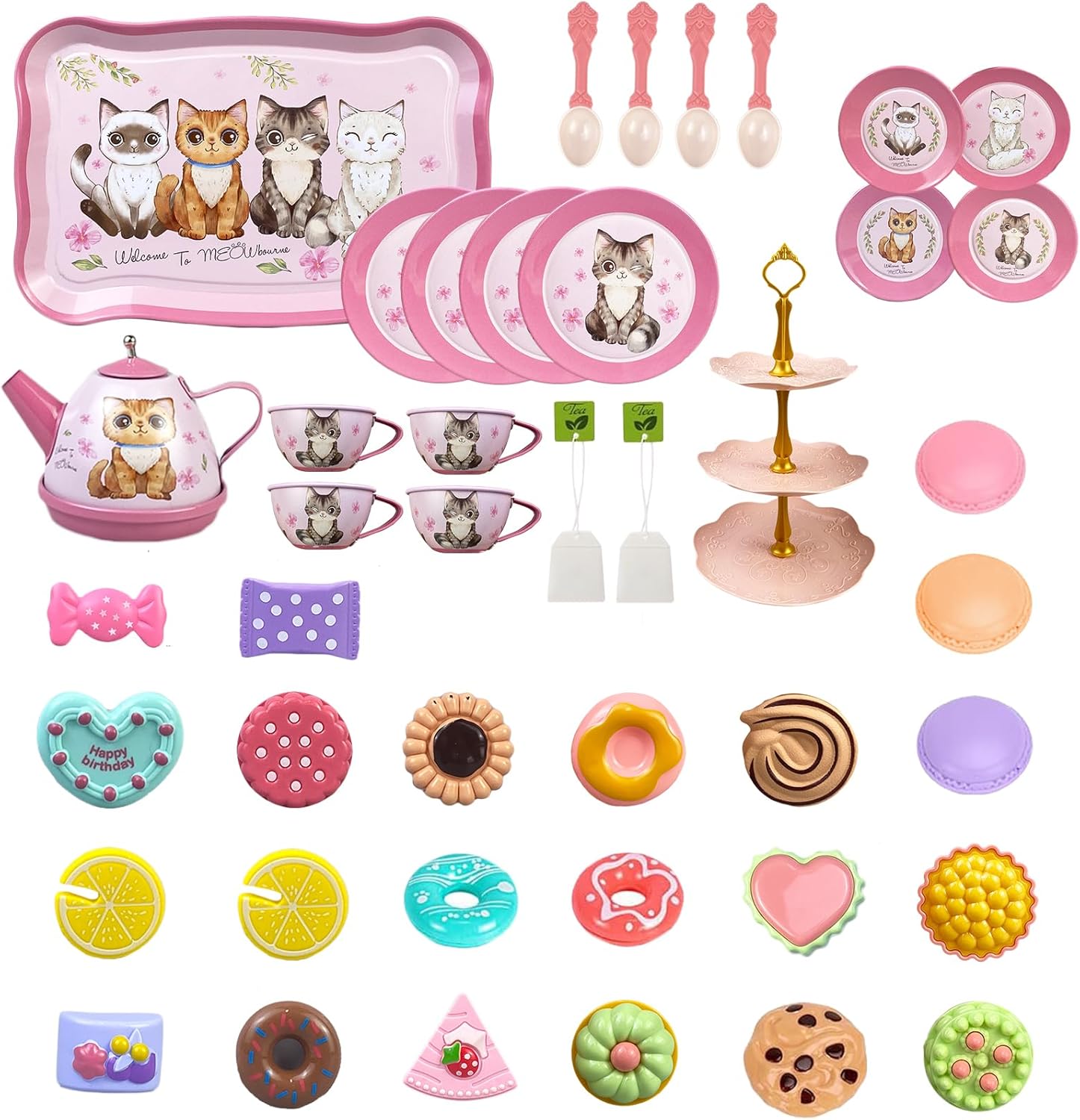 Adorabile set da tè per bambini - Questo set da 44 pezzi include 1 vassoio, 1 teiera, 4 tazze da tè, 4 sottobicchieri, 4 piatti, 4 cucchiai, 1 supporto per cupcake a 3 livelli, 2 bustine di tè, 2 fette di limone, 3 biscotti macaron, 3 ciambelle, 8 dessert. 4 biscotti. 2 caramelle e 1 astuccio per un tè senza fine - Gioco di ruolo a tema per il tuo bambino. DESIGN SICURO E DUREVOLE: questo set da tè per bambini premium XWGKLN è realizzato in plastica ABS innocua, non tossica, durevole e robusta che non si romperà nemmeno dopo molteplici utilizzi. I genitori possono essere certi che i loro figli potranno dare libero sfogo alla loro immaginazione senza preoccuparsi della sicurezza. Promuove l'interazione - Attraverso il gioco di ruolo nel kit teiera, i bambini possono simulare situazioni sociali e imparare a interagire, condividere e collaborare con gli altri. Questo tipo di gioco è particolarmente adatto per giocare con fratelli, genitori o amici, il che può migliorare le abilità sociali e l'espressione emotiva dei bambini. Educazione e divertimento: questo set da tè è più di un semplice giocattolo, è uno strumento educativo che aiuta i bambini a imparare e svilupparsi in modo divertente. Attività come riempire d'acqua le tazze e posizionare piccoli dolcetti non solo allenano la coordinazione occhio-mano del tuo bambino, ma gli consentono anche di apprendere nuove abilità simulando scenari di vita reale. Regalo di Natale ideale: è un regalo ideale per ragazze dai 3 agli 8 anni, adatto per feste di compleanno, festa dei bambini, Natale, Halloween, Ringraziamento e varie altre festività. Il servizio da tè si nasconde in una bellissima confezione regalo, non è solo un regalo, è tutta una questione di abito da tè che porta pieno di amore e benedizione.