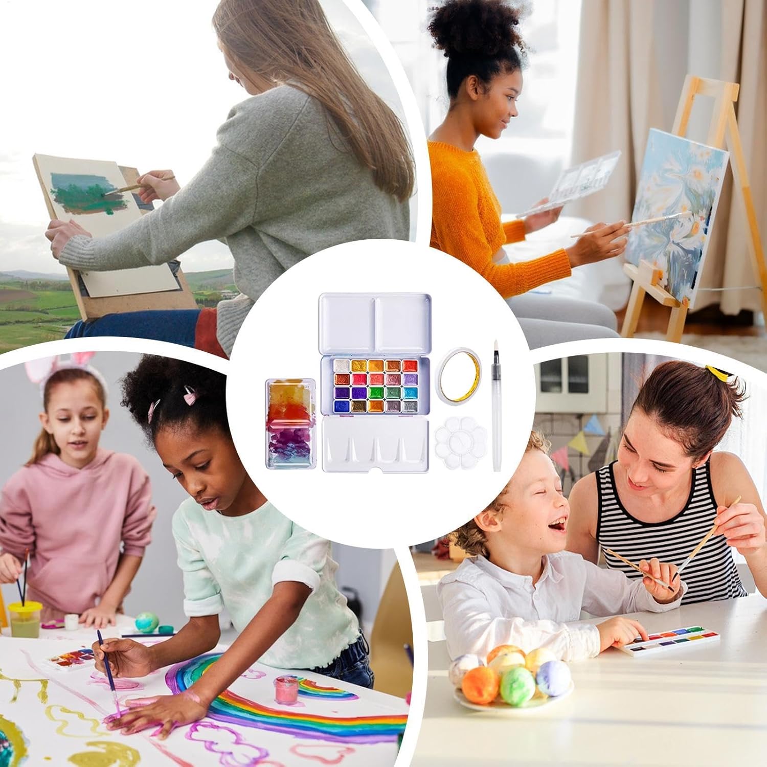 Materiale avanzato: con materiale di alta qualità, il nostro set di colori ad acquerello offre fluidità e adesione migliorate per un'esperienza di pittura fluida. Crea opere d'arte impermeabili e resistenti allo sbiadimento con colori vivaci e duraturi. Utilizzo senza sforzo: ottieni una distribuzione uniforme dei pigmenti, un'elevata trasparenza e una facile miscelazione, facendo scorrere la pittura senza intoppi con il nostro set di colori ad acquerello per artisti. Design leggero: migliora la tua esperienza artistica con questo set di colori ad acquerello, caratterizzato da un design portatile e compatto. Perfetto per creare opere d'arte sempre e ovunque senza occupare troppo spazio. Ampiamente usato: il nostro set di colori ad acquerello ispira ispirazione in qualsiasi luogo, come vetro, pareti, tela, ceramica e altro ancora. Ideale per principianti, appassionati di pittura e artisti per creare splendide opere d'arte. Regalo pratico: è un regalo perfettamente pratico e creativo per compleanni e vacanze, ideale per la famiglia e gli amici che apprezzano l'espressione artistica