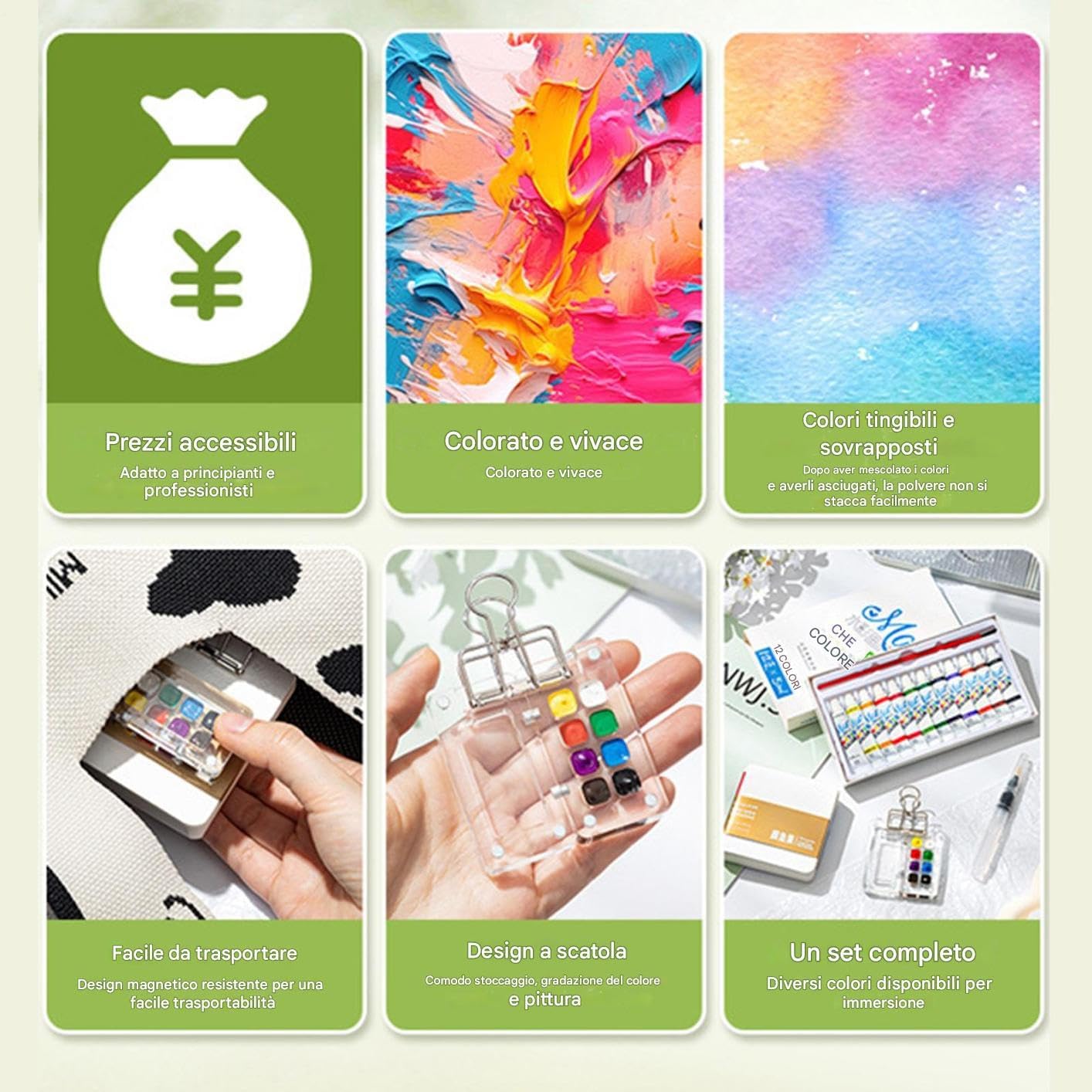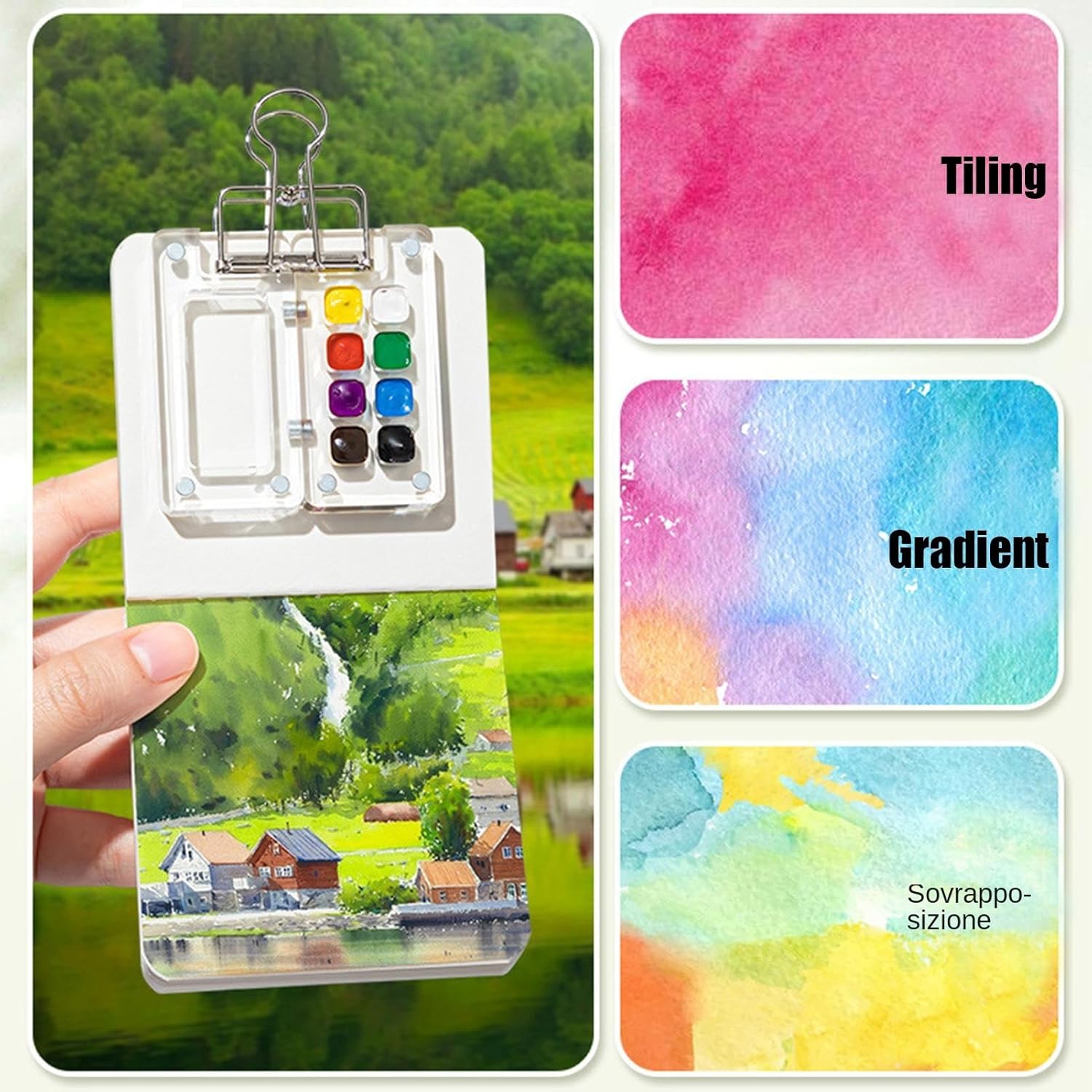 Regalo premuroso: questo set da viaggio per acquerelli Pocket Artist è molto leggero e portatile, non occupa spazio e puoi usarlo sempre e ovunque Kit di ispirazione artistica: migliora le tue abilità pittoriche e libera la tua creatività con questo set di acquerelli per l'arte all'aperto, rendendolo il tuo compagno di pittura creativa indispensabile Costruzione robusta: migliora la tua arte ad con il nostro set da viaggio per Pocket Artist. Realizzato meticolosamente con ottimi materiali come la tavolozza degli acquerelli acrilici e il quaderno per schizzi in carta di qualità. Le clip in metallo proteggono il tuo lavoro mentre i pennelli per realizzati con cura garantiscono la precisione, permettendoti di mostrare la tua eccellenza artistica Applicazione adatta: mostra il tuo talento artistico e sperimenta varie tecniche di pittura utilizzando questo comodo set da viaggio per acquerelli Pocket Artist. Ideale per tutti i livelli di abilità e per ogni occasione Perfezione portatile: mostra la tua creatività con il set da viaggio per acquerelli Pocket Artist. Il kit di pittura completo, dotato di tavolozza, album da disegno e clip in metallo, consente di realizzare opere d'arte complesse ovunque colpisca l'ispirazione