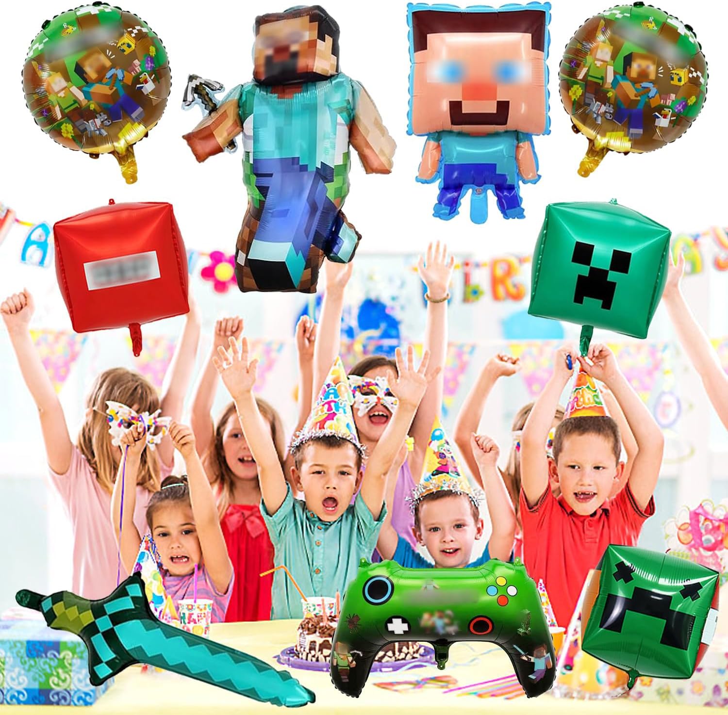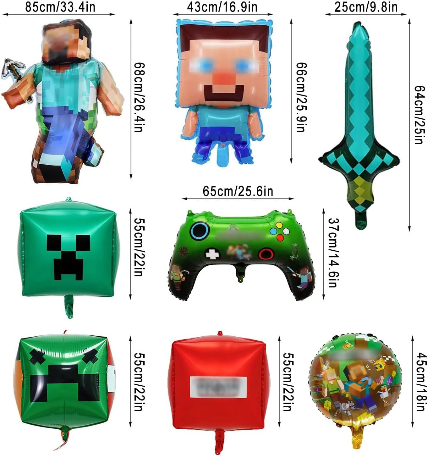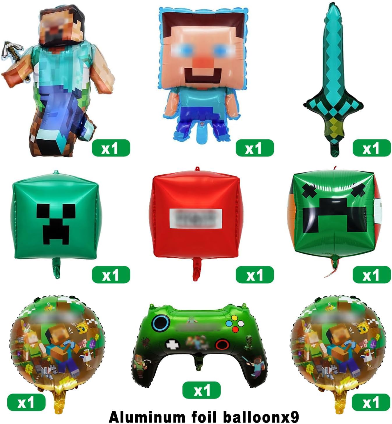【Set Decorazione Completo per Ragazzi】Il kit include: 2 palloncini foil grandi a tema bambino, 3 palloncini foil quadrati, 2 palloncini foil rotondi, 1 palloncino foil spada, 1 palloncino foil videogioco, 10 metri di nastro e nastro biadesivo. Tutto in un'unica confezione per decorazioni festive semplici e immediate! 【Materiale Ecologico e di Alta Qualità】Realizzato in robusto alluminio non tossico. Gonfiabile con aria o elio per un effetto galleggiante - perfetto per feste sostenibili senza compromessi sulla sicurezza. 【Montaggio e Applicazione Facili】Comprende 10 metri di nastri per palloncini e nastro biadesivo extra resistente. Si applica facilmente alle pareti o si appende - risparmia tempo e garantisce un risultato professionale con zero sforzi. 【Design Unico con Tema Gaming】Colori vivaci e realistici motivi pixelati con popolari personaggi minatori creano un'autentica atmosfera da gaming. Entusiasmerà i piccoli giocatori e renderà ogni festa un evento indimenticabile! 【Utilizzo Polivalente】Perfetto per feste di compleanno, party a tema gaming, eventi scolastici o celebrazioni all'aperto. Trasforma qualsiasi spazio in un paradiso di gioco e crea momenti indimenticabili - l'ideale per tutti i giovani appassionati di videogiochi!