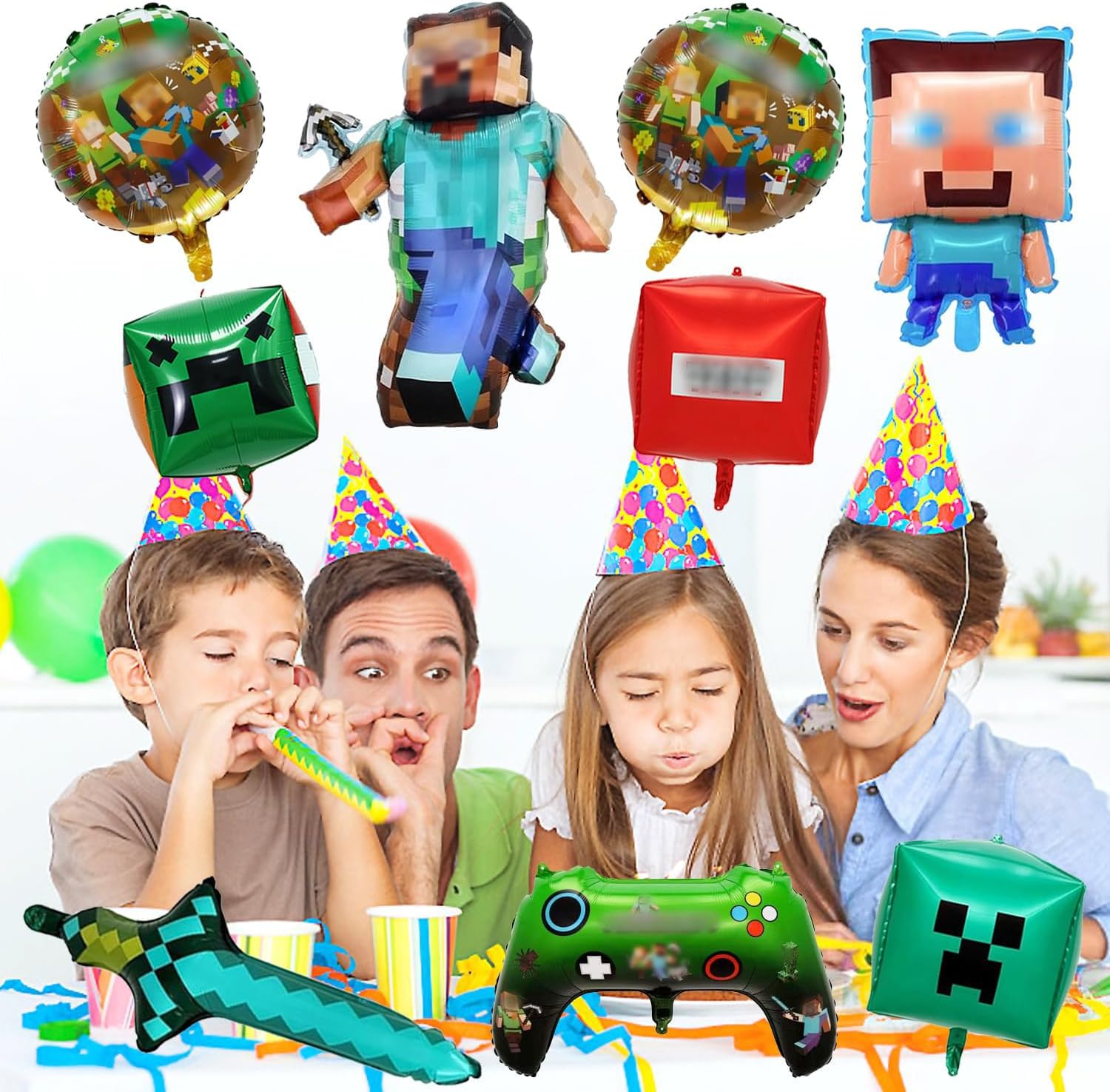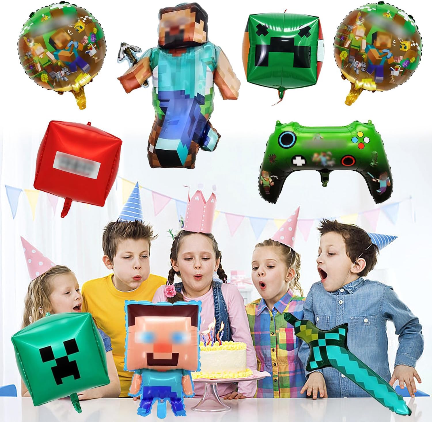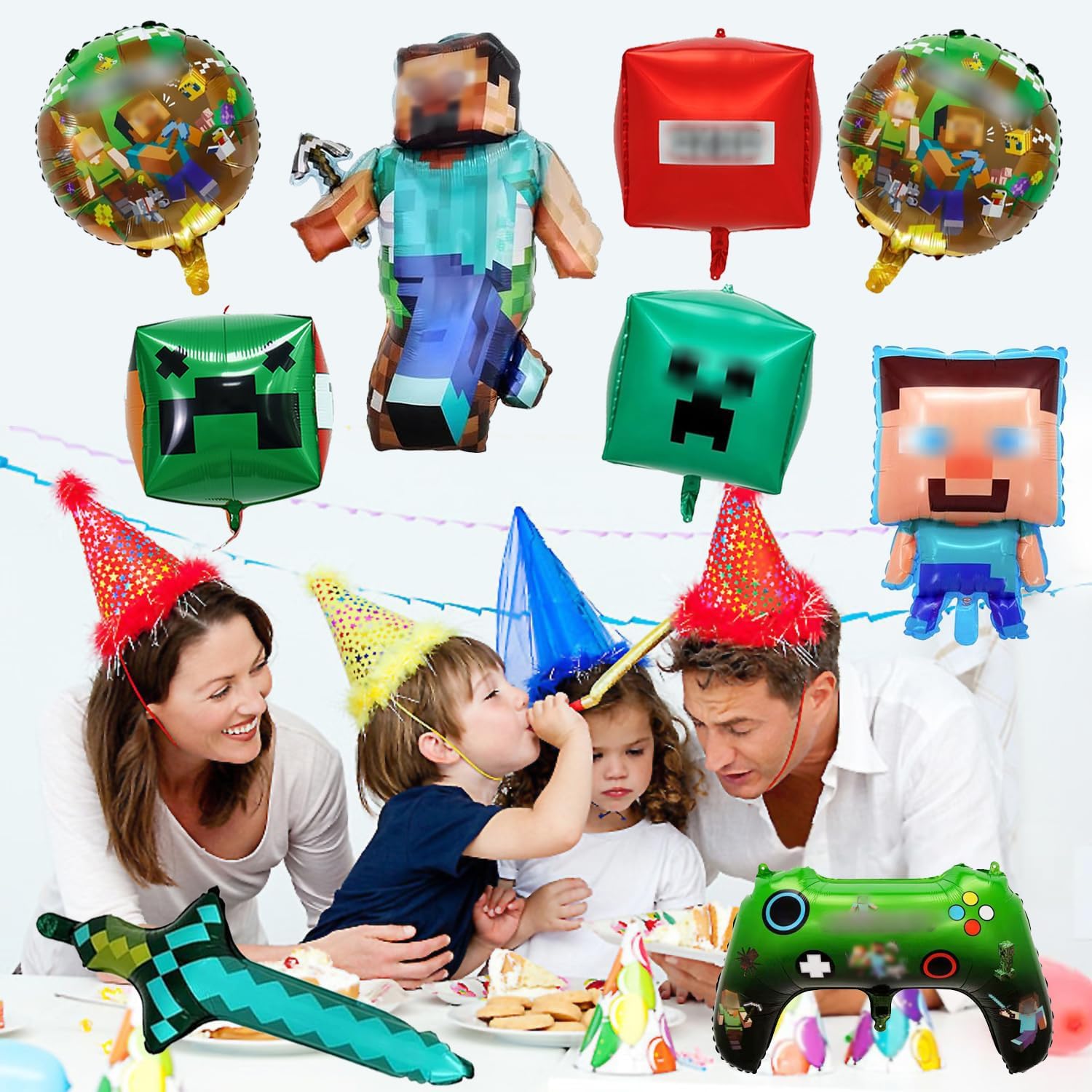 【Set Decorazione Completo per Ragazzi】Il kit include: 2 palloncini foil grandi a tema bambino, 3 palloncini foil quadrati, 2 palloncini foil rotondi, 1 palloncino foil spada, 1 palloncino foil videogioco, 10 metri di nastro e nastro biadesivo. Tutto in un'unica confezione per decorazioni festive semplici e immediate! 【Materiale Ecologico e di Alta Qualità】Realizzato in robusto alluminio non tossico. Gonfiabile con aria o elio per un effetto galleggiante - perfetto per feste sostenibili senza compromessi sulla sicurezza. 【Montaggio e Applicazione Facili】Comprende 10 metri di nastri per palloncini e nastro biadesivo extra resistente. Si applica facilmente alle pareti o si appende - risparmia tempo e garantisce un risultato professionale con zero sforzi. 【Design Unico con Tema Gaming】Colori vivaci e realistici motivi pixelati con popolari personaggi minatori creano un'autentica atmosfera da gaming. Entusiasmerà i piccoli giocatori e renderà ogni festa un evento indimenticabile! 【Utilizzo Polivalente】Perfetto per feste di compleanno, party a tema gaming, eventi scolastici o celebrazioni all'aperto. Trasforma qualsiasi spazio in un paradiso di gioco e crea momenti indimenticabili - l'ideale per tutti i giovani appassionati di videogiochi!