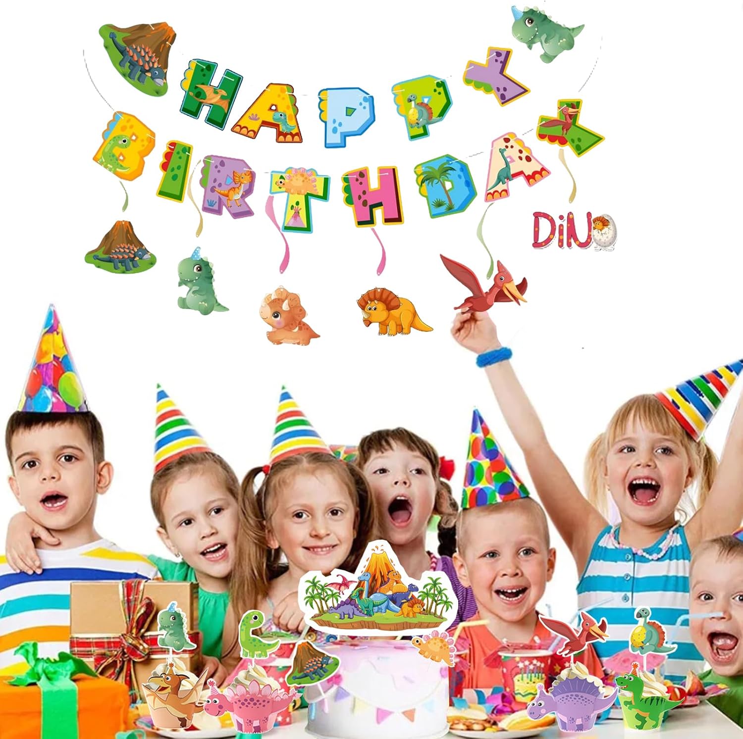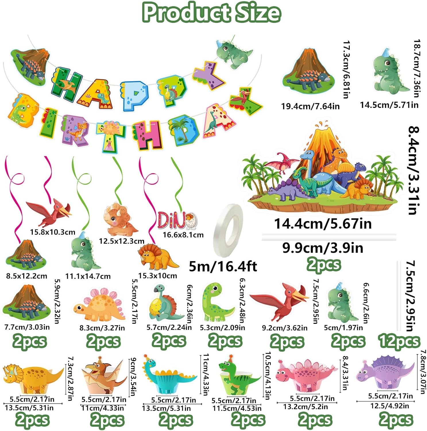 Lista di imballaggio: Riceverai 1 set di compleanno decorativo Dino, composto da 1 banner Dino Happy Birthday, 1 ciondolo a spirale Dino, 1 inserto grande per cake pop Dino, 12 inserti piccoli per cake pop Dino, 12 pirottini per muffin Dino (senza base). Il set di decorazioni perfetto per la festa di compleanno dei tuoi bambini dinosauri. Materiale di alta qualità: il set di decorazioni per il compleanno dei dinosauri è realizzato in cartone bianco di alta qualità, colori vivaci, non facile da sbiadire, duro e spesso, perfetto per decorare feste di dinosauri e torte di dinosauri. Facile da montare: il banner e la spirale sospesa sono pretagliati, basta infilarli e appendere la decorazione con facilità. La decorazione dei muffin dinosauri è facile da montare infilando prima la parte anteriore e posteriore e poi attaccando il resto degli accessori per la testa o la coda. (Questi sono pacchetti senza fondo solo per la decorazione.) Design unico: una varietà di graziosi elementi con motivi di dinosauri per portare una diversa sensazione di esperienza alla tua festa, puoi usarlo per decorare riunioni di feste o soggiorno in camera da letto per creare una sensazione coinvolgente. Lascia ricordi belli e profondi per i tuoi amici e familiari che partecipano alla festa. Uso versatile: il set di dinosauri per decorazioni di compleanno è perfetto per feste di compleanno, feste di dinosauri, feste sul vulcano, baby shower, picnic e altre celebrazioni.