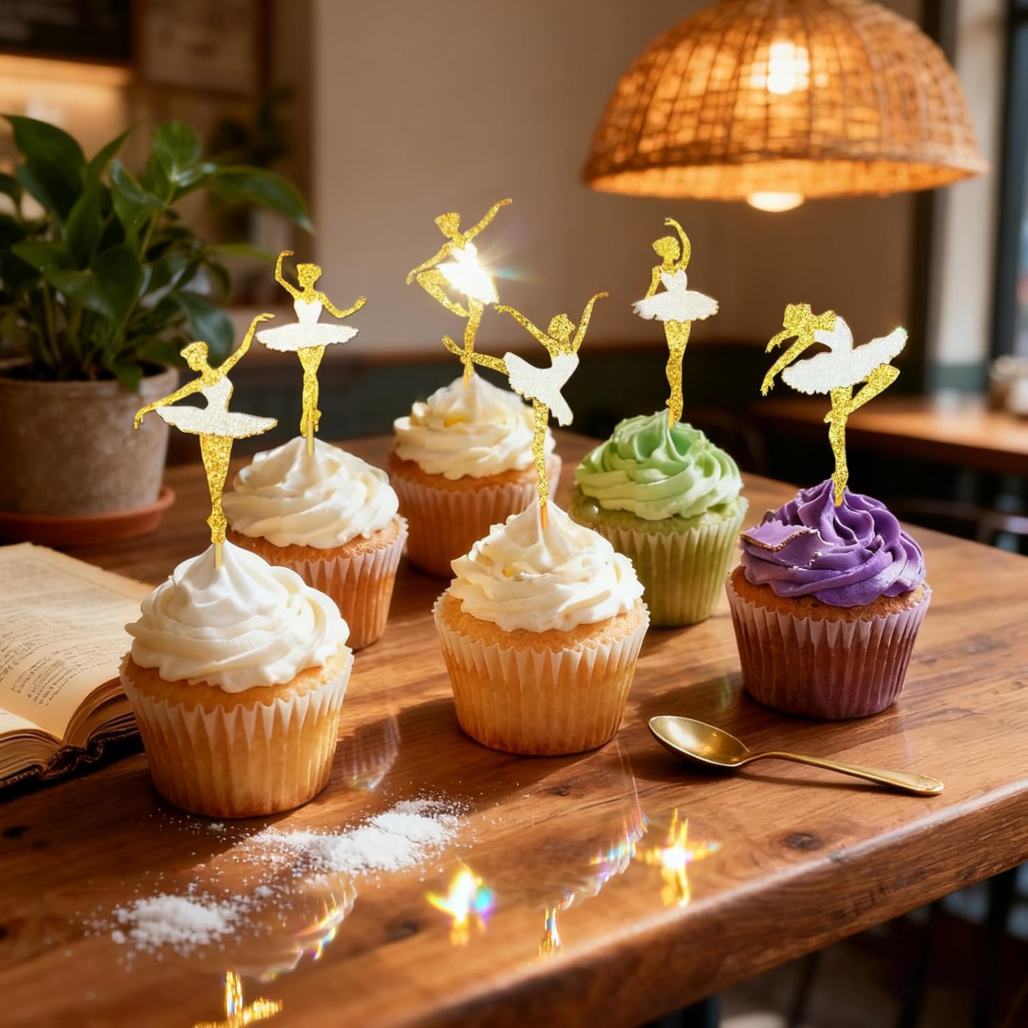 🌟【Design Ballet con Effetto Glitter】Questo set di decorazioni cupcake ballet con topper rosa e oro presenta un effetto glitter e polarizzazione, creando un'atmosfera elegante per le feste a tema danza, compleanni e matrimoni. 🍰【Materiali di Alta Qualità】Le decorazioni sono realizzate con bastoncini di bambù alimentari e cartone non tossico di alta qualità, sicuri e durevoli, perfetti per eventi familiari e per bambini. ⚡【Facile da Usare】I 24 toppers per cupcake sono già pre-assemblati, consentendo un’installazione rapida e senza stress, perfetto per i pianificatori di feste impegnati. 🎉【Uso Versatile】Queste decorazioni sono ideali non solo per cupcake, ma anche per torte, gelati, frutta e snack, perfette per eventi come compleanni, feste a tema danza e matrimoni. 🎁【Imballaggio Elegante da Regalo】Il set include 24 splendidi topper e 2 picker "Happy Birthday" in un elegante imballaggio – un'idea regalo perfetta per gli organizzatori di feste e gli amanti delle decorazioni.