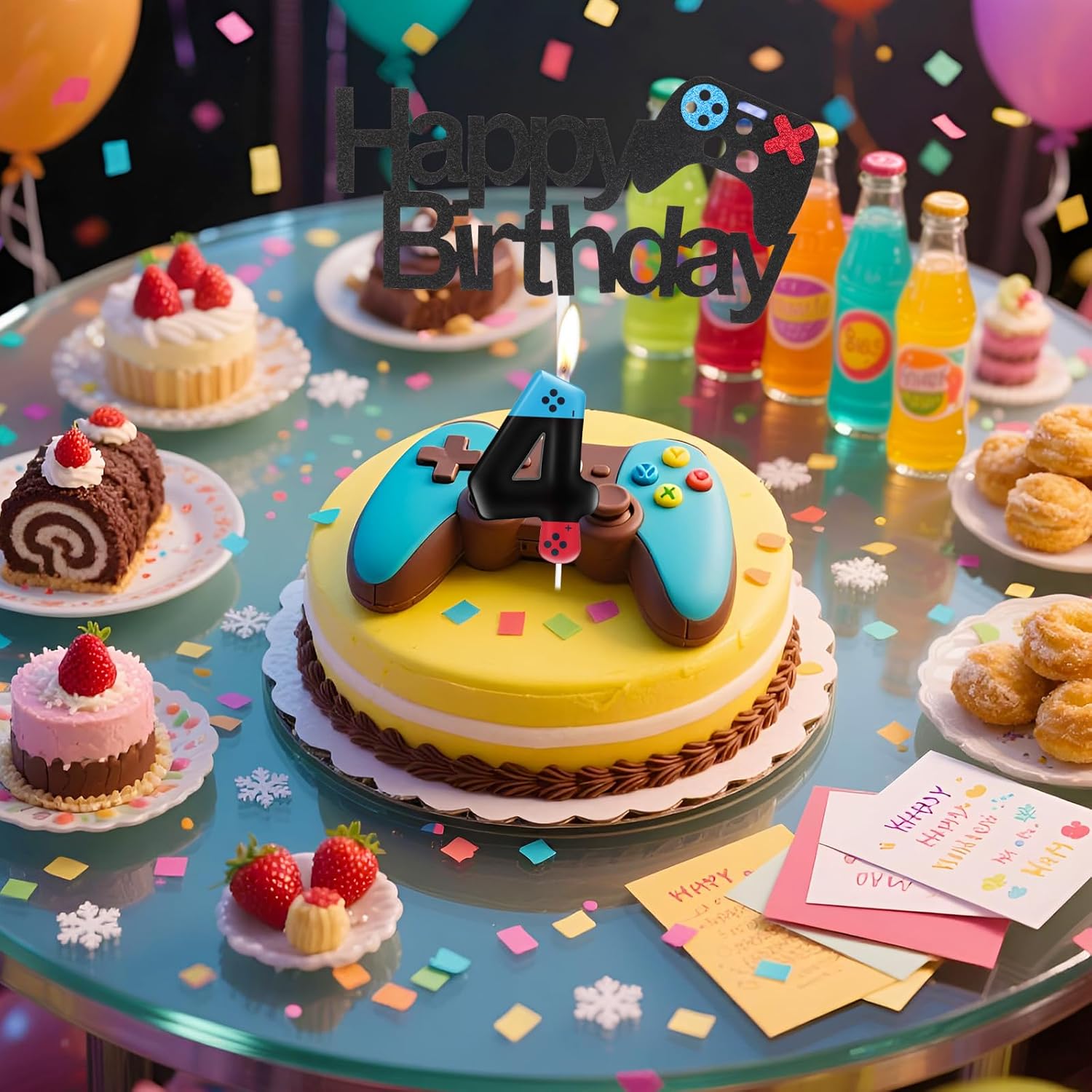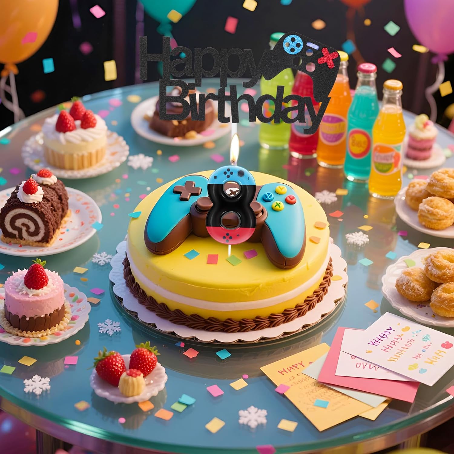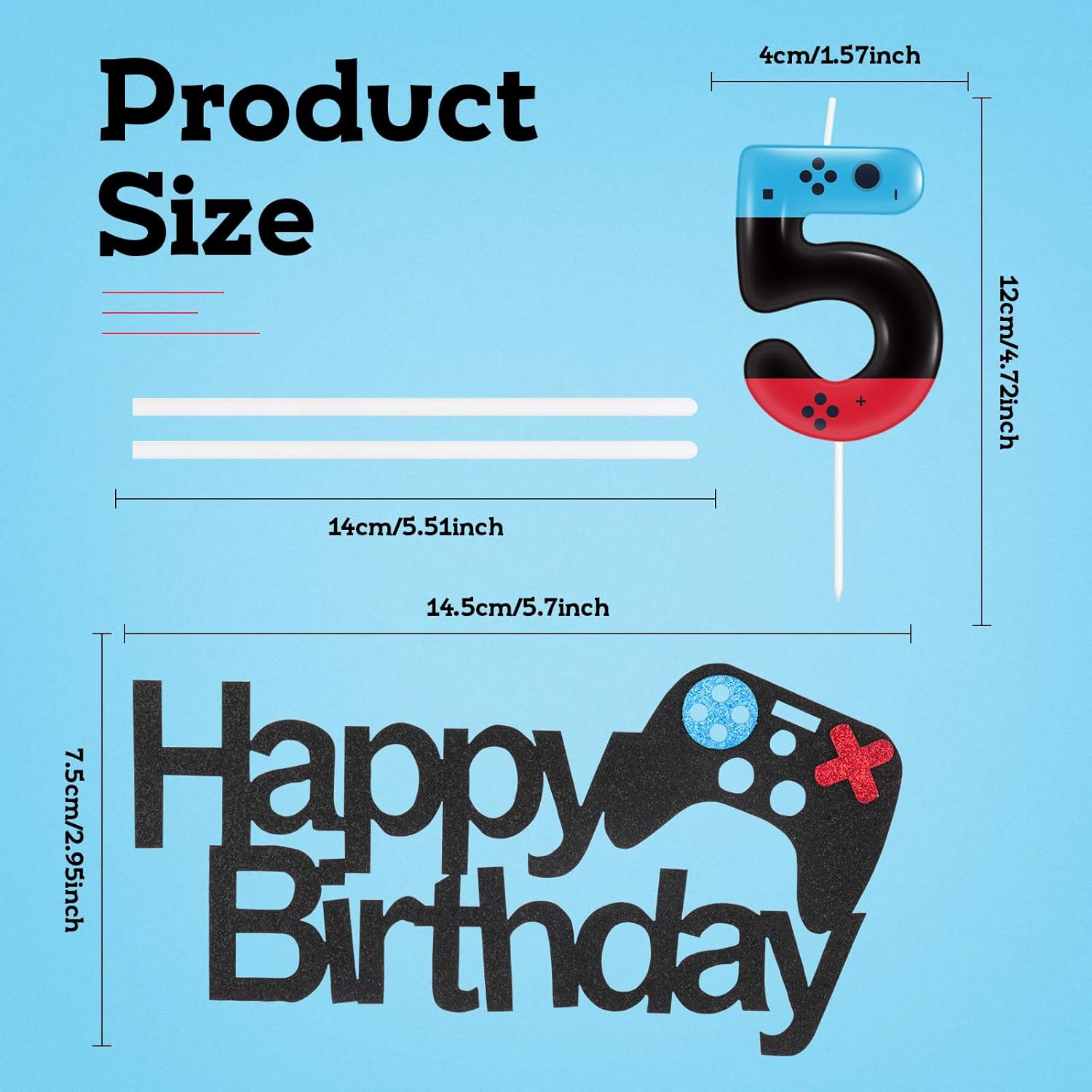 Il set di decorazioni per torta di compleanno con controller di gioco include: riceverai 1 candela con numero di calcio 10 e 1 controller di gioco "Happy Birthday". Design controller di gioco con colori blu, rosso e nero, sembra molto carino e lucido. Inserirlo sulla torta è molto accattivante. Più adatto come articolo per feste a tema gioco per ragazze e ragazzi, dimensioni adeguate come candele decorazione per torta per la maggior parte dei cupcake di compleanno e torta nuziale. Materiale e dimensioni delle decorazioni per torte: candele controller di gioco e topper per torta realizzati in materiale di alta qualità, stuzzicadenti per uso alimentare, dimensioni della candela numerica di gioco è di circa 11 cm (il corpo della candela è di circa 6 cm di lunghezza, la larghezza della decorazione per torta con scritta "Happy Birthday" è di circa 14 cm, l'altezza è di circa 7,5 cm. Perfetto per video a tema video Decorazioni per feste. Decorazioni per torte con controller di gioco: decorazione per torta con controller di gioco facile da inserire nella torta. Le candele per controller di gioco e le decorazioni per torte possono essere utilizzate insieme o separatamente. Dopo aver utilizzato le decorazioni per torta di compleanno. Possono essere facilmente conservati e riutilizzati per il prossimo utilizzo senza preoccuparsi che lei si rovesci o cada. Decorazioni per feste a tema videogioco: fantastiche decorazioni per torte di compleanno per molte occasioni, adatte per torte di compleanno, decorazioni per feste di compleanno, decorazioni da forno, dettagli glitterati aggiungono ulteriore fascino alla torta di compleanno e sono amati da tutti. Decorazioni perfette per il 10° compleanno per ragazzo e ragazza: set di candele da gioco personalizzate, non solo ideali per decorare torte e ciotole di frutta e feste a tema gioco, ma anche giocattoli per bambini o decorazioni per la casa. Sono il regalo preferito per i più piccoli o gli adulti entusiasti e nostici.