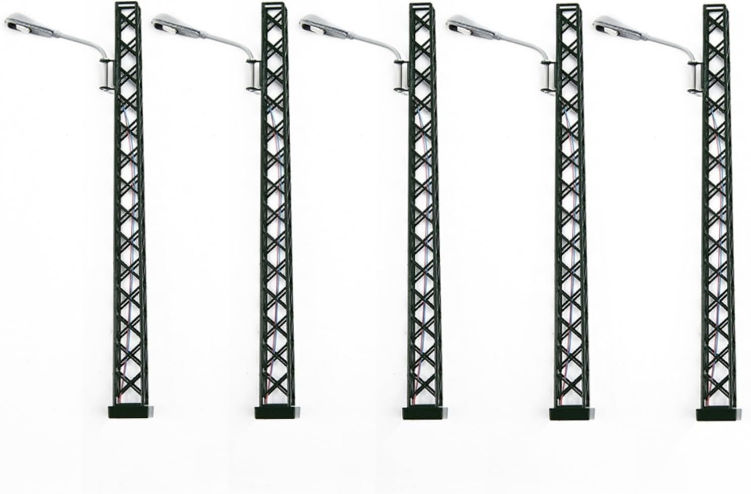 Luci da parete a LED modello lampioni: ogni luce funziona a una tensione di 3 V (solo CC) e ha una corrente di 20 mA. Resistori compatibili sono forniti per l'uso con 12V o 16V DC. La dimensione del lampione può essere controllata dalle foto fornite. È adatto per modelli OO / HO. Queste lampade sono dotate di fili e LED e possono essere facilmente illuminate. Disponibile nelle opzioni di colore verde bottiglia o nero. La confezione include 10 lampade e 10 resistenze.
