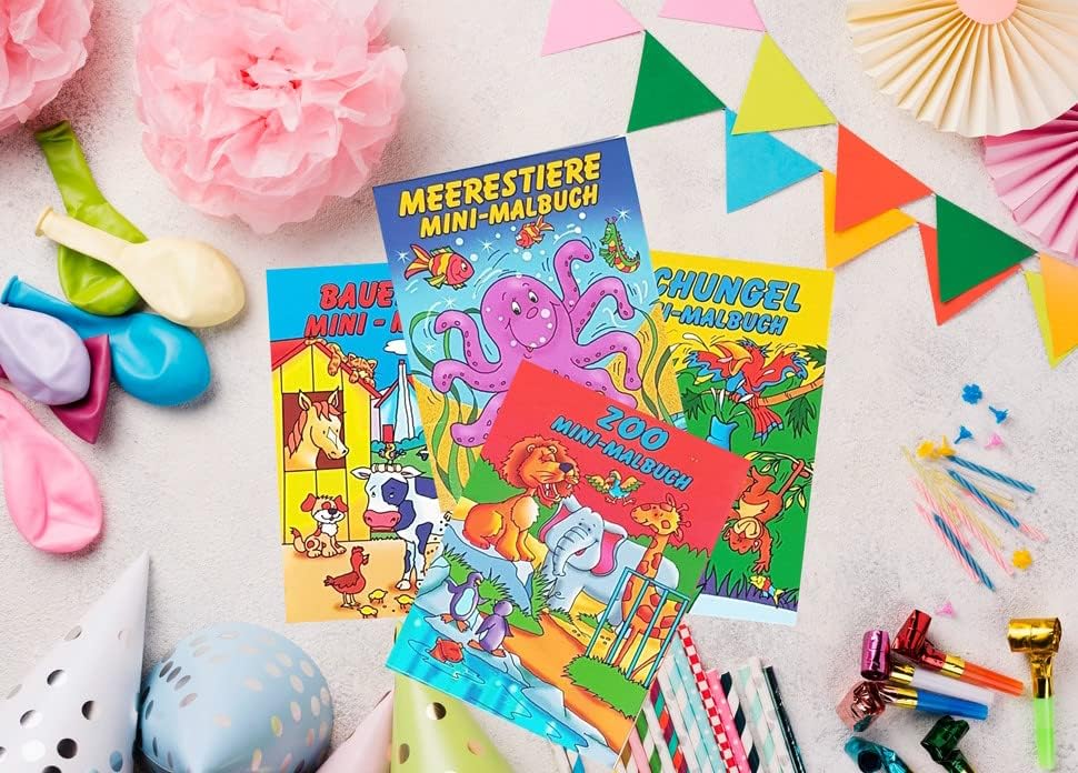 🎉10 set di libri da colorare per bambini con 10 confezioni di pastelli, colori allegri per feste di compleanno, ristoranti, feste per bambini, bomboniere, compleanni, attività per bambini, casa, scuola, matrimonio. 🎉Una scatola di pastelli è composta da 6 mini pastelli, confezionati in una piccola e pratica scatola. Lunghezza di una matita colorata: 8,5 cm. 6 colori allegri per scatola. Un totale di 60 mini matite colorate 🎉Quattro temi principali dei libri da colorare per bambini: giungla, fattoria, vita marina, zoo e matrimonio, con tante immagini divertenti, belle e a misura di bambino da colorare. Dimensioni di un libretto: ca. 17 x 12 cm, 16 pagine 🎉La fornitura comprende 10 mini libri da colorare (2 o 3 libri per motivo). Ideale come regalo per le feste, regalo per bambini, bomboniere, idea di attività per i bambini a casa, doposcuola, asilo nido, regalino per le feste, premio della lotteria per bambini alle feste per bambini, compleanni dei bambini, feste di compleanno, matrimoni 🎉Fornitura: 10 mini libri da colorare per bambini e 10 confezioni di mini matite colorate. Un'ottima idea per tenere occupati e divertiti i bambini durante un matrimonio, una celebrazione o un ristorante. Questi sacchetti da festa per bambini possono essere utilizzati anche come materiale per la scuola materna. Adatto a bambini dai 3 anni in su.