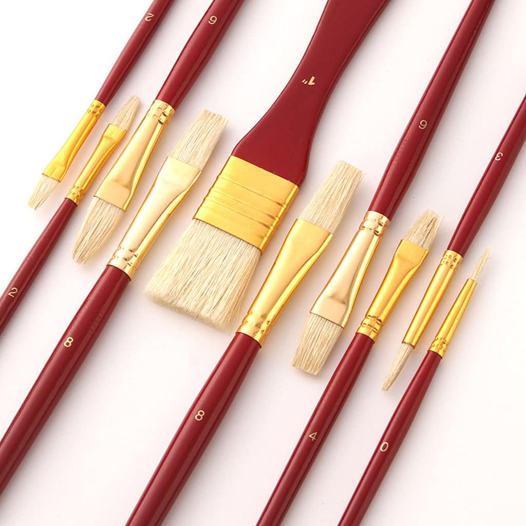 Un set di pennelli con 10 pennelli, per soddisfare le esigenze di uso quotidiano Manici in legno dal design ergonomico, appositamente ispessiti per una migliore presa e maneggevolezza Ideale per fauna selvatica, ritrattistica, per bambole, illustrazioni, miniature, modellini di navi e aeroplani, arti e mestieri, roccia, pelle, gesso e ceramica, o pittura per corpo, unghie e viso Le setole dal design professionale tengono saldamente la vernice. Previene la perdita di capelli e la perdita di capelli Punta morbida e a pennello, disponibile per dipingere su tutti i tipi di superficie. Tela allungata, legno, tessuto, carta, corpo umano, chiodi, può essere utilizzata per bambini, principianti, artisti o qualsiasi amante dell'arte