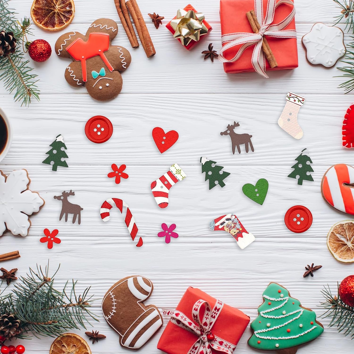 Decorazione per la tavola di Natale in legno: la decorazione natalizia LYNSAN è composta da 9 adorabili disegni, 100 pezzi in totale. Queste decorazioni per feste offrono molte possibilità per la tua festa di Natale e ti regalano una scintillante sensazione natalizia. LEGNO PREMIUM: i nostri coriandoli natalizi sono realizzati in legno pregiato. Ogni pezzo di legno è stato tagliato utilizzando la tecnologia laser, è pulito e privo di rasature. La resistenza alla frammentazione è eccellente e la struttura è robusta e durevole. La qualità di stampa è chiara e dettagliata. Design creativo: le decorazioni natalizie sono disponibili in colori classici come rosso, bianco e verde. I 9 design unici includono neve, bastoncini di zucchero, renne, guanti, bottoni, fiori, cuori, alberi di Natale, calze di Natale e altro ancora. Cospargili sulla tua tavola per aggiungere un tocco di brillantezza alla tua festa di Capodanno. Artigianato fai-da-te: le decorazioni natalizie possono essere utilizzate come gioielli per progetti fai-da-te, biglietti di auguri, confezioni regalo o altre occasioni. Combina questi coriandoli natalizi e regalali ai tuoi cari. Rimarrai sicuramente sorpreso e deliziato. Uso versatile: questi adorabili coriandoli da tavola natalizi in legno multicolore possono essere usati come decorazione per la tua tavola di Natale, torte, piatti. Con un filo questi trucioli di legno possono essere utilizzati anche come decorazioni per il vostro albero di Natale. Lascia che le decorazioni in legno ti rendano ancora più divertente per Natale e Capodanno.