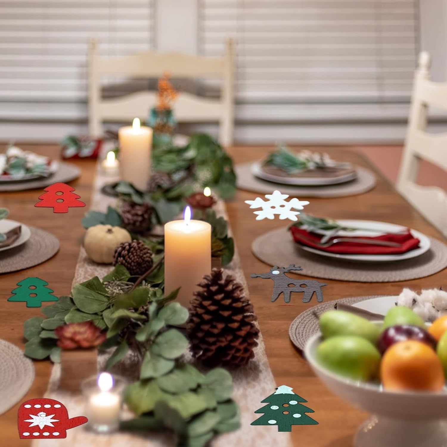 Decorazione colorata per la tavola di Natale: i coriandoli natalizi sono composti da 6 disegni diversi, per un totale di 100 pezzi, tra cui grande albero, guanti, renne, fiocchi di neve, piccolo albero. Rendi colorata la festa di Natale con questa bellissima e squisita decorazione in legno e aggiungi un'atmosfera incantevole al tuo evento. Vari stili e colori vivaci, molto adatti come decorazione per la festa di Natale, molto apprezzati dai bambini, possono aggiungere più gioia alla tua festa di Natale. Decorazione bella e raffinata: nei classici colori bianco, rosso e verde, si adatta al tema natalizio e crea un'atmosfera festosa carina e calda. Attaccali con pennelli e piccole decorazioni e goditi un gioioso momento fai-da-te insieme ai tuoi cari. Riutilizzabili: i coriandoli decorativi natalizi sono realizzati in legno di prima qualità, ecologici, non tossici e non facili da rompere, ecologici e possono essere riutilizzati molte volte, superficie liscia, leggera e resistente. È una decorazione essenziale per la decorazione della tavola di Natale. Kit fai-da-te natalizio: i coriandoli decorativi in legno natalizi possono essere usati come decorazioni fai-da-te in legno, adatti per la decorazione domestica quotidiana, decorazioni per la tavola, battesimo, decorazioni per matrimoni. Sono adatti anche per occasioni speciali come compleanni, Natale, Capodanno, feste a tema, ecc. Ti auguro buone vacanze! Ampia applicazione: lascia correre la tua immaginazione e creatività durante la decorazione. Puoi semplicemente lanciarlo in aria o riempire i palloncini di coriandoli e cospargerli sulla scrivania e sul tavolo per decorare. I nostri coriandoli glitter per i regali di Natale sono convenienti e riutilizzabili.