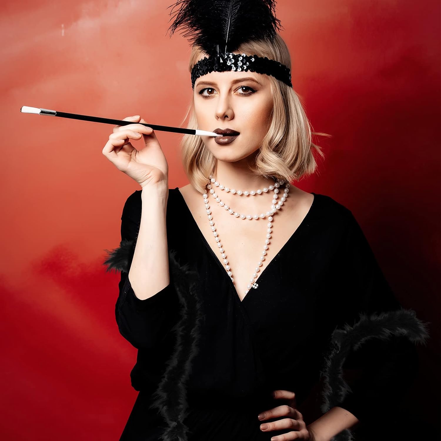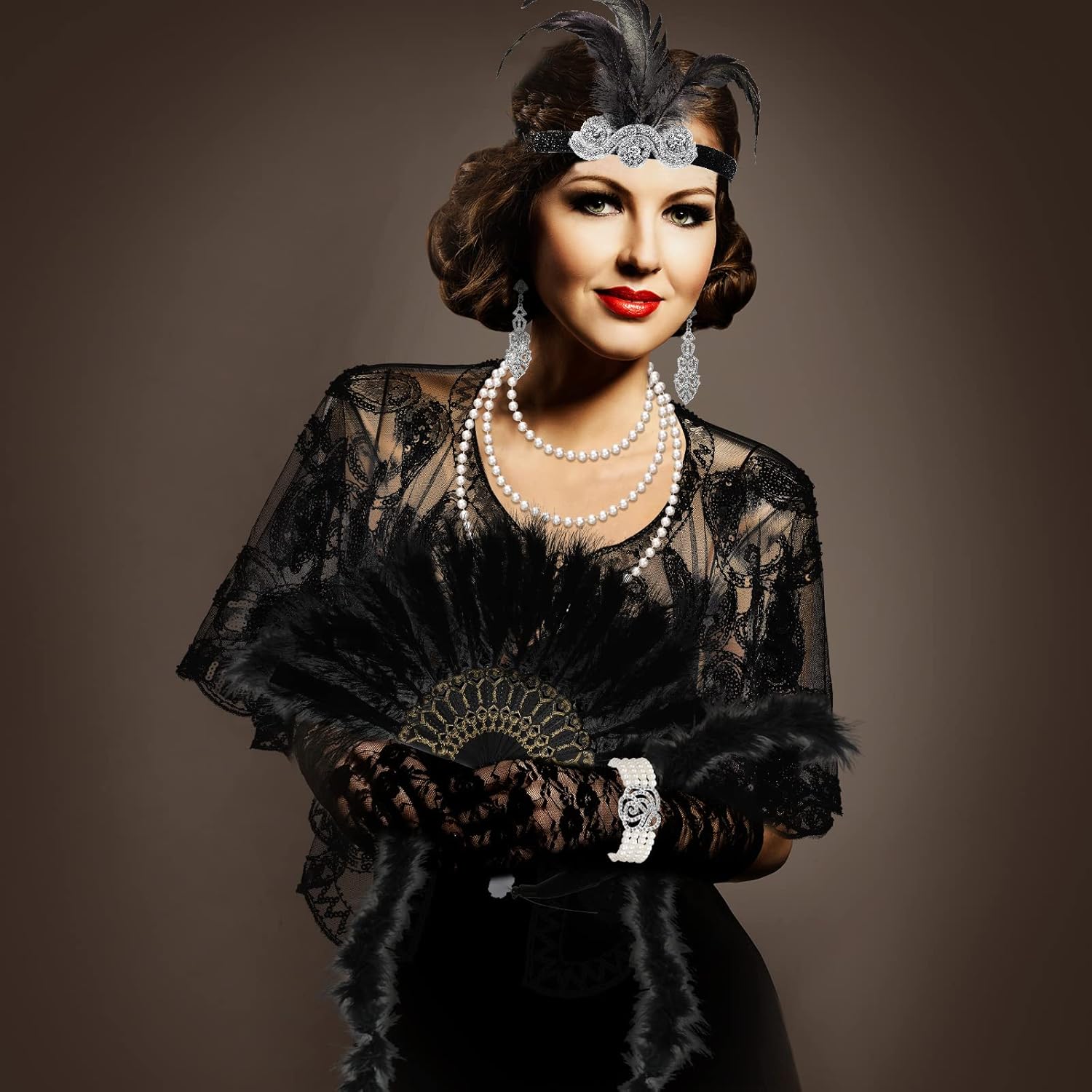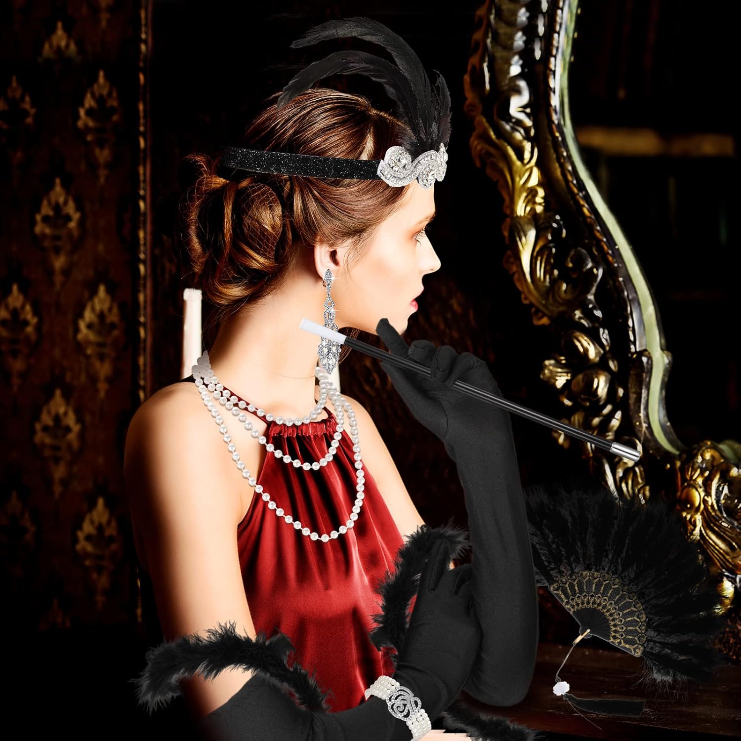Caratteristiche: Materiale di qualità: Tutti gli accessori degli anni '20 sono ben fatti e realizzati a mano con piume di pavone, cristalli, pizzi e strass. Questo set di accessori per costumi degli anni '20 con uno stile retrò ha un effetto più elegante e glamour può essere un regalo squisito per mamma, sorelle, fidanzate, amiche per aiutarle a tornare ai ruggenti anni '20. Ampie applicazioni: Il kit di costume di flapper è perfetto per feste ruggenti degli anni '20, feste danzanti, feste art déco, feste da flapper, Halloween, abiti da club, cocktail party, banchetti, matrimoni, Natale, abiti da compleanno e tutte le altre occasioni a tema retrò. Specifiche: Colore: come mostrato Materiale: piuma, plastica, lega, strass, poliestere La confezione include: 1 x Scialle con paillettes 1 x Sciarpa 1 Paio di collant a rete 1 x Ventaglio di piume 1 Paio di guanti flapper 1 x Fascia per capelli 1 Paio di orecchini flapper 1 x Collana di perle 1 x Braccialetto di perle 1 x Anello di perle 1 x Bastoncino di plastica Nota: Le piume cadranno leggermente e si sbiadiranno leggermente al primo utilizzo. Basta scuotere il ventaglio di piume e pulire con un tovagliolo di carta asciutto. Lavabile in lavatrice, si consiglia il lavaggio a mano, lavare i colori scuri separatamente.