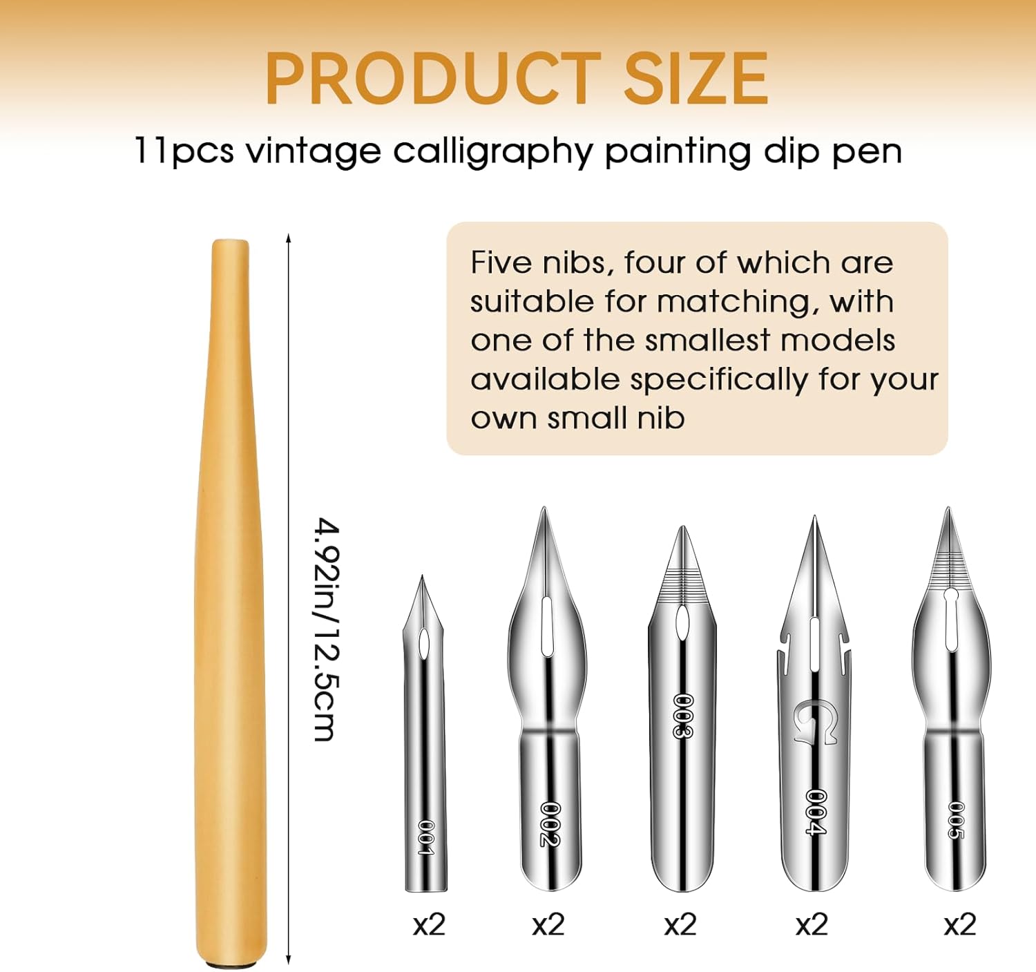 Lista di imballaggio: riceverai 1 portapenne in legno a fumetti e 10 punte per penna a fumetto, di cui le punte hanno un totale di 5 stili, 2 di ogni tipo; diverse punte della penna offrono diversità per le tue creazioni di scrittura, fornendo una buona esperienza. Materiale di alta qualità: il portapenne obliquo per calligrafia è realizzato in legno di alta qualità, che fornisce una presa confortevole; la punta della penna è realizzata in acciaio inossidabile sottile, che può essere utilizzata a lungo, non è facile da arrugginire e scrive senza intoppi. Facile da usare: 5 tipi di pennini, ti forniamo abbastanza pennini, puoi facilmente completare diversi stili di pittura, ma si prega di prestare attenzione alla punta del pennino quando lo si utilizza per evitare graffi o lesioni. Usalo con il supporto in legno incluso, che è sia pratico che può dare pieno gioco al tuo stile artistico. Ottimo regalo: le penne a inchiostro per disegnare non solo possono essere utilizzate da soli, ma possono anche essere utilizzate come un bel regalo per amici, pittori, appassionati di pittura che amano scrivere; sono ideali per creare linee, trame, ecc., e sono anche amichevoli per i principianti. Suggerimenti: si prega di pulirlo con dentifricio e acqua quando lo si utilizza per la prima volta fino a quando l'inchiostro sulla punta della penna non è uniforme. La punta della penna a fumetto in acciaio inossidabile sarà protetta da olio antiruggine. La mancata pulizia può causare un'emissione di inchiostro irregolare.