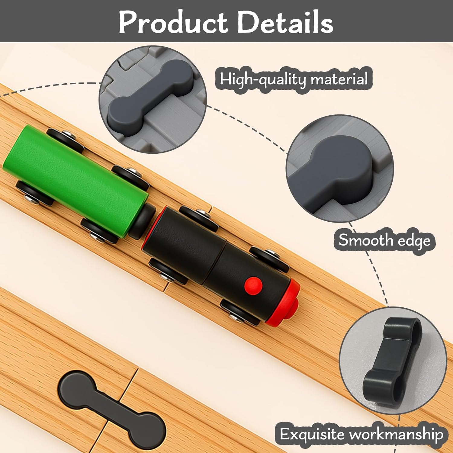 Contenuto della confezione: 12 accessori per ferrovia in legno grigio con dimensioni 3,6 x 0,6 x 1,2 cm. Sono universali per la maggior parte delle guide ferroviarie in legno e consentono di collegare ed estendere senza cuciture le guide ferroviarie. Materiale del prodotto: i nostri adattatori per binari in legno sono realizzati in legno di alta qualità, durevole, resistente ad una certa pressione e offre una connessione affidabile per la tua guida. Facile da usare: i nostri accessori ferroviari sono facili da usare e quindi facili da montare. Grazie alla squisita maestria e alla tecnologia avanzata, assicuri una connessione affidabile e stabilità e ti preoccupi di una piacevole esperienza di gioco. Giochi creativi: i nostri supporti per collegamento ferroviario in legno sono adatti a bambini di tutte le età. Con il nostro connettore di binario, il tuo bambino può dare sfogo alla sua immaginazione e creare la propria ferrovia. Questo promuove la sua creatività e il pensiero costruttivo. Ampiamente utilizzato: i nostri accessori ferroviari sono compatibili con la maggior parte delle guide in legno standard e consentono un collegamento senza cuciture di diverse rotaie. Può essere utilizzato ovunque, sia a casa, all'asilo nido o a scuola. Assicura ore di divertimento di gioco e promuove lo sviluppo della coordinazione occhio-mano.