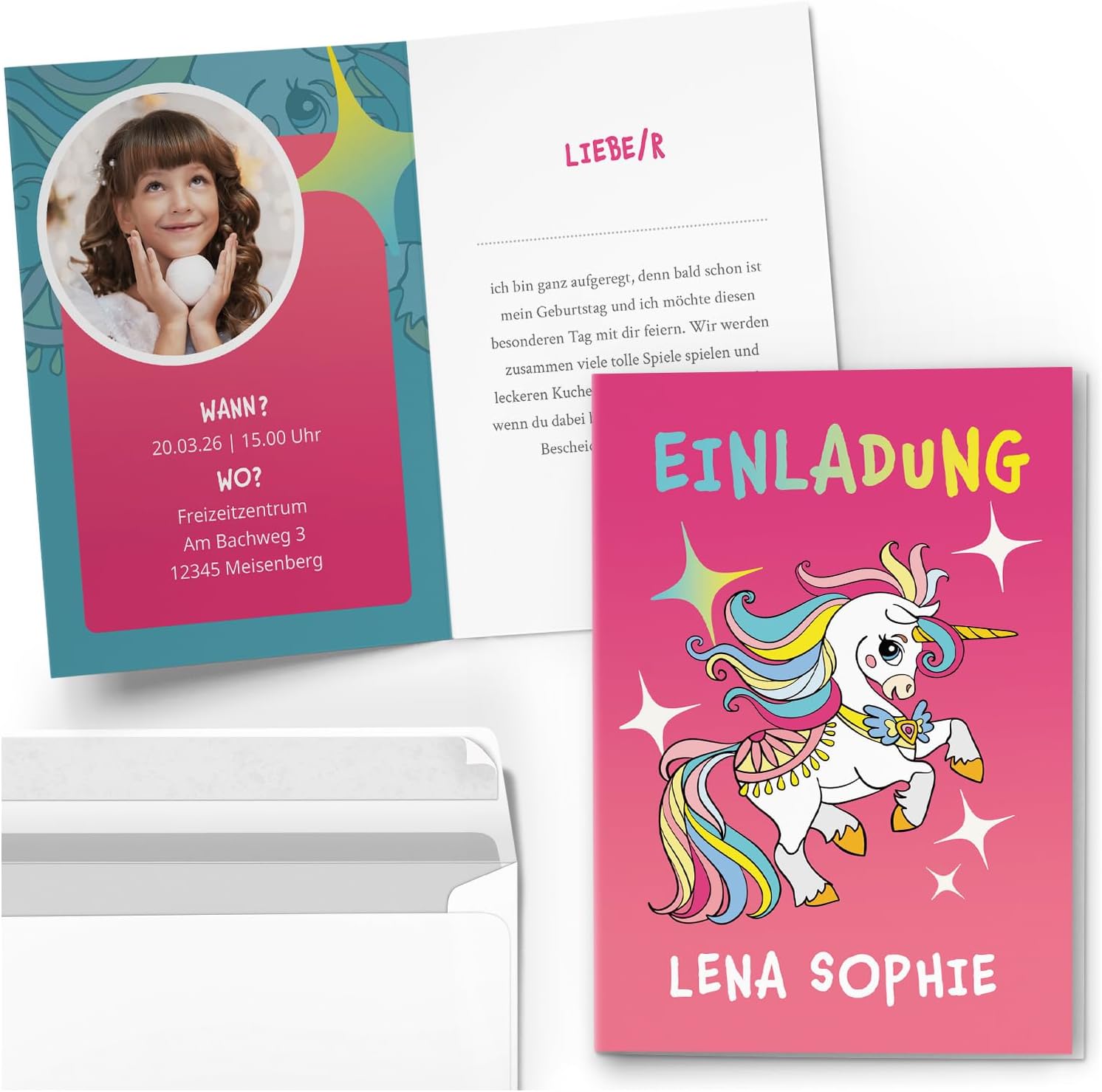 Contenuto: 12 fantastici biglietti d'invito + 12 buste PRATICO: campi prestampati con tutte le informazioni importanti da compilare sul retro. Dimensioni: il biglietto (10,50 cm x 14,80 cm) ha una stampa di immagini di 300 g/m² ed è rivestito con vernice UV. La busta (11,40 x 16,20 cm) è adesiva (con strisce staccabili). Made in Germany: i biglietti e le buste sono stati prodotti in una tipografia tedesca. ALTRO: da noi troverete anche tanti altri motivi come calcio, ballerina, sirena.