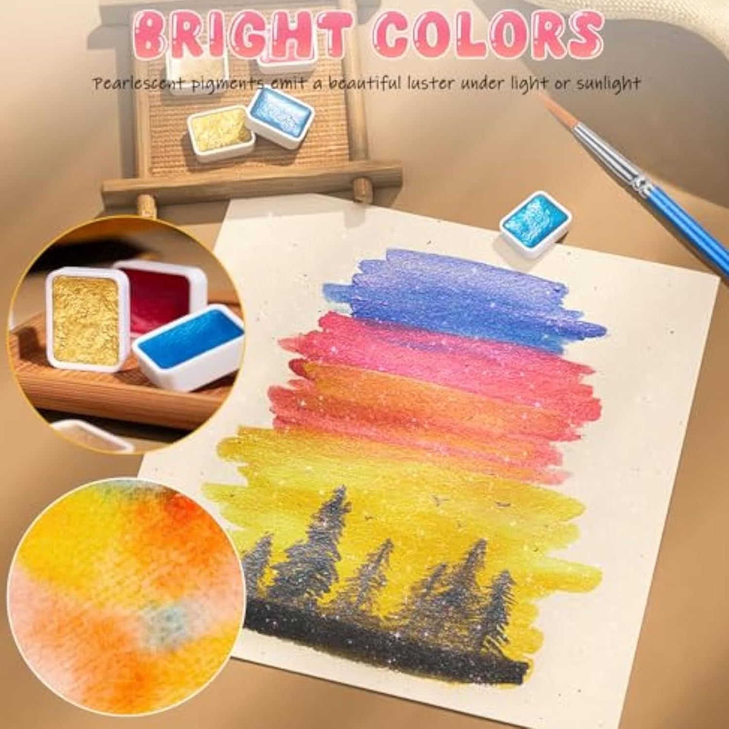 Promuovi il pensiero creativo: stimola la creatività dei bambini con la pittura ad acquerello glitterata che incoraggia la narrazione fantasiosa e aiuta a descrivere il mondo dei sogni nei loro cuori attraverso una vibrante esplorazione artistica Effetto creativo radioso: genera un effetto scintillante con una finitura glitterata abbagliante che consente alle tue creazioni di brillare senza sforzo grazie alla sua formulazione appositamente pressata per eccellenza artistica Ottima Composizione: Composta da pigmenti minerali di mica, la vernice offre eccellenti prestazioni del materiale e rimane sicura per continue applicazioni artistiche nel tempo Comoda attivazione del colore: utilizzare una penna inumidita per attivare facilmente i colori dal blocco, offrendo un approccio efficiente e diretto alla creazione con vernici ad acquerello Meravigliosa scelta regalo: sia per compleanni, festival o altri eventi, questa pittura ad acquerello è una scelta versatile come regalo eccellente per bambini e adulti, ispirando creatività in ogni uso