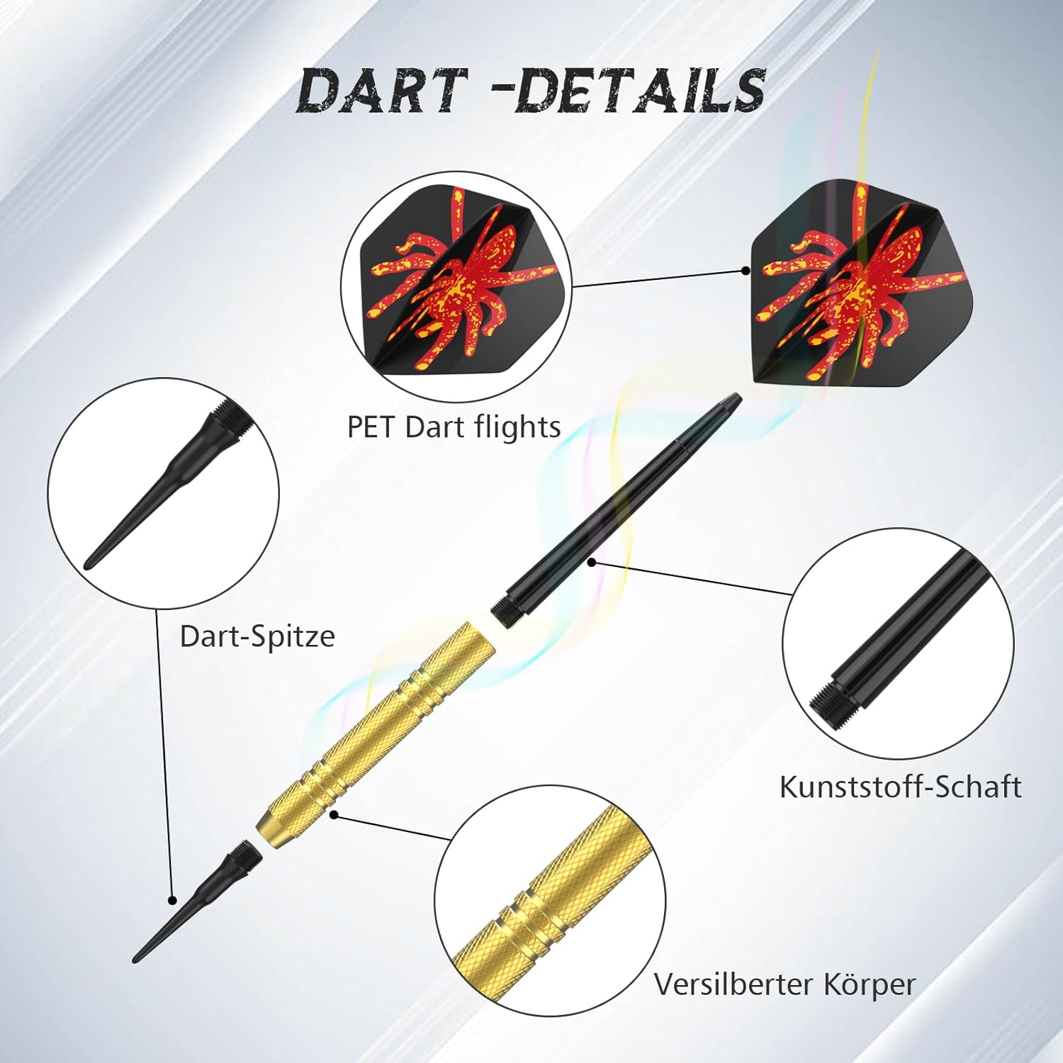 Materiale di alta qualità: la freccia con punta in plastica è realizzata in corpo rivestito in ferro di alta qualità per garantire stabilità e durata, per resistere all'usura quotidiana, adatte per un uso a lungo termine. Presa migliorata: la parte anteriore e posteriore delle freccette sono dotate di scanalature e strisce zigrinate per garantire una migliore presa e un migliore controllo, aiutando i giocatori a mantenere l'equilibrio delle freccette e migliorare la precisione di lancio. Numerosi accessori: il set di freccette contiene 12 freccette complete, 100 teste di ricambio e 24 ali (6 su 4 tipi per modello), in modo da poterle sostituire facilmente in caso di necessità per prolungare la durata delle freccette. Adatto per tutte le fasi: le freccette sicure sono adatte sia per principianti che per professionisti. Sono compatibili con tutti i comuni bersagli elettronici e sono adatti per feste di famiglia, feste di compleanno o feste di vacanza. DIVERTIMENTO PER TUTTI: prendi questa punta in plastica per freccette e goditi le freccette con amici e parenti, non solo per migliorare le tue abilità di lancio, ma anche per socializzare e creare ricordi.