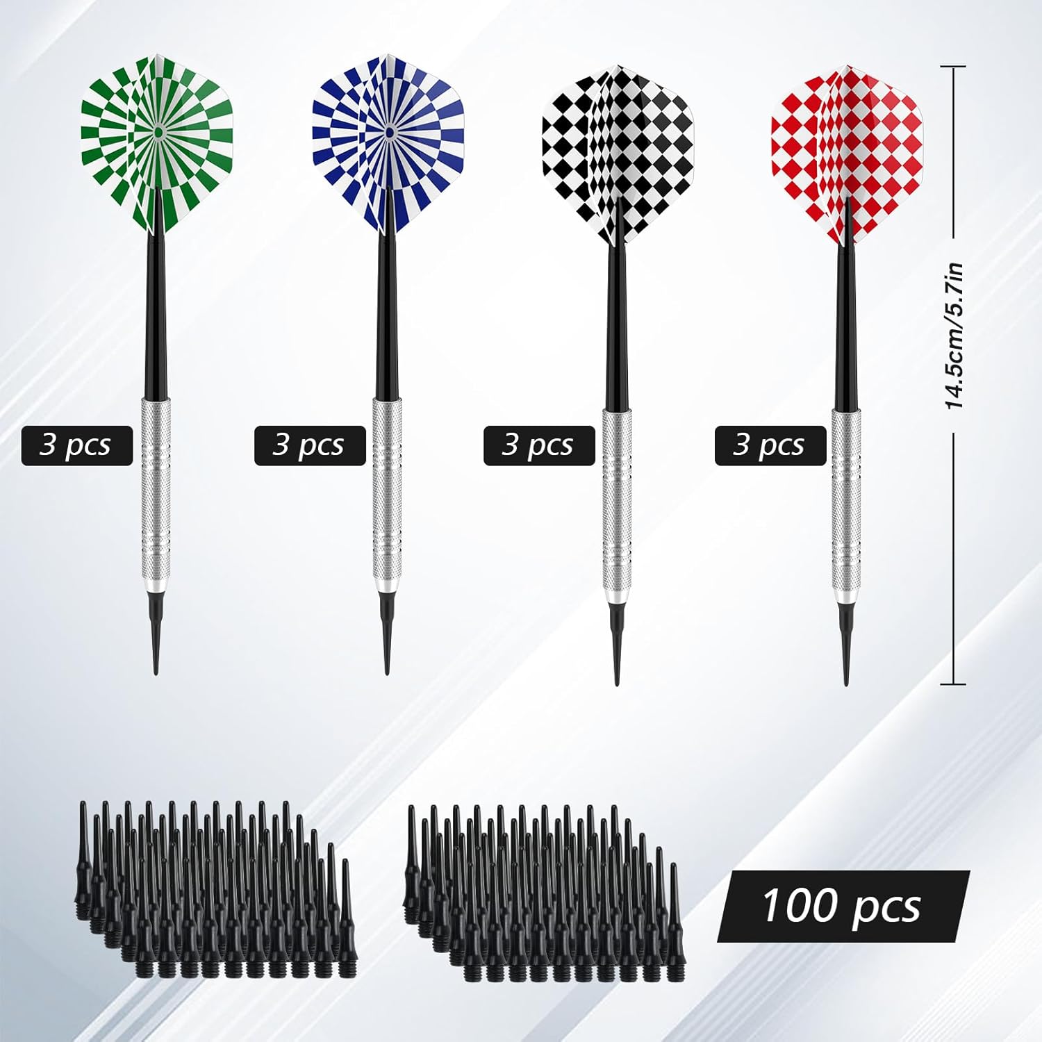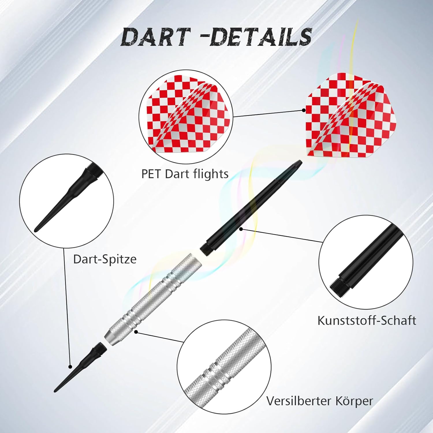 Materiale di alta qualità: la freccia con punta in plastica è realizzata in corpo rivestito in ferro di alta qualità per garantire stabilità e durata, per resistere all'usura quotidiana, adatte per un uso a lungo termine. Presa migliorata: la parte anteriore e posteriore delle freccette sono dotate di scanalature e strisce zigrinate per garantire una migliore presa e un migliore controllo, aiutando i giocatori a mantenere l'equilibrio delle freccette e migliorare la precisione di lancio. Numerosi accessori: il set di freccette contiene 12 freccette complete, 100 teste di ricambio e 24 ali (6 su 4 tipi per modello), in modo da poterle sostituire facilmente in caso di necessità per prolungare la durata delle freccette. Adatto per tutte le fasi: le freccette sicure sono adatte sia per principianti che per professionisti. Sono compatibili con tutti i comuni bersagli elettronici e sono adatti per feste di famiglia, feste di compleanno o feste di vacanza. DIVERTIMENTO PER TUTTI: prendi questa punta in plastica per freccette e goditi le freccette con amici e parenti, non solo per migliorare le tue abilità di lancio, ma anche per socializzare e creare ricordi.