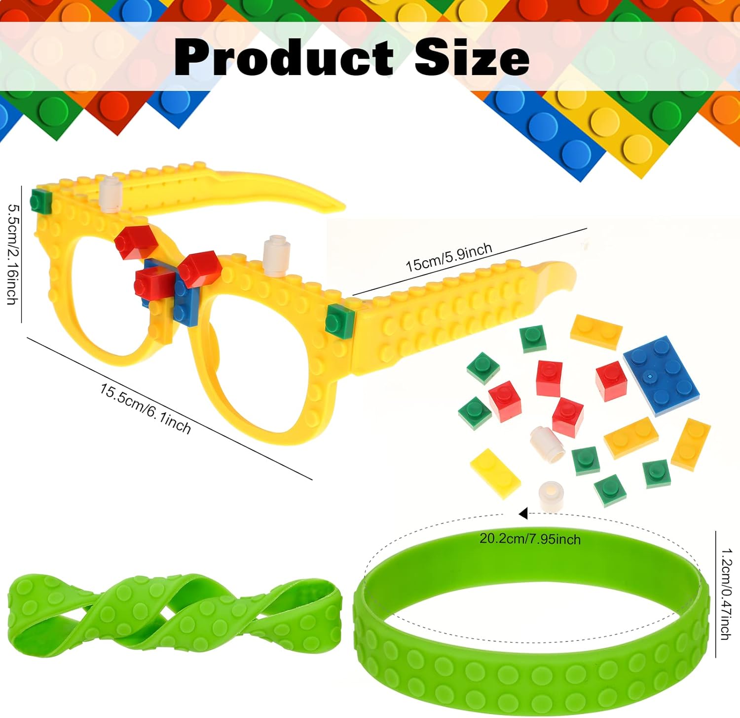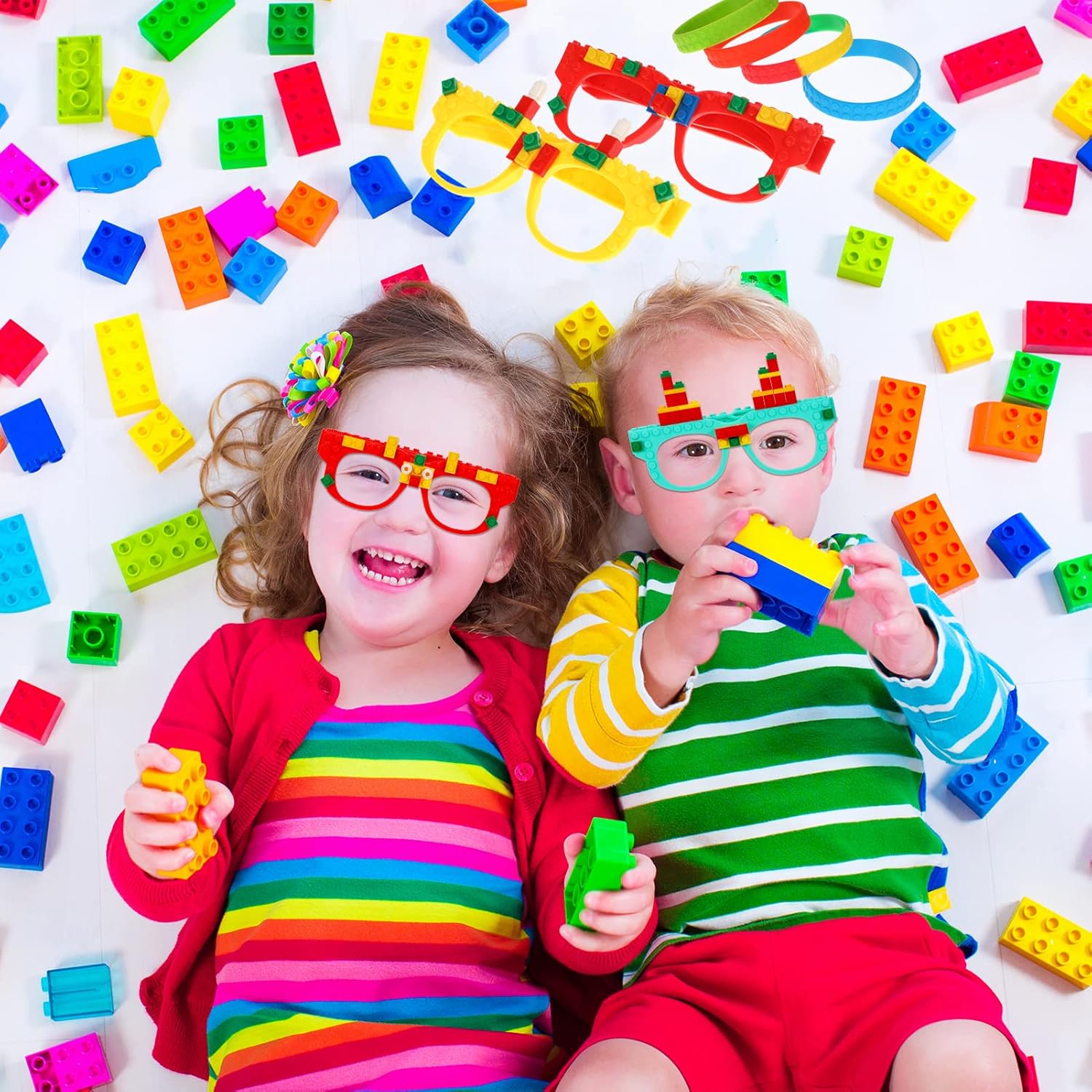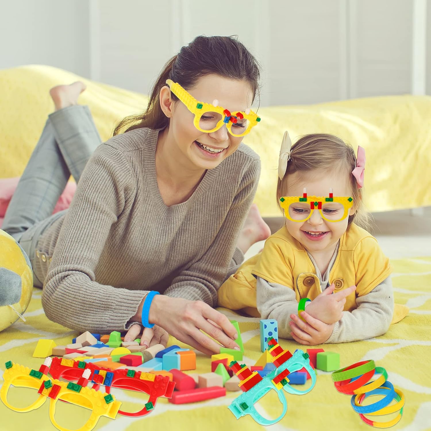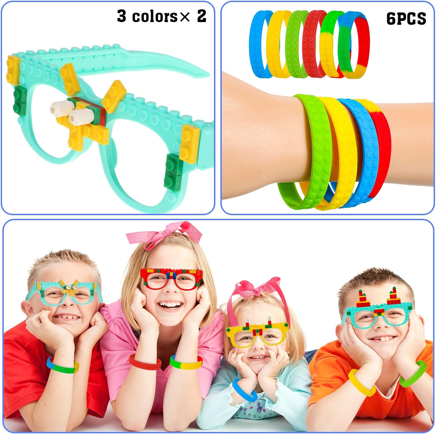 Set di 12 occhiali da costruzione e braccialetti da costruzione - Occhiali fai da te e braccialetto in silicone - Gioco creativo per compleanno, festa, carnevale dei bambini