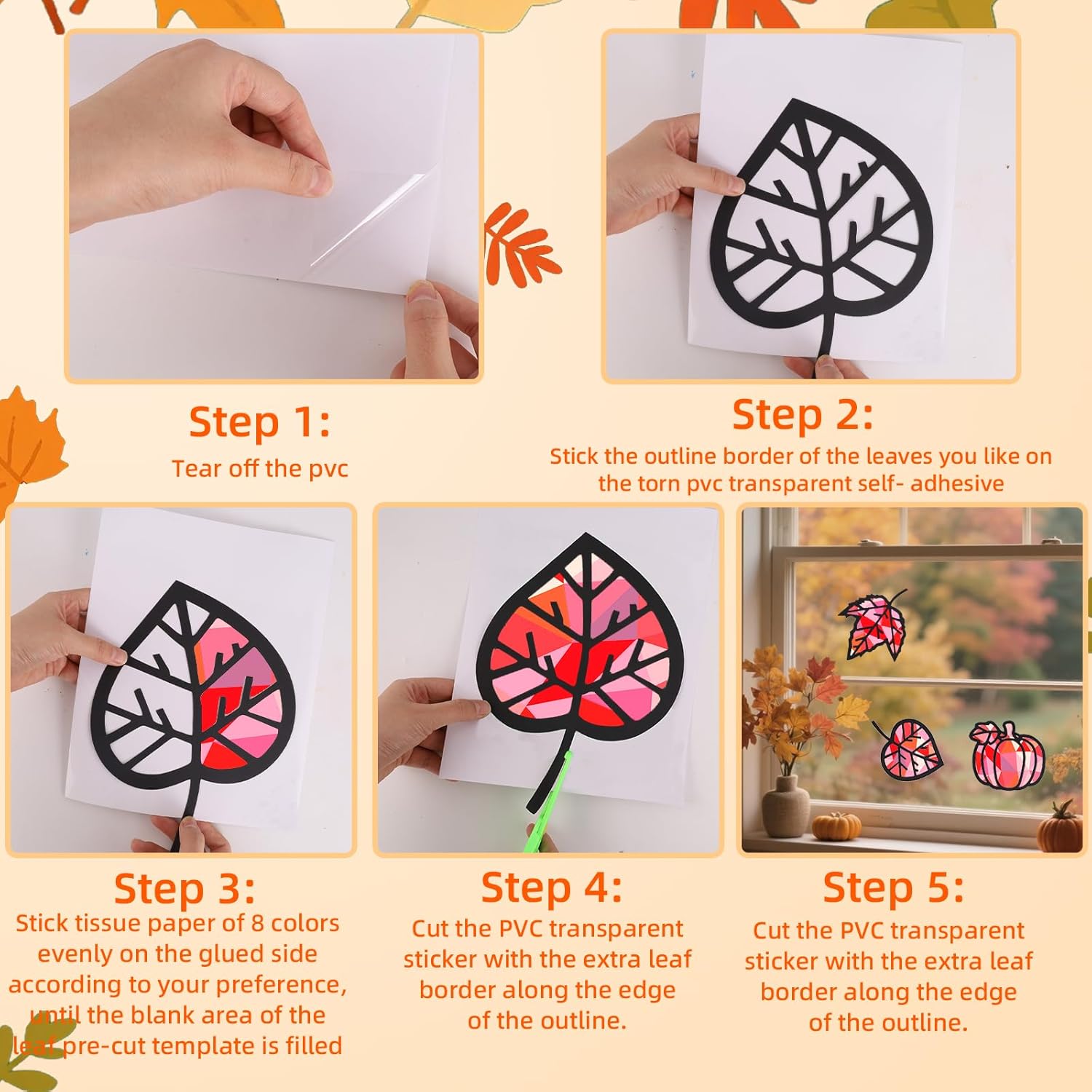 Facile da usare: preparare prima un pezzo di adesivo, staccare il lato trasparente e distribuirlo sul tavolo. Scegli un motivo che ti piace e incollalo sull'adesivo. Quindi tagliare la carta colorata di diversi colori in dimensioni adeguate e distribuire l'adesivo lungo il bordo per riempire tutti gli spazi vuoti,e infine ritagliare il modello completo.