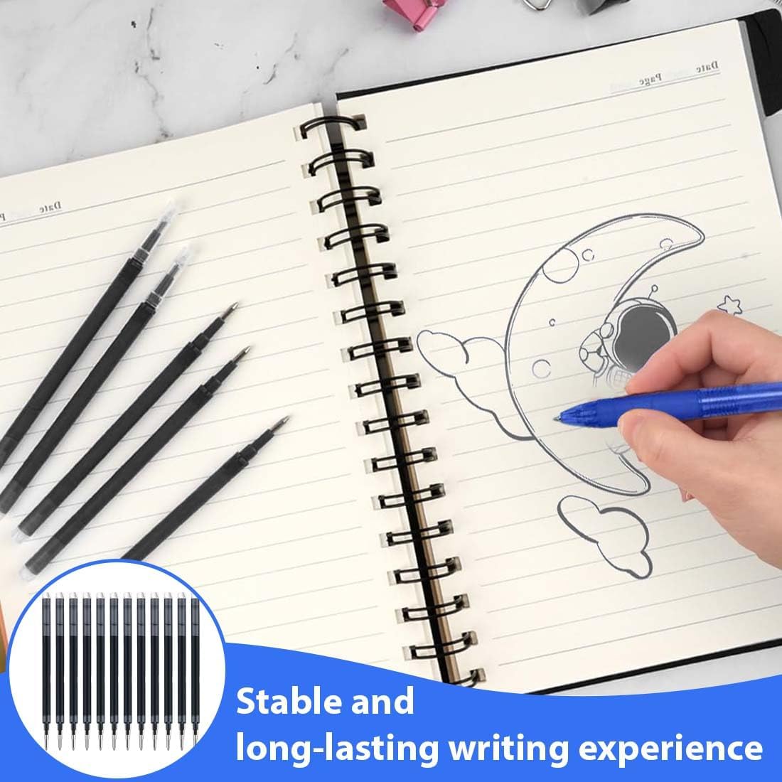 Quantità abbondante: Questo set ha un totale di 12 ricariche Compatible Pilot Frixion cancellabili nere. Il pennino è sottile solo 0,7 mm, garantendo così un'esperienza di scrittura fluida e ad asciugatura rapida. Offriamo un numero sufficiente di ricariche di ricambio per penne per soddisfare le tue esigenze, sia per un uso a lungo termine che come ricambio. Eccellente compatibilità: queste pedivelle a sfera sono compatibili con Pilot Ball e Cilker. Le ricariche di ricambio di Pilot Frixion sono altamente compatibili, quindi hai la flessibilità di sostituirle e migliorare continuamente i tuoi metodi di scrittura. Durevole: le nostre ricariche di ricambio blu, nero, rosso e verde sono ricche di inchiostro, quindi possono scrivere fino a 400 metri circa. Un'esperienza di scrittura stabile e a lungo termine attende la tua sfida. Ricariche cancellabili: ogni ricarica di ricambio del P-ilot F-rixion contiene inchiostro termico e richiede solo una gomma. Il testo scompare a causa dell'attrito, quindi la pagina è sempre pulita e ordinata. (Si prega di cancellare dopo che l'inchiostro è completamente asciutto) Il regalo ideale: fai il pieno con P-ilot FriXion Ball & C-ilker. Adatto a persone di tutte le età, bambini, studenti, insegnanti, amici, colleghi o familiari. Sono un regalo ideale per compleanni, festa dei bambini, Natale o eventi di ritorno a scuola. Sostituisci le ricariche con queste penne uniche e pratiche per aggiungere un po' di divertimento alla tua vita o sorprendere i tuoi cari.