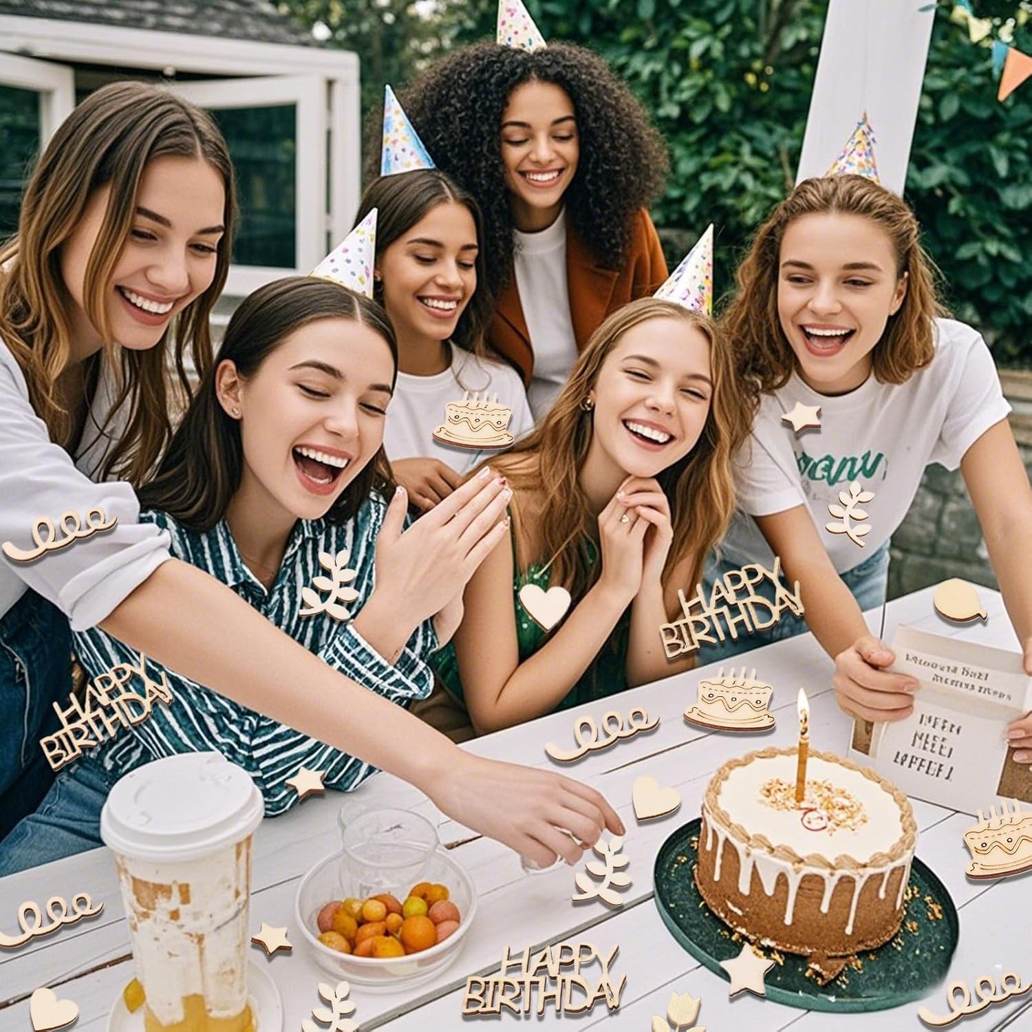 Decorazione di compleanno: se stai pianificando una festa di buon compleanno, i coriandoli di compleanno sono la decorazione ideale per festeggiare il tuo compleanno e mettere in risalto la tua festa di compleanno, la decorazione della tavola di compleanno rende la tua occasione unica, sorprendente e impressionante per gli altri! Ritagli di carta di buon compleanno in legno: 120 decorazioni per la tavola di compleanno in legno sono disponibili in 6 forme diverse, tra cui lettere di buon compleanno, toppers per torta di compleanno, foglie, fiori, cuori e pentagrammi, perfetti per decorazioni di compleanno, anniversari di matrimonio, anniversari, decorazioni per la casa, decorazioni per torte di compleanno, decorazioni per album e altro ancora per essere più divertenti! Decorazione da tavolo in legno: i nostri coriandoli di compleanno (da circa 1,9 cm a 5 cm), le decorazioni di compleanno possono essere sparse sul pavimento, sul tavolo della torta o sul tavolo da pranzo come decorazione per rendere calda la tua festa e possono essere conservate e riutilizzate al termine della festa. Materiale ecologico: i nostri coriandoli decorativi di buon compleanno sono realizzati in legno naturale di alta qualità, che mantiene la struttura originale del legno, ecologico e bello, spesso e robusto, durevole. Ampia gamma di applicazioni: i coriandoli di compleanno possono essere utilizzati come riempitivo per bottiglie trasparenti, scatole regalo, sacchetti regalo, e può essere utilizzato anche per decorazioni di compleanno per uomini e donne - Inviti fai da te per donne, inviti, cartoline, cornici per foto e vasi e altre decorazioni per la casa, adatti per decorazioni per la tavola di compleanno di donne, inviti per feste, supporti per torte, portacandele, biglietti d'invito, sacchetti regalo, rivestimenti per pavimenti, tovaglie, decorazioni per incartare cupcake e altro ancora