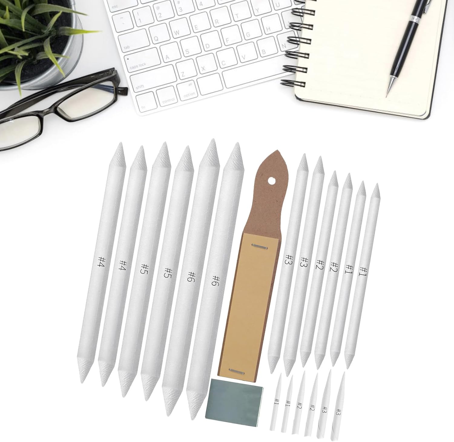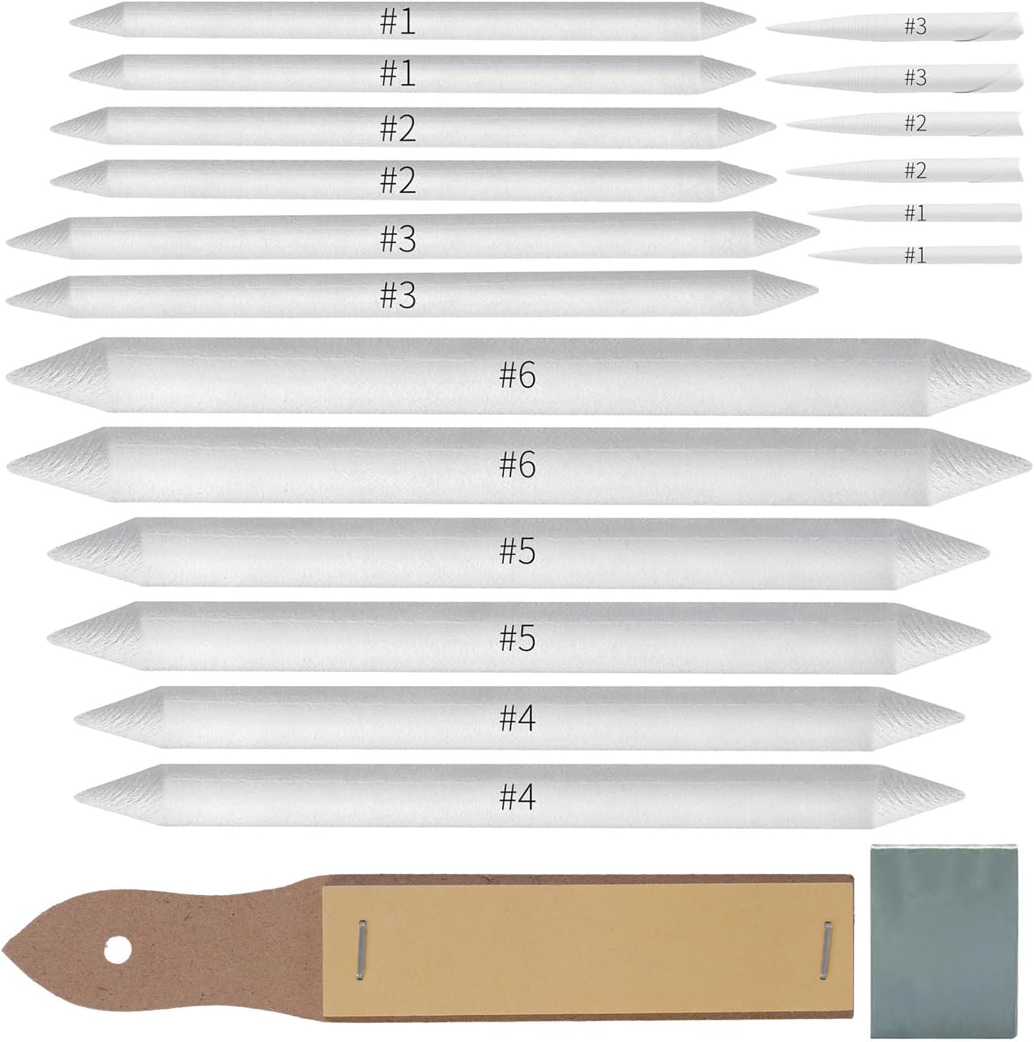 Realizzato con carta morbida compressa, densa e stretta, non facile da rompere e deformare. Crea facilmente un effetto gomma senza danneggiare il disegno. La confezione 1 include: 6 pezzi di ceppi per miscelare a doppia estremità. 6 tortillioni. La confezione 2 include: 12 pezzi di ceppi di miscelazione, 6 tortillioni con gomma impastata carta vetrata Set di strumenti per schizzi artistici, per realizzare disegni artistici. bambino, studenti, artisti, pittori, hobbisti, Questi ceppi di miscelazione e tortillions appositamente progettati per mescolare colore, sbavature, linee ammorbidenti, ottenere un effetto nebbioso, creare ombre e aree scure, aggiungendo un effetto fioca e luminoso e levigante, carbone, gesso e disegno a matita. Tortillions di diverse dimensioni: #2; #3. 6 misure di miscelazione: #01; #02; #03; #04; #05; #06. Soddisfa facilmente varie esigenze di schizzi creativi e disegni artistici.