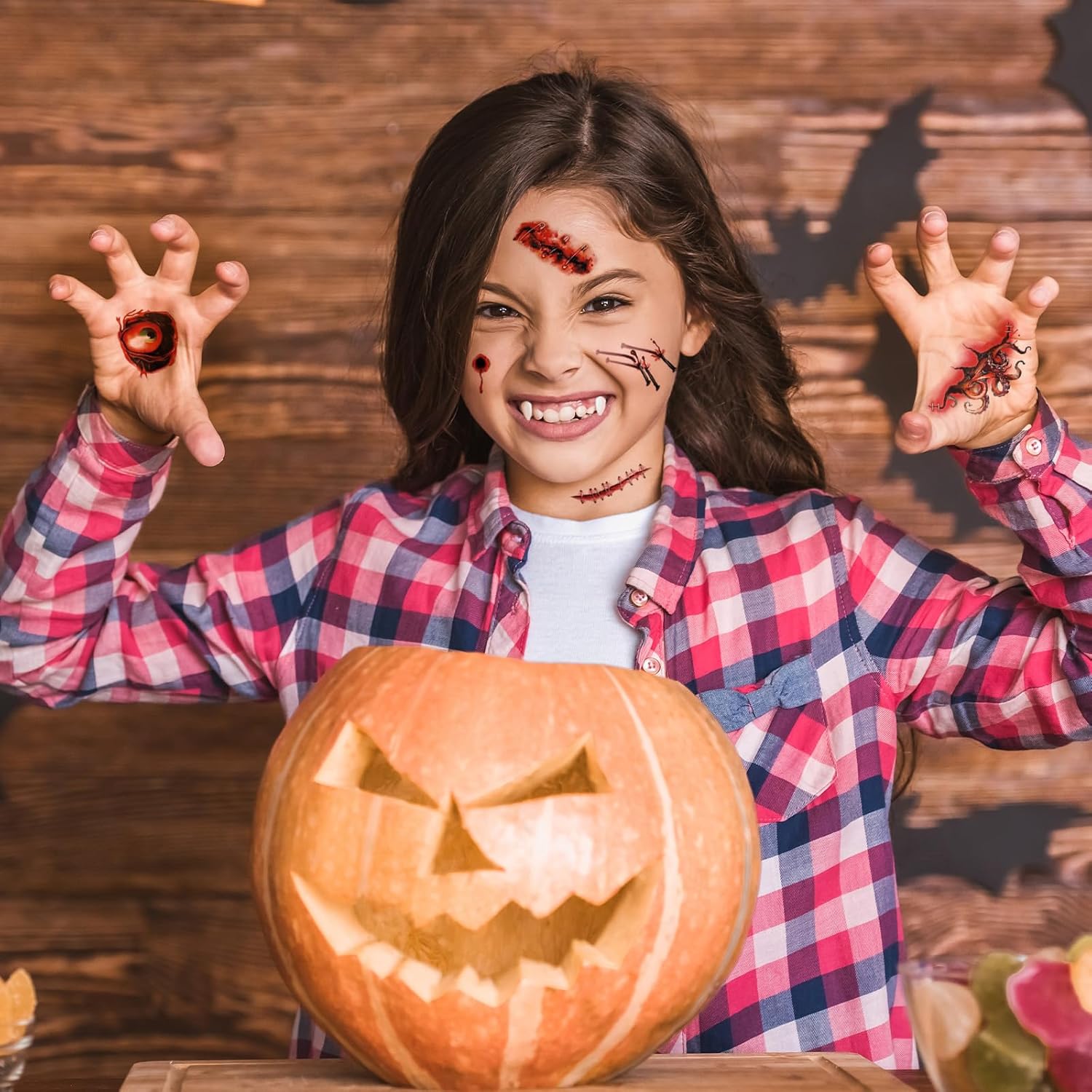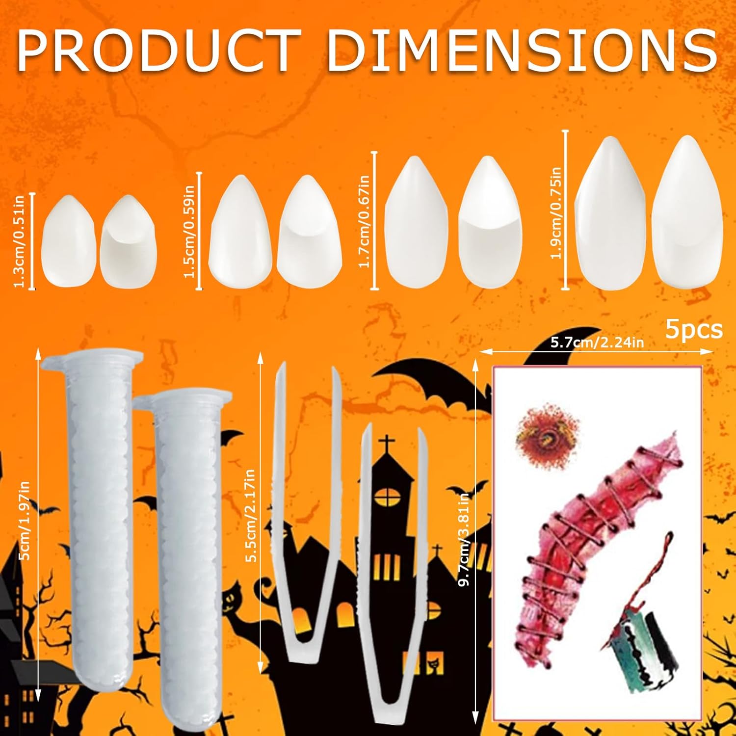 Qualità: realizzate con materiali ecologici e sicuri, 4 paia di protesi scelgono resina atossica, la trama è realistica, forte e resistente all'usura, l'uso ripetuto non è facile da deformare; 2 tubetti di colla dentale sono resistenti e facili da pulire, nessuna irritazione alla bocca; 5 adesivi per tatuaggi con inchiostro pro: pelle, impermeabili e resistenti al sudore e facili da strappare, anallergici; Le 2 pinzette sono progettate per essere antiscivolo, igieniche e resistenti. Design: 13 pezzi con una ricca combinazione, 4 paia di protesi che coprono diverse dimensioni (adatti per denti di adulti e bambini), simulazione di modellazione (zanne, zanne, ecc.) per soddisfare le varie esigenze di immagine del vampiro; 2 tubetti di colla dentale con pinzetta per l'incollaggio preciso della protesi; 5 adesivi per tatuaggi con macchie di sangue, graffi e altri elementi spaventosi, lo stile casuale aggiunge un senso di sorpresa. Combinazione: protesi + colla dentale + pinzette, può essere combinato con cappotto nero, abito lungo gotico per un classico look da vampiro, tatuaggi a strati (ad esempio morso al collo, graffio al braccio) per migliorare l'atmosfera horror; Gli adulti possono indossare costumi di pelle, accessori di metallo per camminare nel vento buio e fresco, i bambini con costumi di zucca, corna demoniache per presentare i vampiri in erba. Ambito di applicazione: copre tutte le età, gli adulti sono adatti per feste di Halloween, eventi cosplay, matrimoni a tema; Attività scolastiche adatte ai bambini, crociere dolci, riunioni di famiglia. Le protesi sono disponibili in diverse misure, comode e ferme per i bambini di bassa statura e piene d'aria per gli adulti di alta statura; Il tatuaggio può essere applicato su viso, collo, braccia, adatto a diverse esigenze di visualizzazione. Regalo: il set da 13 pezzi è ricco di contenuti e design unico, un'ottima scelta per Halloween, regalo di carnevale. Gli amici possono condividere il divertimento di travestire i fantasmi, i bambini possono stimolare il desiderio creativo di travestirsi, i ragazzi possono aiutare con la modellazione professionale. Il set comprende dentiere, colla dentale, pinzette, adesivi per tatuaggi, strumento completo per il trucco da vampiro nella scatola, conveniente e ritualistico.