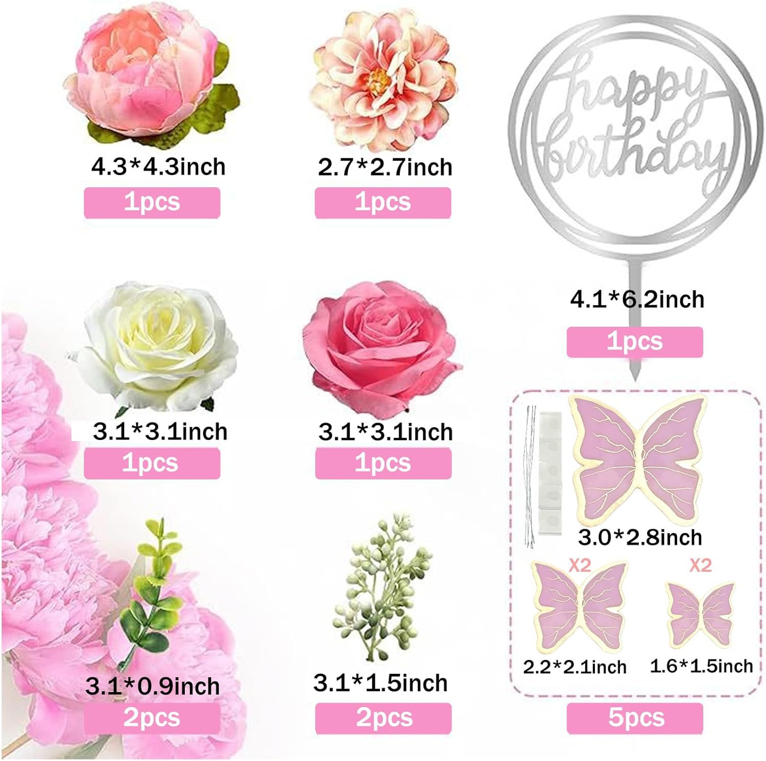 【Eleganti decorazioni per torte con fiori】 - Decora le tue torte con stile con questo set di 14 bellissime decorazioni per torte con fiori rosa. Perfetti per compleanni e matrimoni, questi elementi riutilizzabili aggiungono un tocco bohémien e romantico alle tue creazioni. Ideale per decorazioni di torte artistiche e instagrammabili! 【Materiale durevole e sicuro】 - Realizzate in materiale non commestibile di alta qualità, queste decorazioni per torte nuziali sono durevoli e non si deteriorano facilmente. Il loro design realistico e la consistenza morbida li rendono perfetti per essere riutilizzati in diverse occasioni festive. 【Versatile per tutte le celebrazioni】 - Che si tratti di un compleanno, un matrimonio o un baby shower, queste decorazioni per torte si adattano a qualsiasi tema. Il loro motivo floreale dona un'atmosfera elegante e femminile, perfetta per eventi speciali. 【Facile da usare e riutilizzabile】 - Non è richiesta alcuna abilità di pasticceria! Inserisci semplicemente queste decorazioni per torte di compleanno nelle tue torte, cupcake o dessert per un risultato immediatamente bellissimo. Il loro design riutilizzabile ti consente di salvarli per occasioni future. 【Ideale per regali e decorazioni per la casa】 - Oltre ad abbellire le tue torte, questi fiori decorativi possono essere utilizzati come elementi decorativi per la casa, matrimoni o feste. Un regalo perfetto per gli amanti della decorazione di torte creative e bohémien.