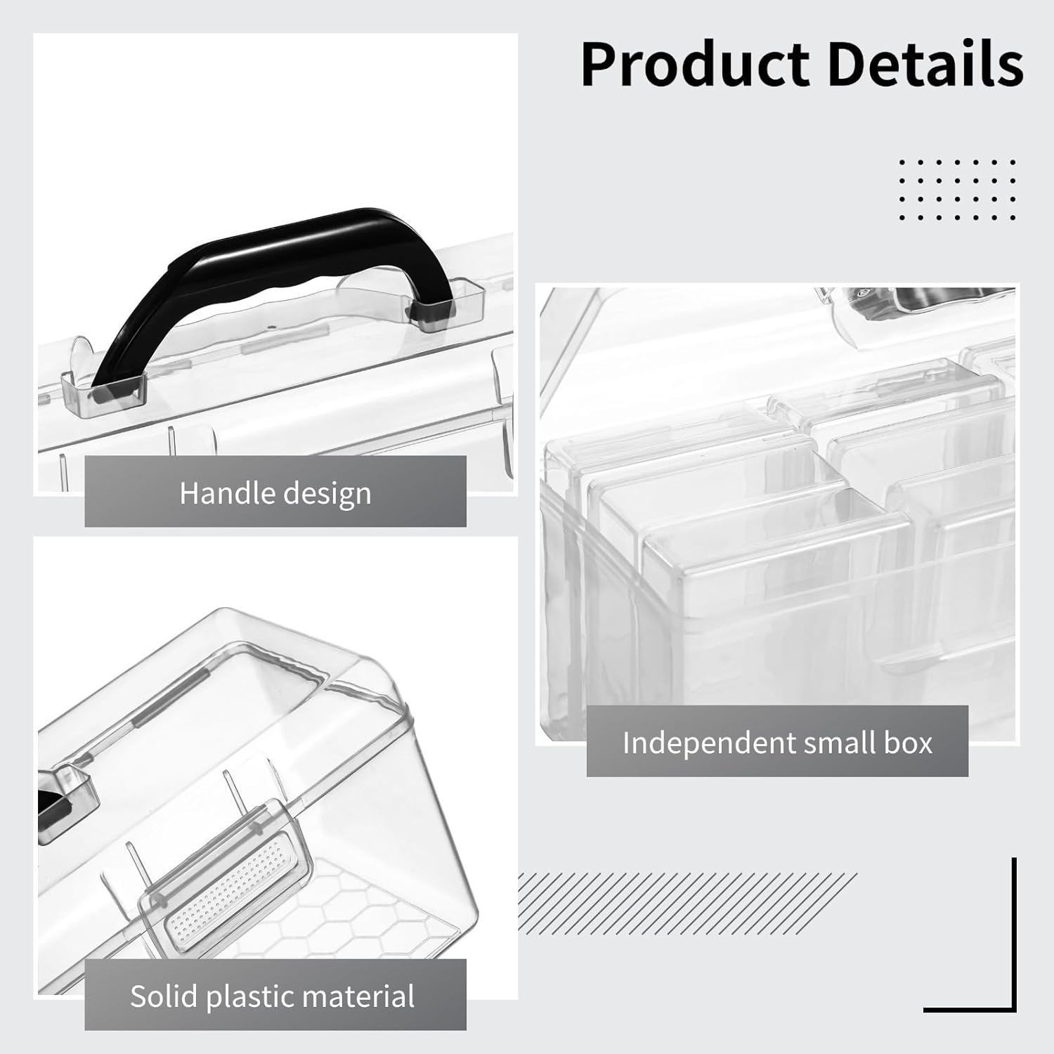 Organizzazione efficiente: include una grande custodia con 13 scatole più piccole, ognuna può contenere fino a 70 carte; per organizzare diversi tipi di carte collezionabili Forte e sicuro: costruito in plastica spessa che resiste agli urti; dispone di un doppio moschettone per una maggiore protezione contro acqua, polvere e graffi Trasparente e accessibile: le scatole trasparenti rendono facile trovare e accedere alle carte; comoda maniglia per la portabilità, rendendolo ideale per uso esterno Ideale per più carte: scatola grande (35 x 10,7 x 12 cm) e scatole piccole (9,9 x 7,1 x 3 cm) si adattano a varie dimensioni di carte, tra cui carte sportive e da gioco, oltre ad altri piccoli oggetti Il sogno del collezionista: progettato per gli appassionati, offre un metodo sicuro e organizzato per riporre e esporre le carte